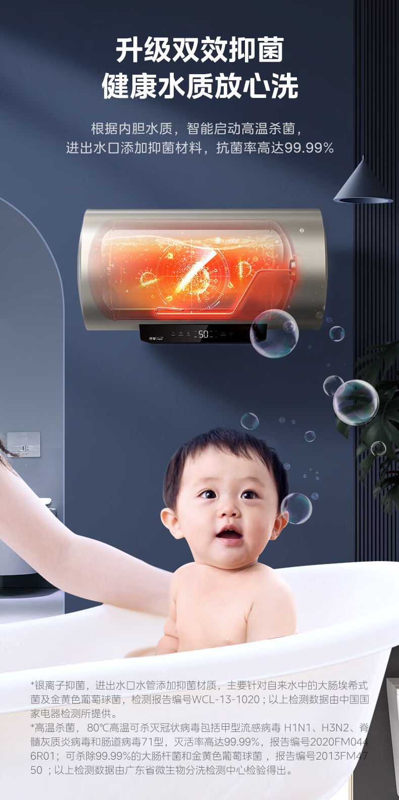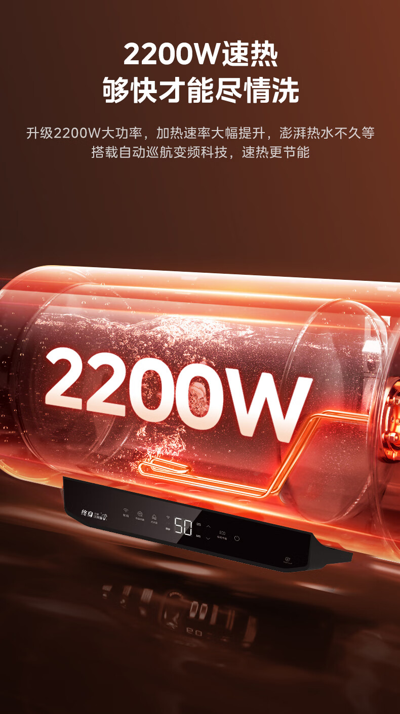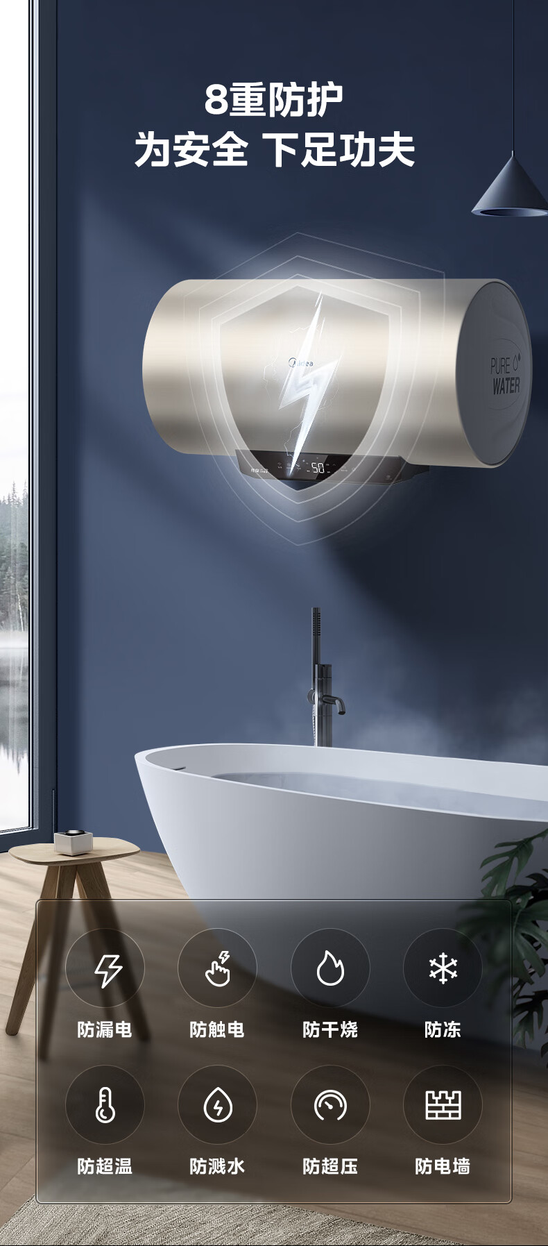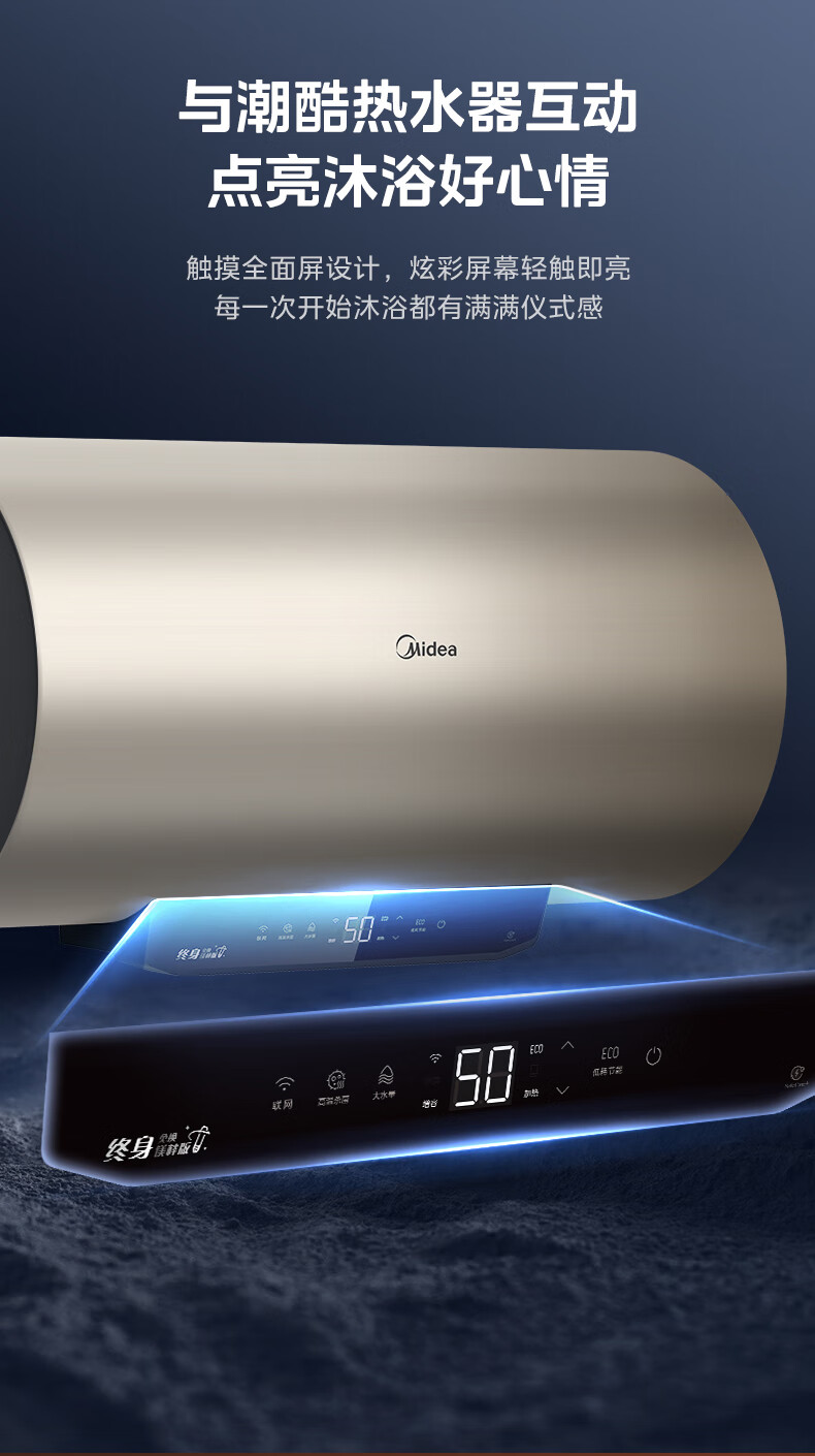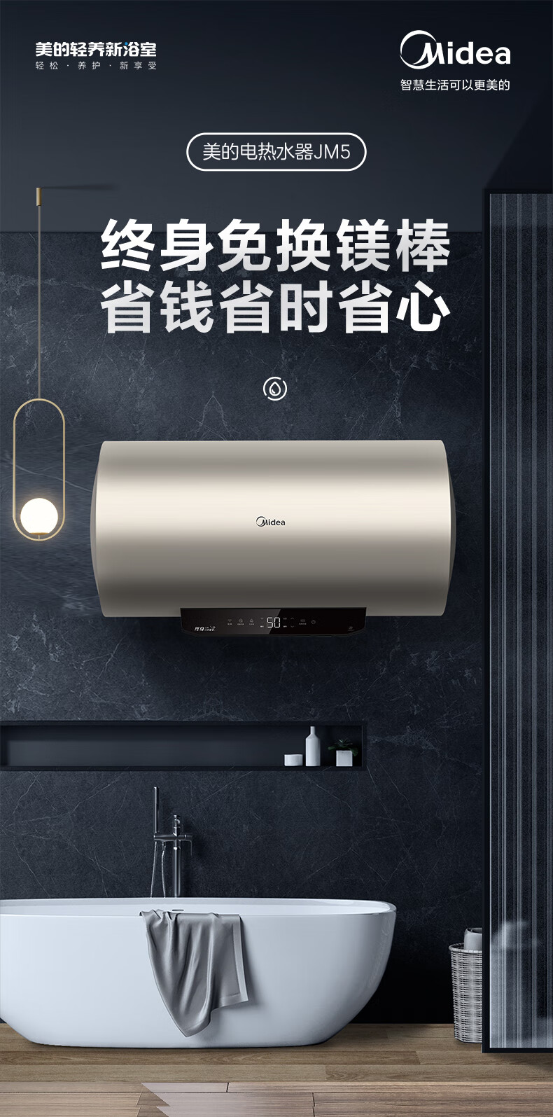 美的(Midea)电热水器 60升2200W速热 终生免换镁棒 5.5倍增容 大容量家用热水器 WiFi智控F6022-JM5(HE)*