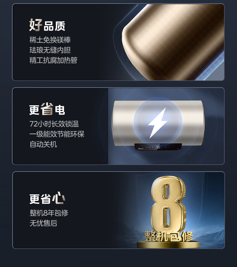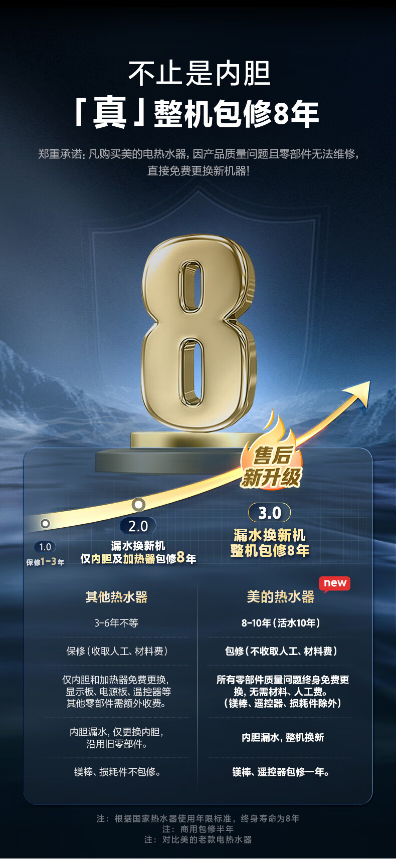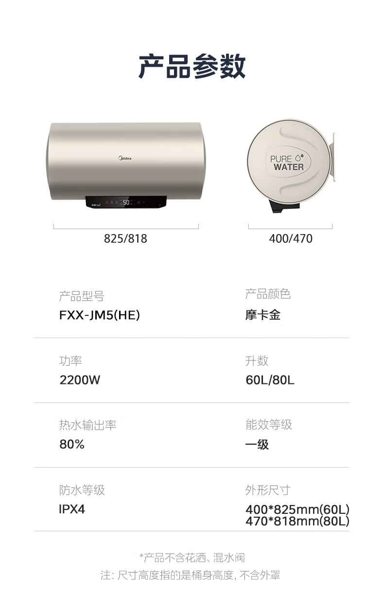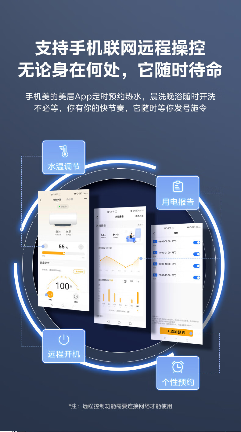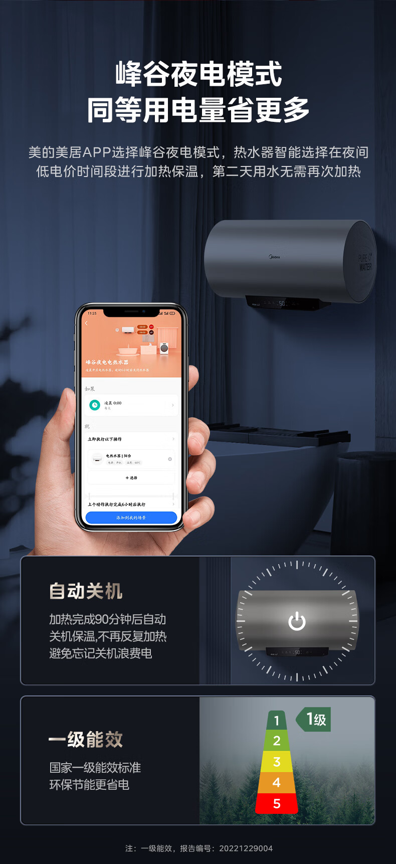 美的(Midea)电热水器 60升2200W速热 终生免换镁棒 5.5倍增容 大容量家用热水器 WiFi智控F6022-JM5(HE)*