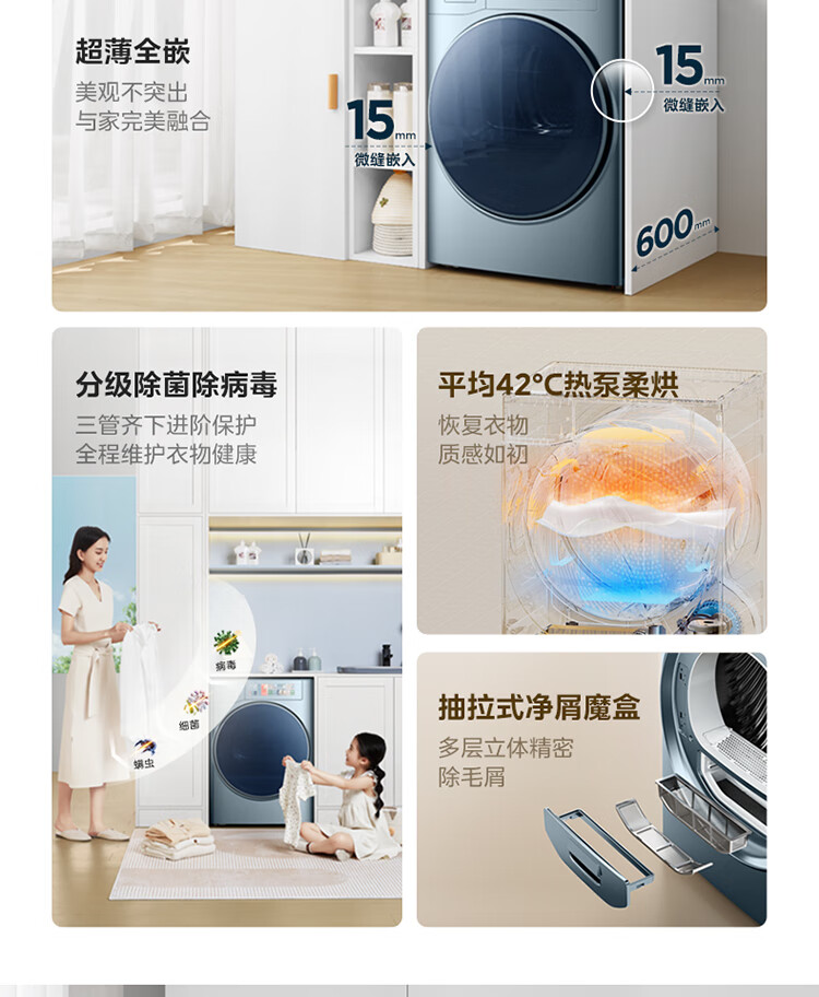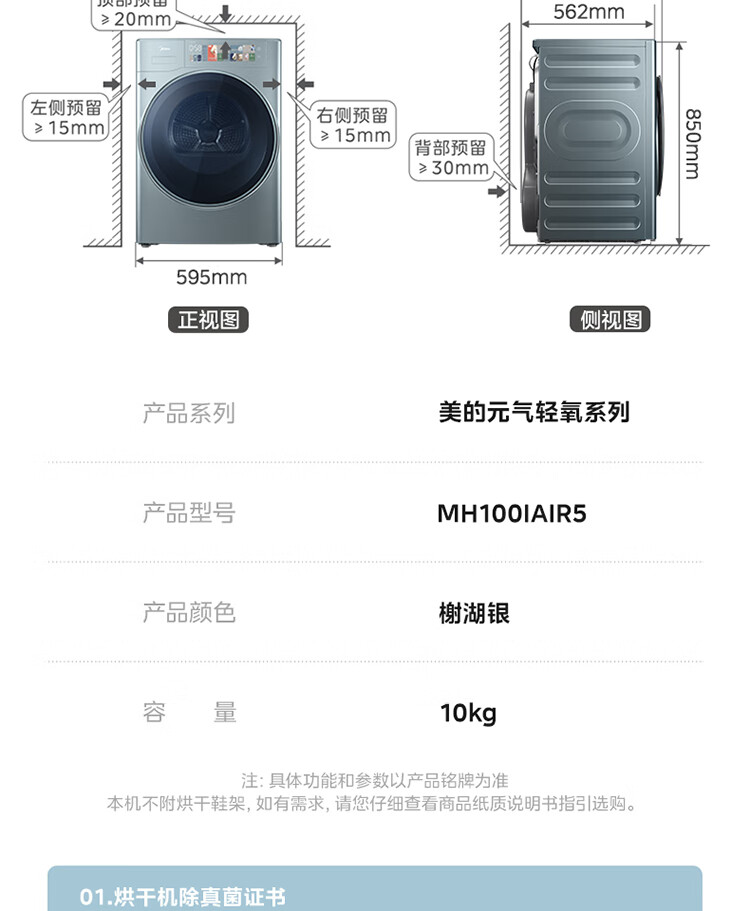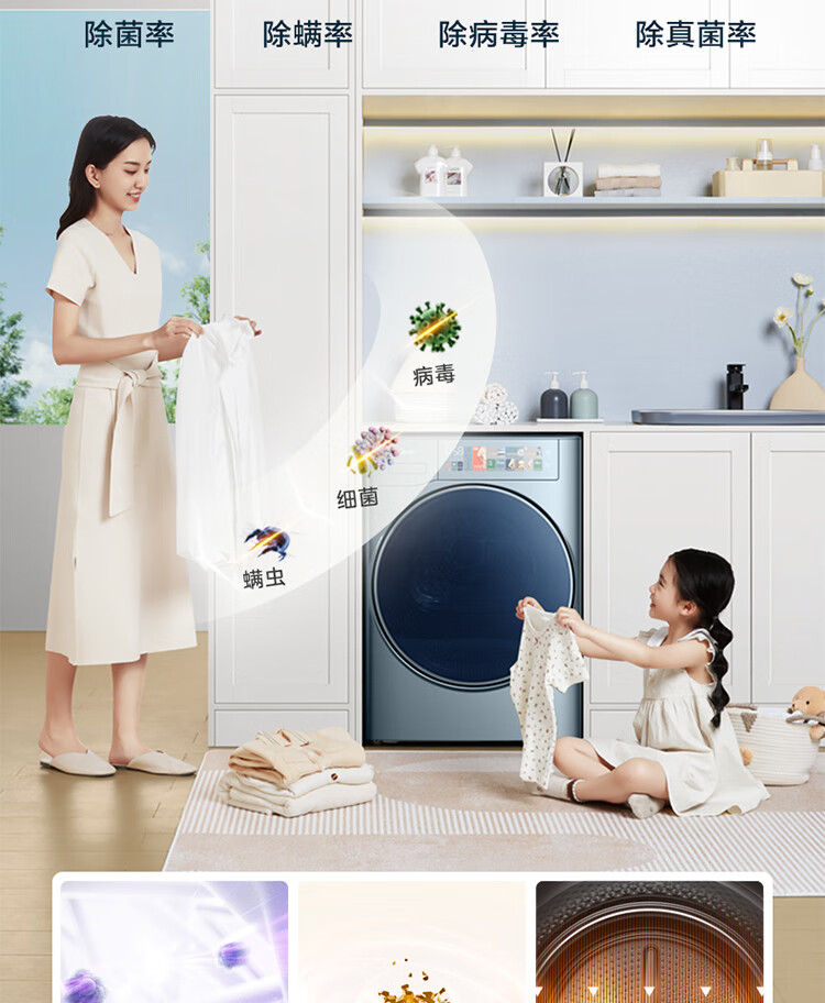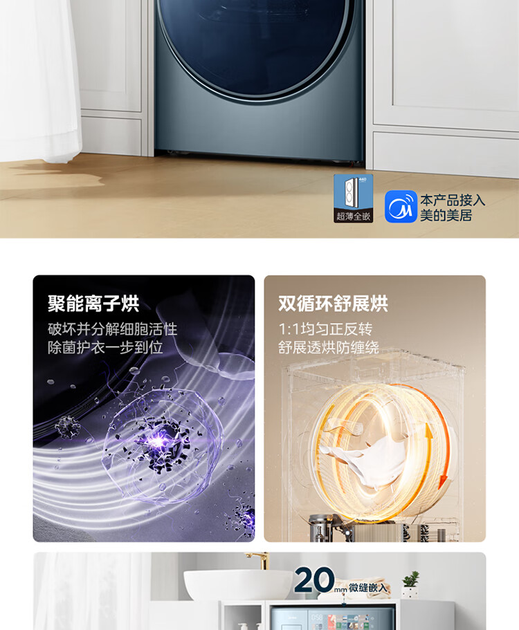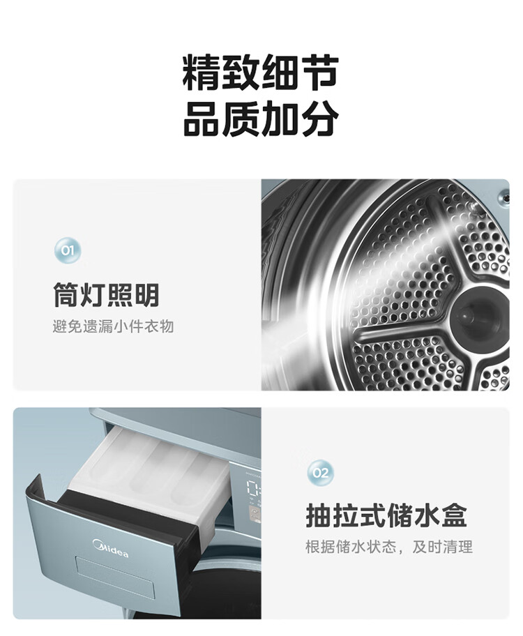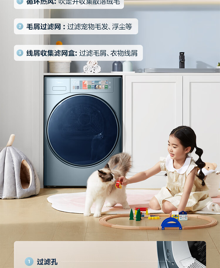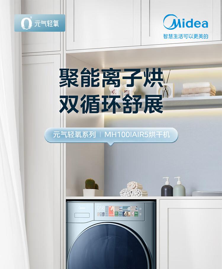 美的(Midea)烘干机 家用热泵式干衣机 10公斤 紫外线除菌 除螨除潮 祛除宠物毛发 MH100IAIR5