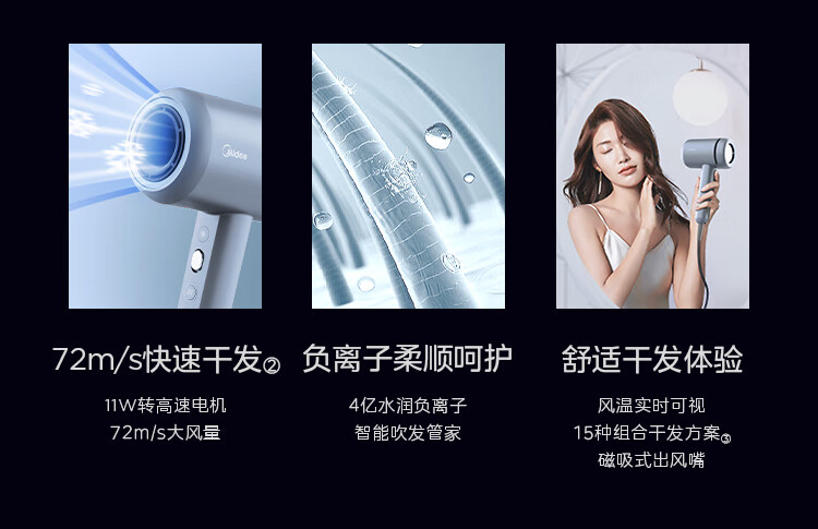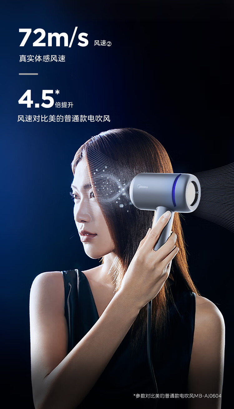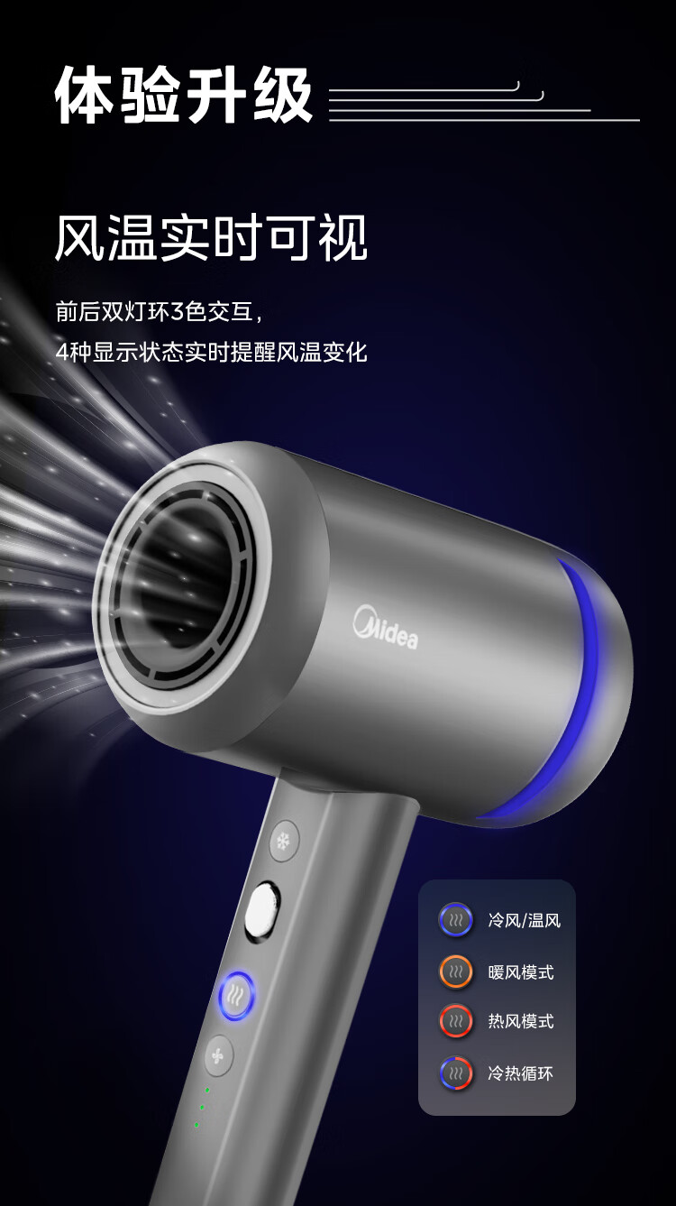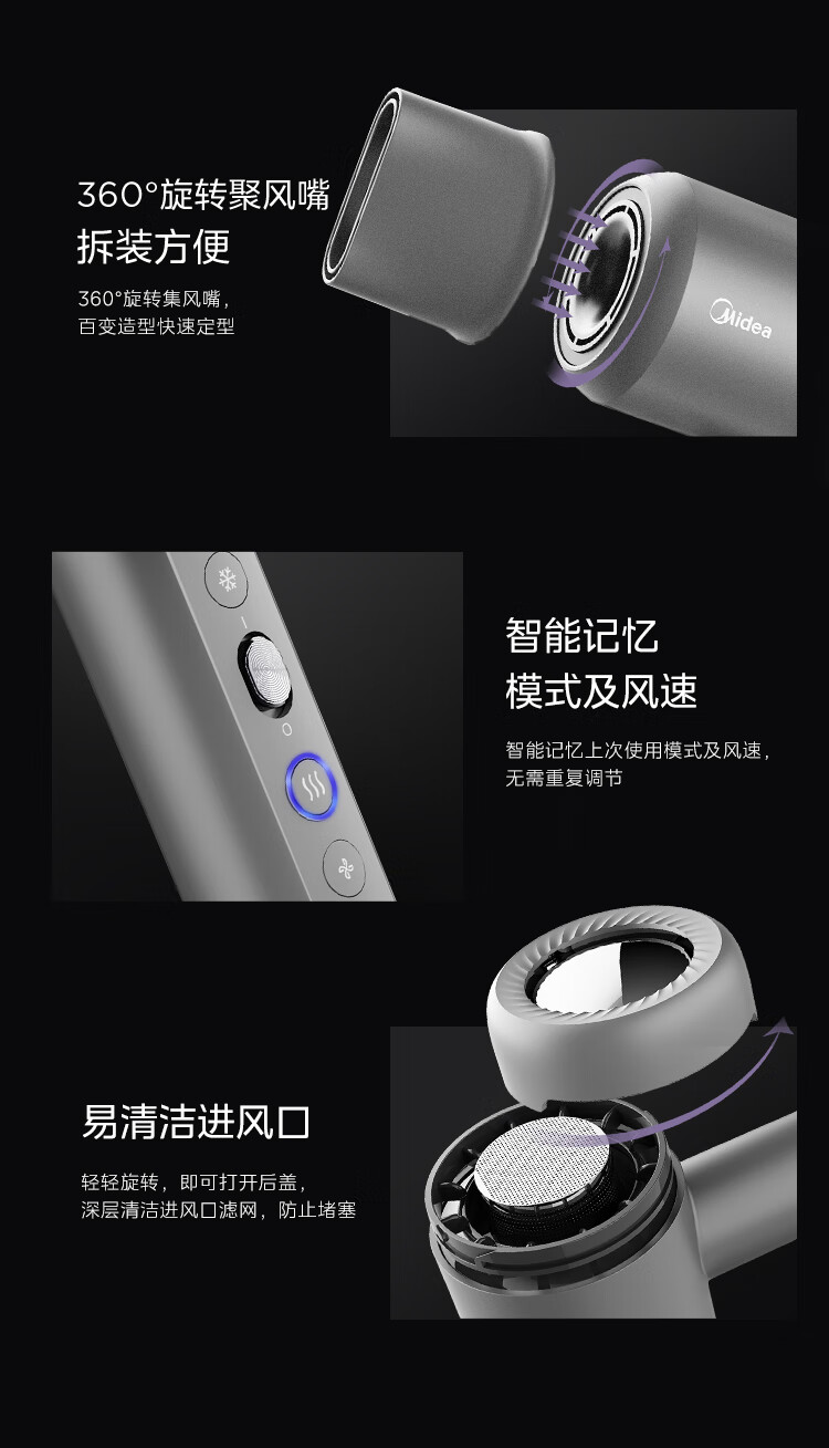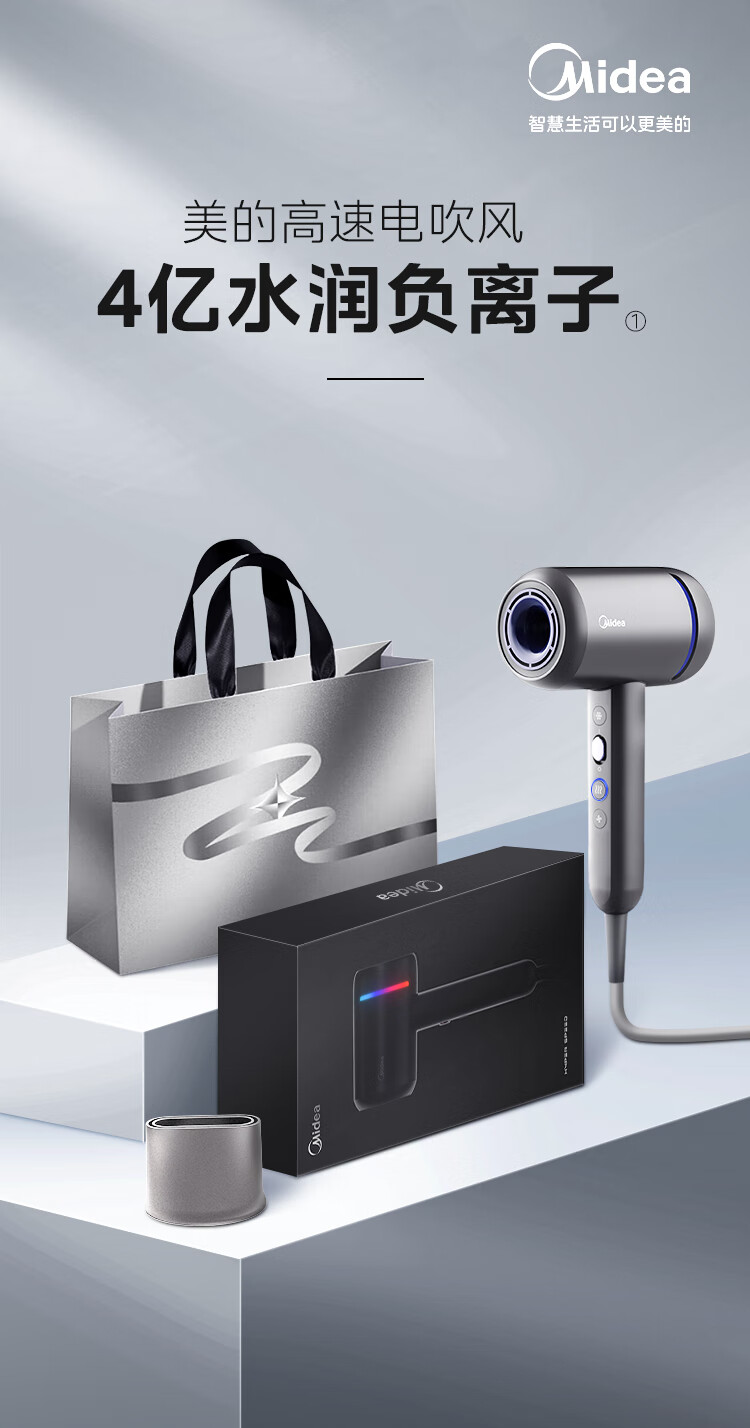 美的(Midea)高速马达吹风机家用吹风筒大功率/高浓度负离子护发/大风力速干电吹风七夕情人节礼物FG1-钛金灰