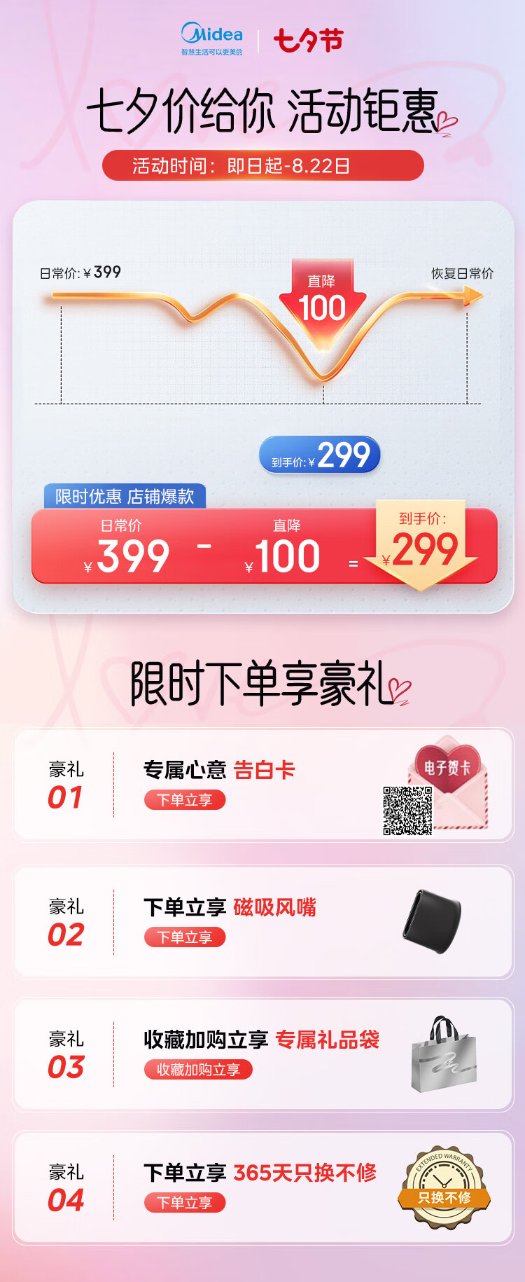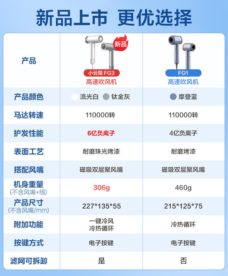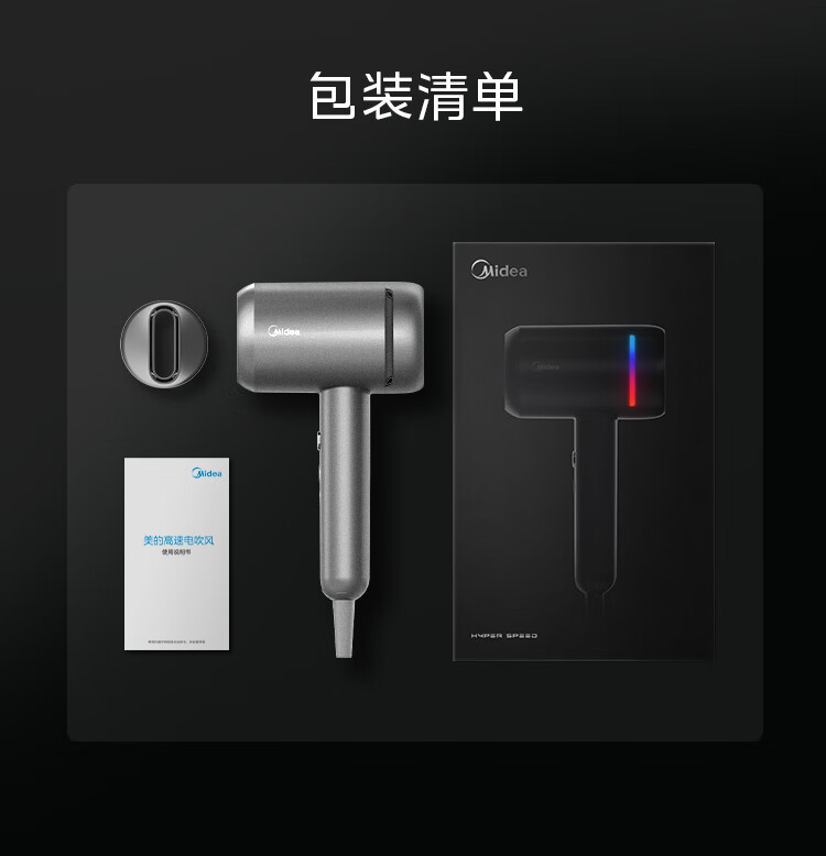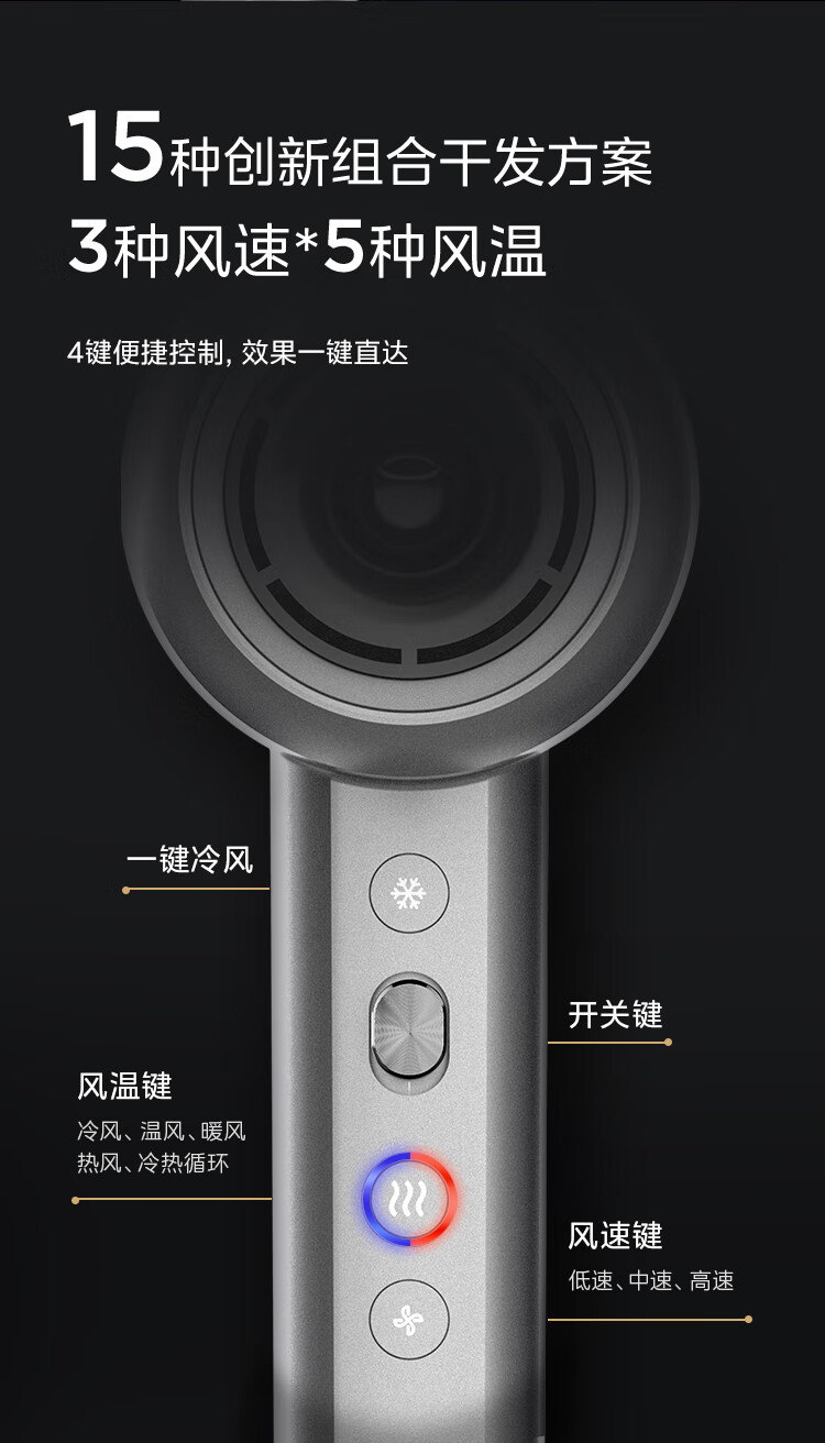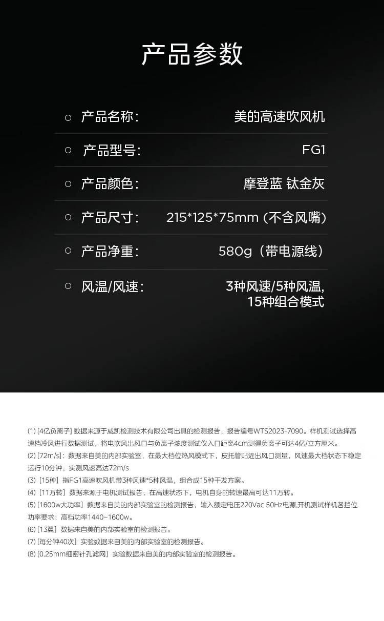 美的(Midea)高速马达吹风机家用吹风筒大功率/高浓度负离子护发/大风力速干电吹风七夕情人节礼物FG1-钛金灰