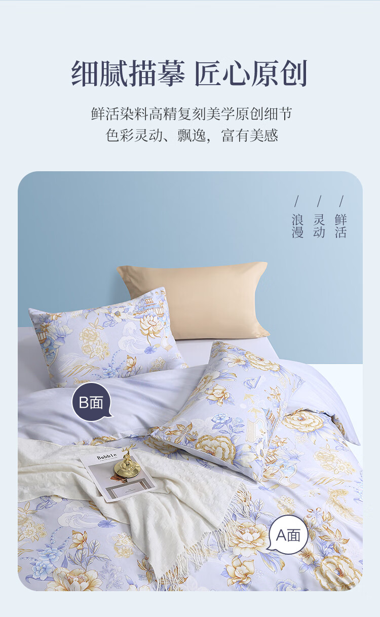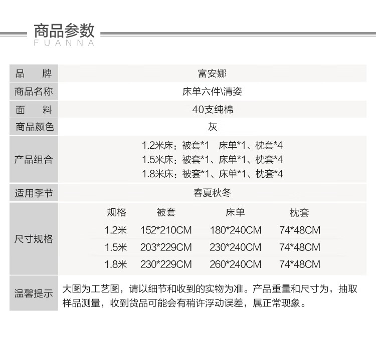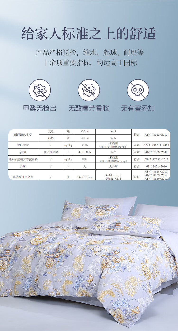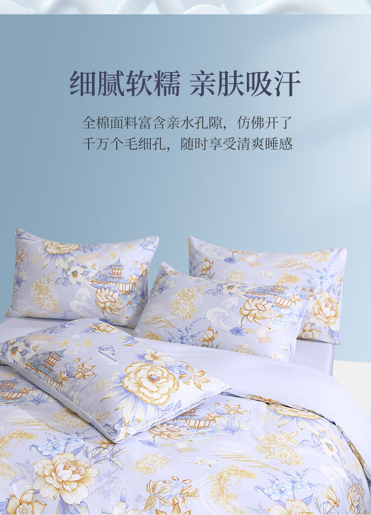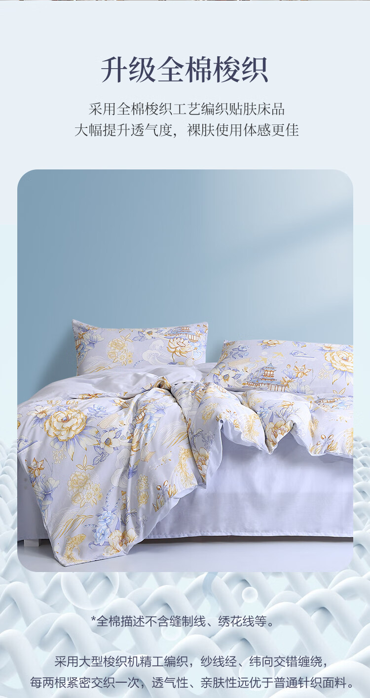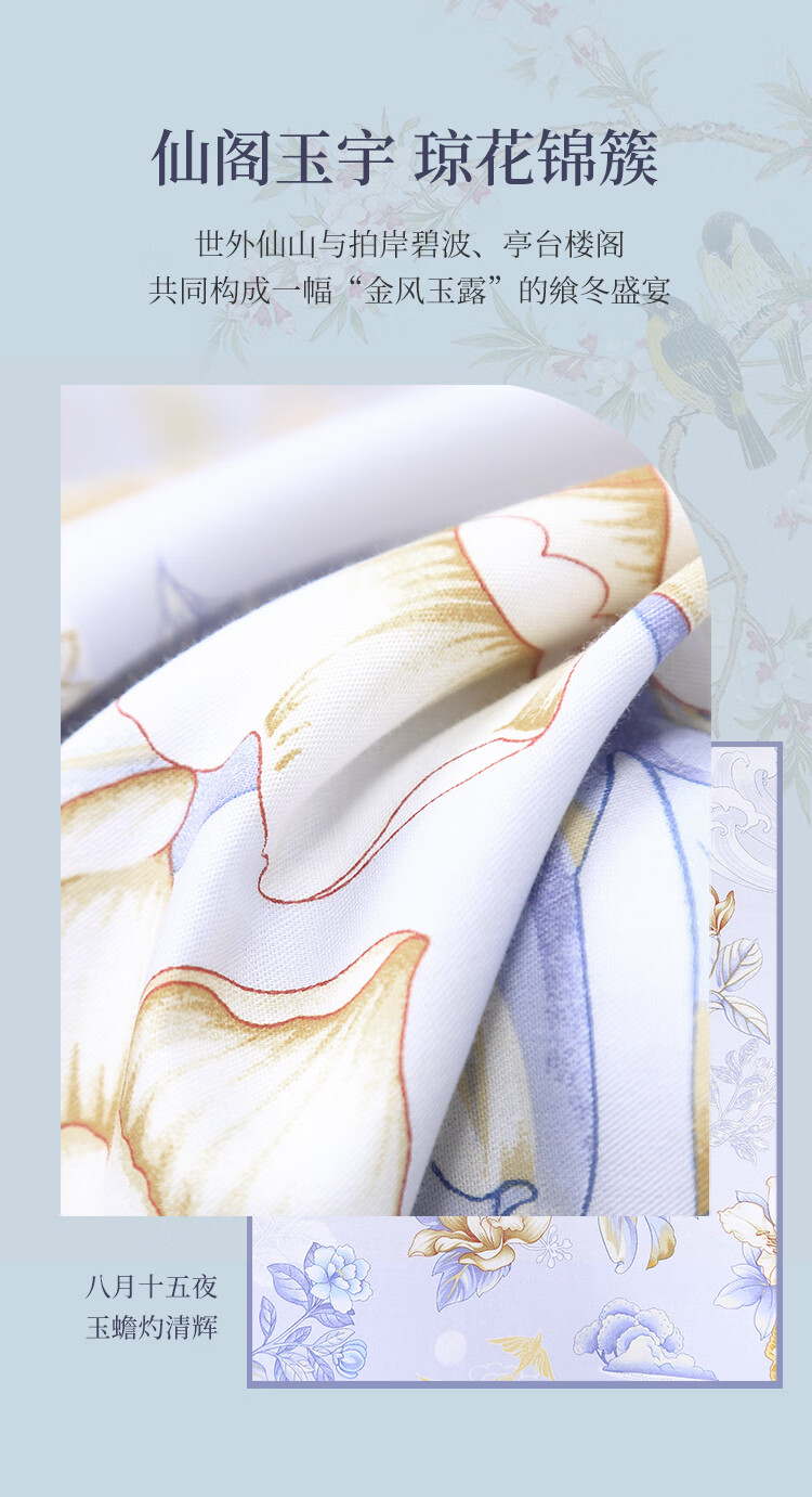 富安娜家纺床上六件套纯棉 100%全棉印花床单被套 单人学生宿舍套件 清姿·冬至 0.9米1.2米床(152*210cm)