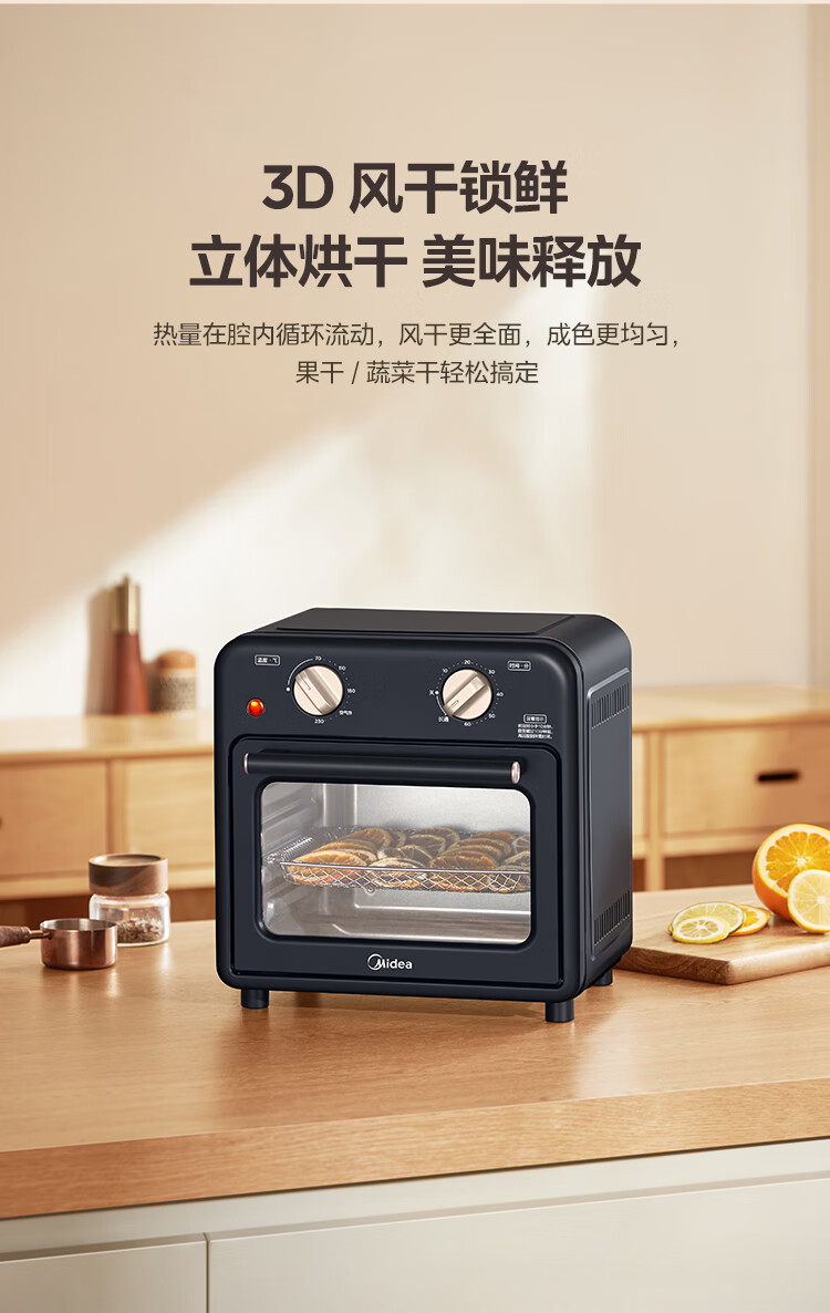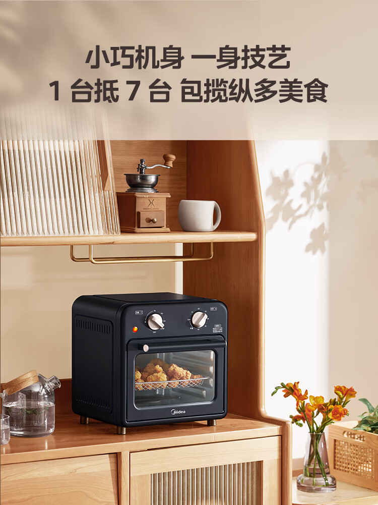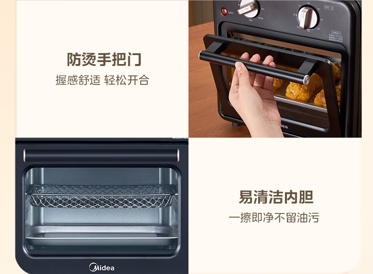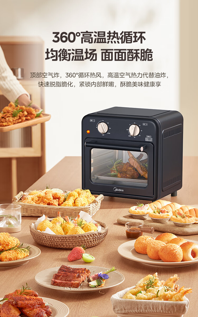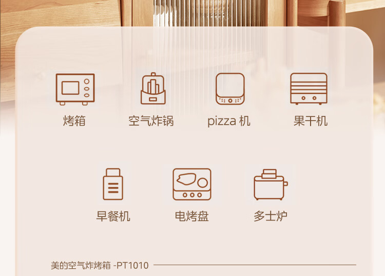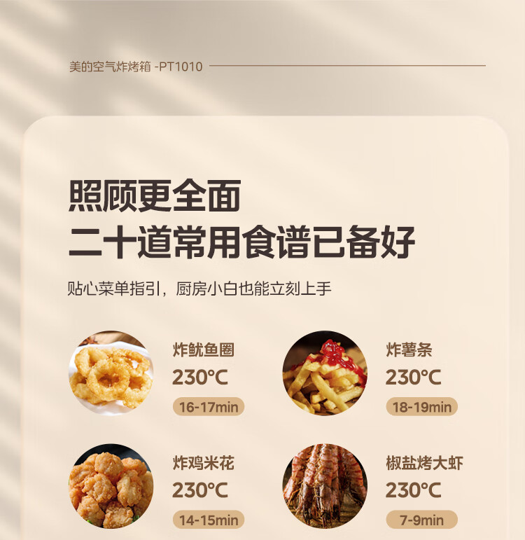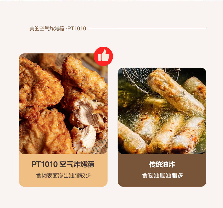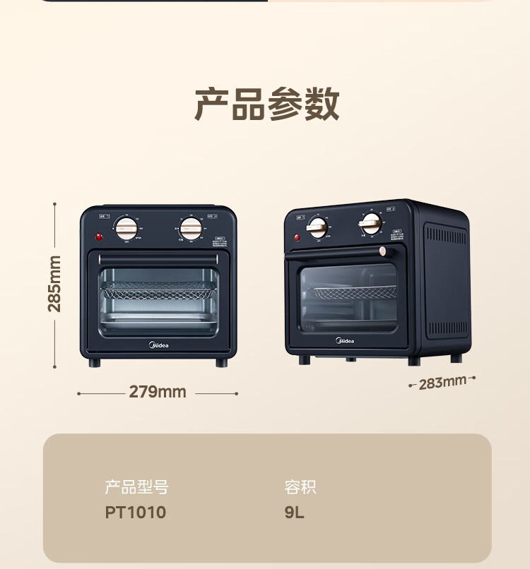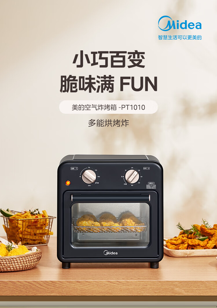 美的(Midea)9L家用多功能空气炸电烤箱 顶部菜单/可视窗口/热风循环 PT1010