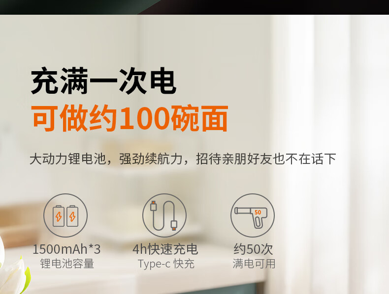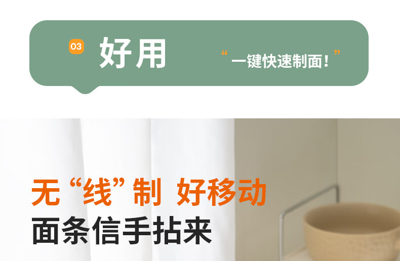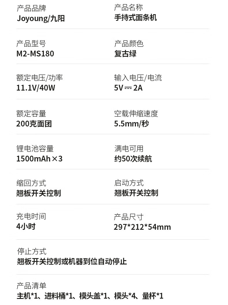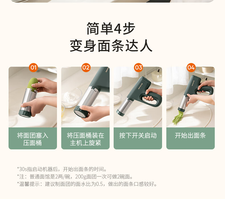 九阳(Joyoung)面条机 家用电动小面枪 无线便携30秒快速出面自动不锈钢压面条机M2-MS180