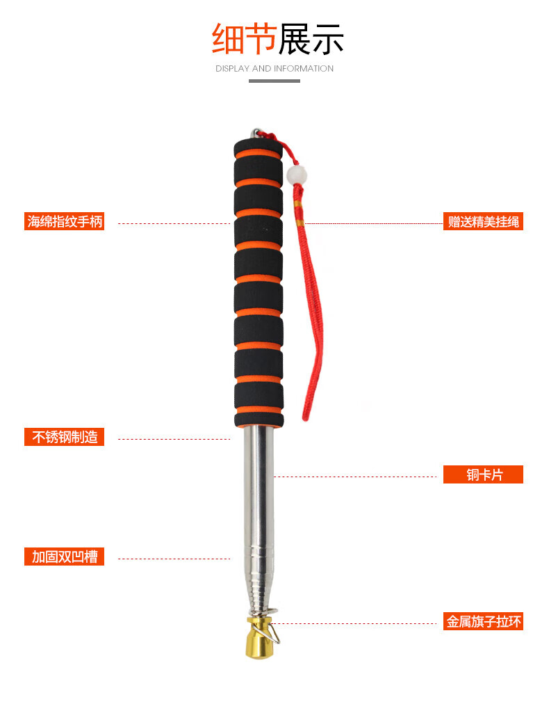 盛扬 伸缩旗杆指挥棒导游旗杆不锈钢手摇旗杆可伸缩 1.6米伸缩旗杆(颜色随机)