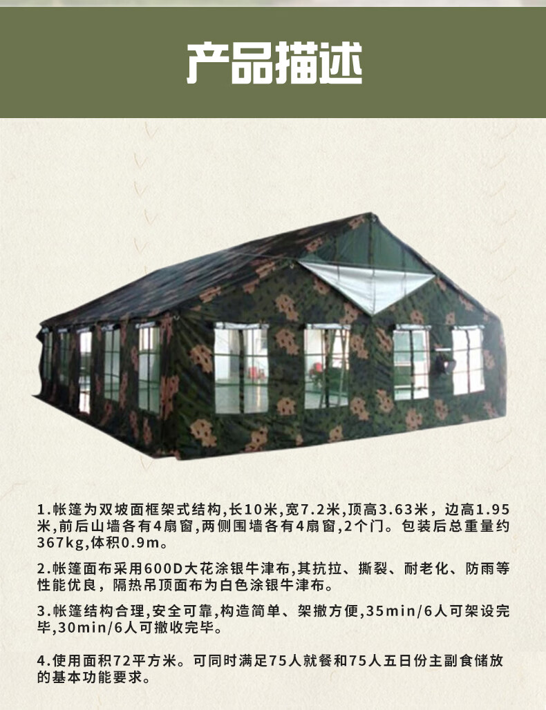 荣兵 户外帐篷大型连排野营野战帐篷7.2m*10m