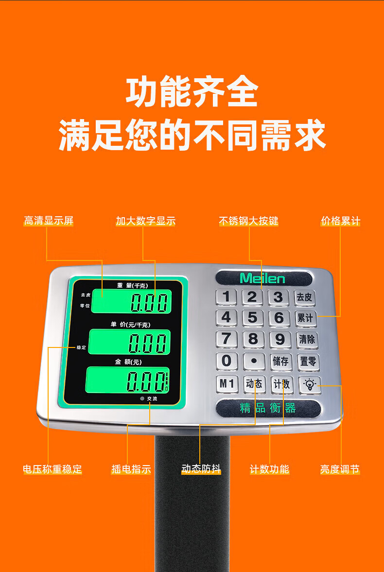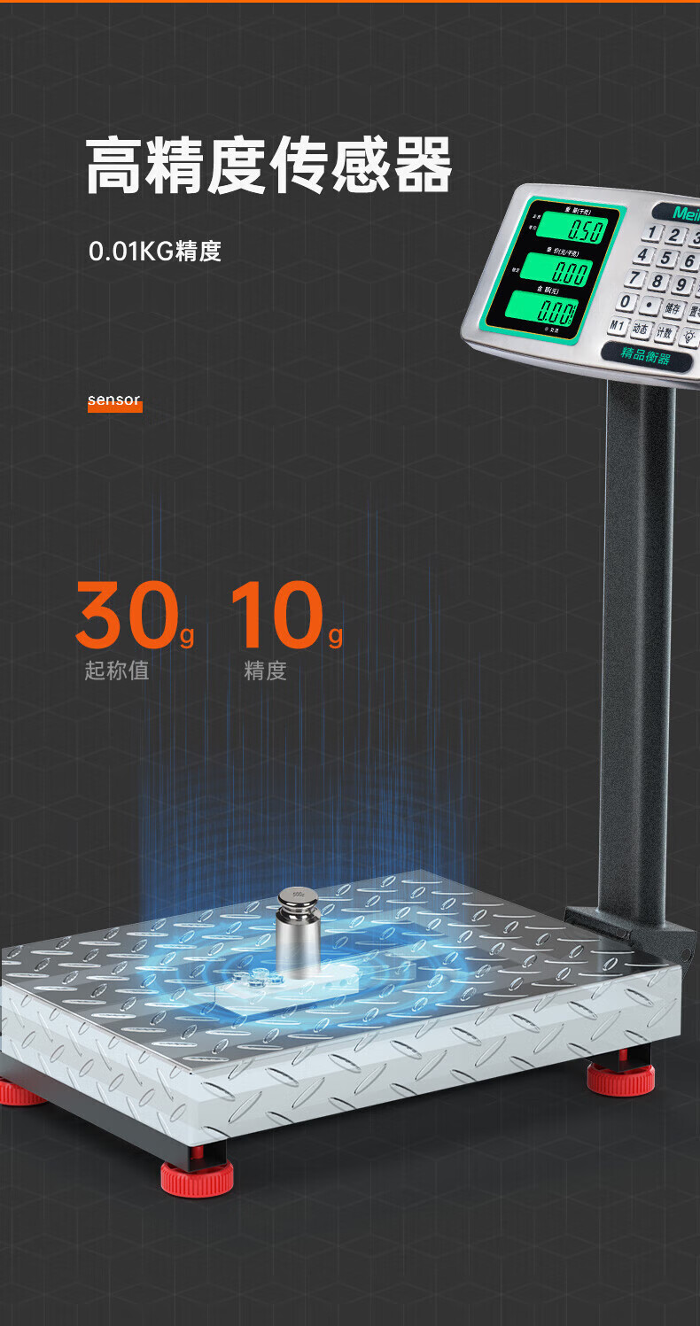 奥尔法(ORPHA)称重电子秤 300kg不锈钢加厚加大台面
