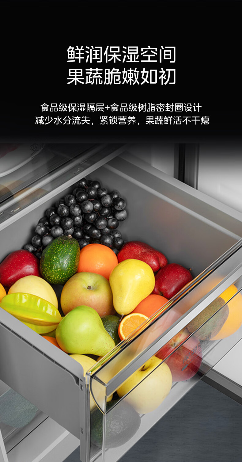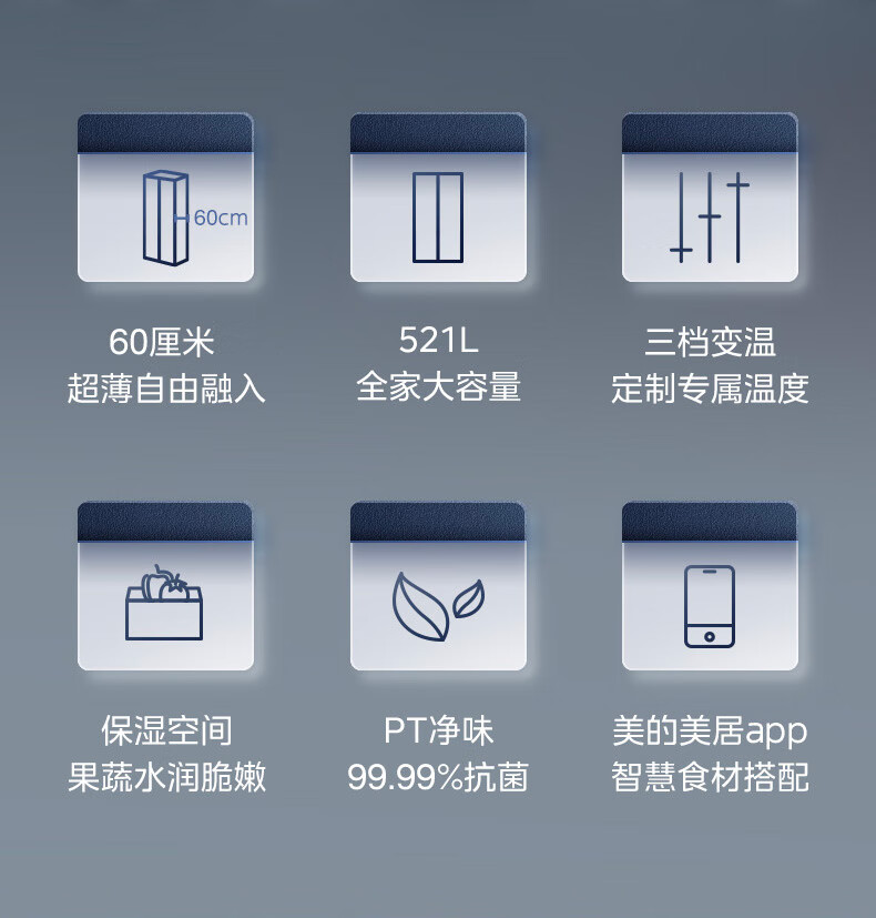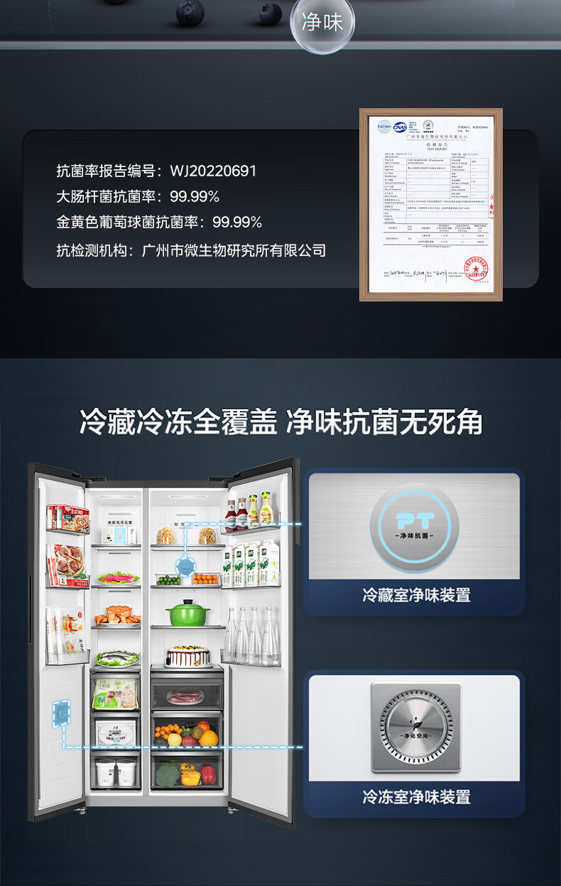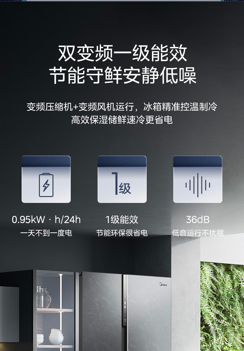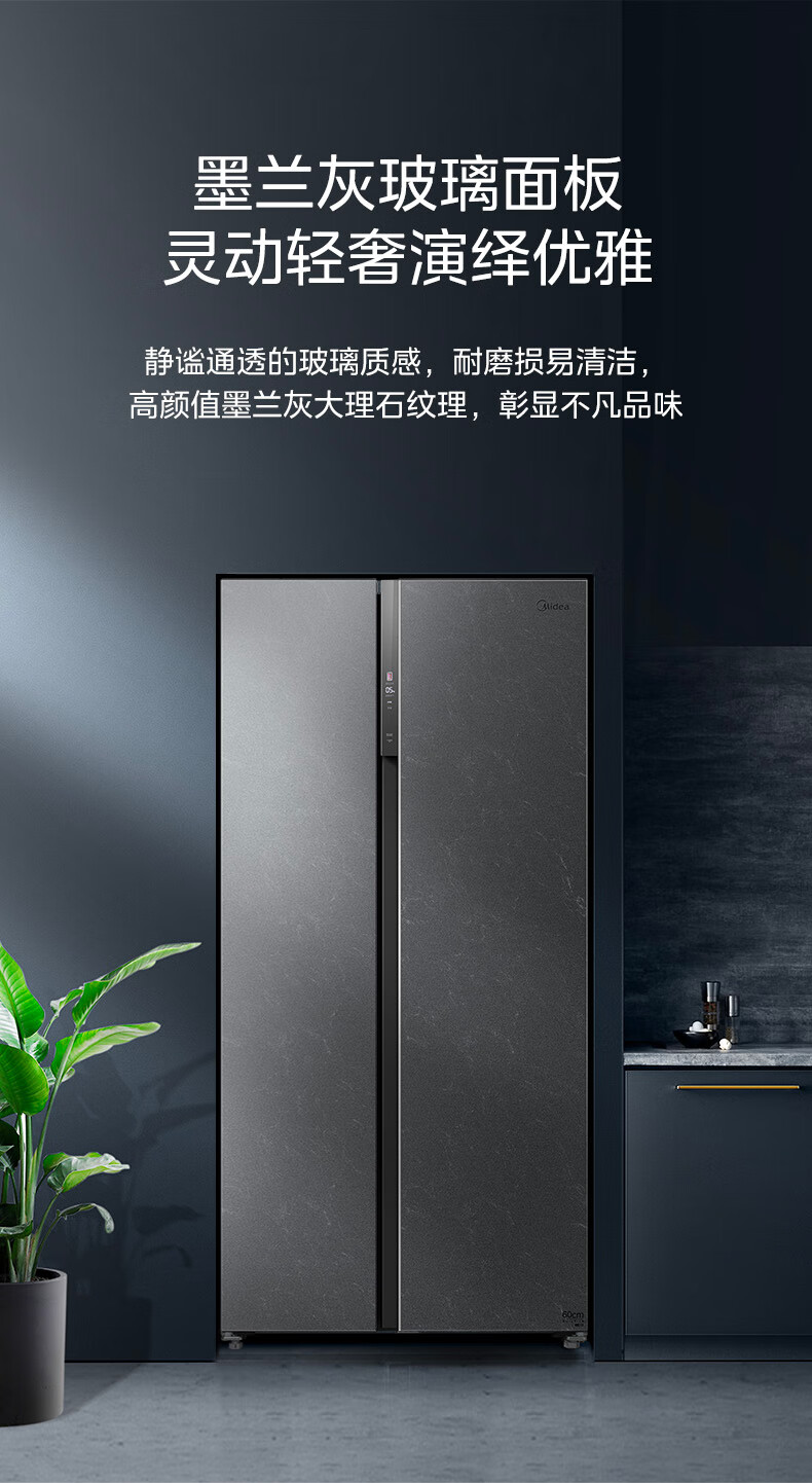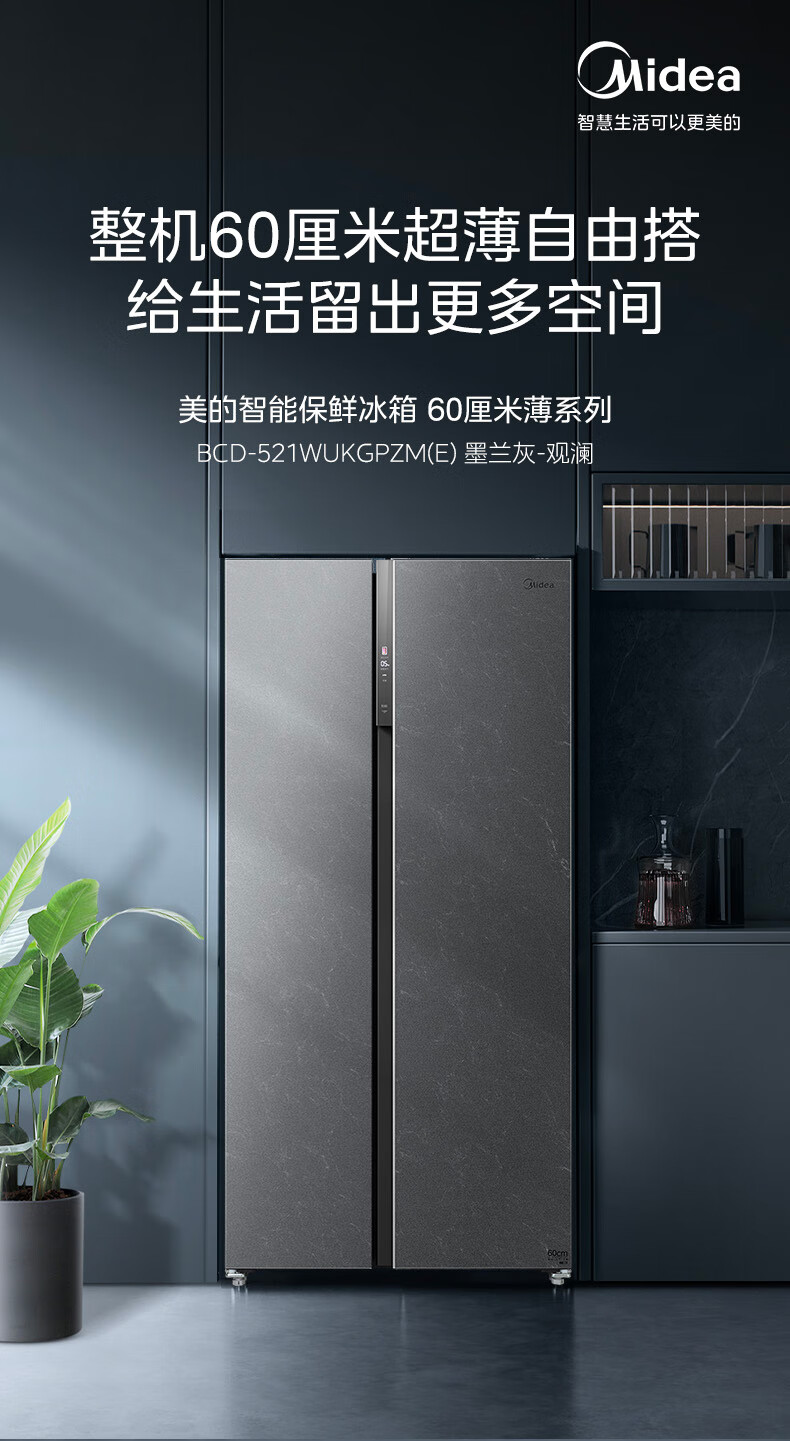 美的(Midea)521升对开门冰箱大容量家用一级变频净味除菌超薄风冷智能家电BCD-521WUKGPZM(E) 墨兰灰-观澜