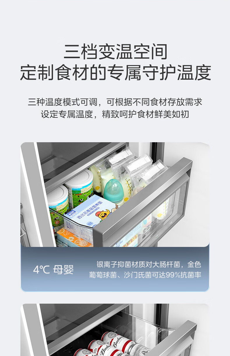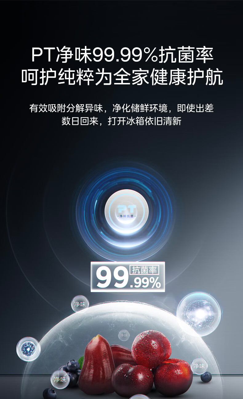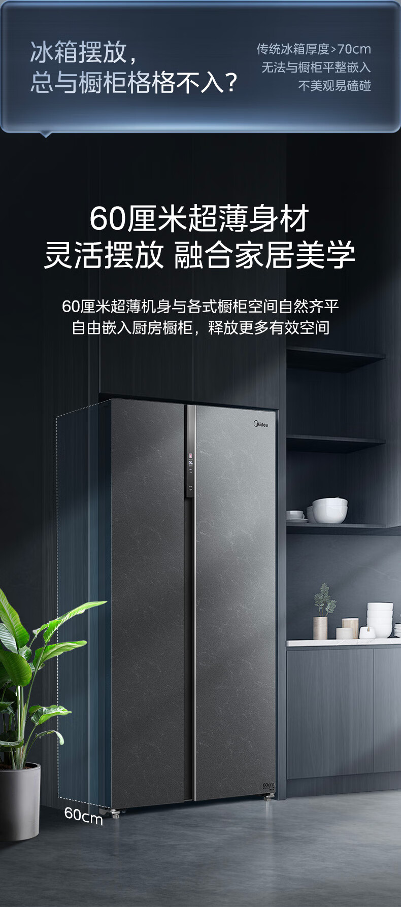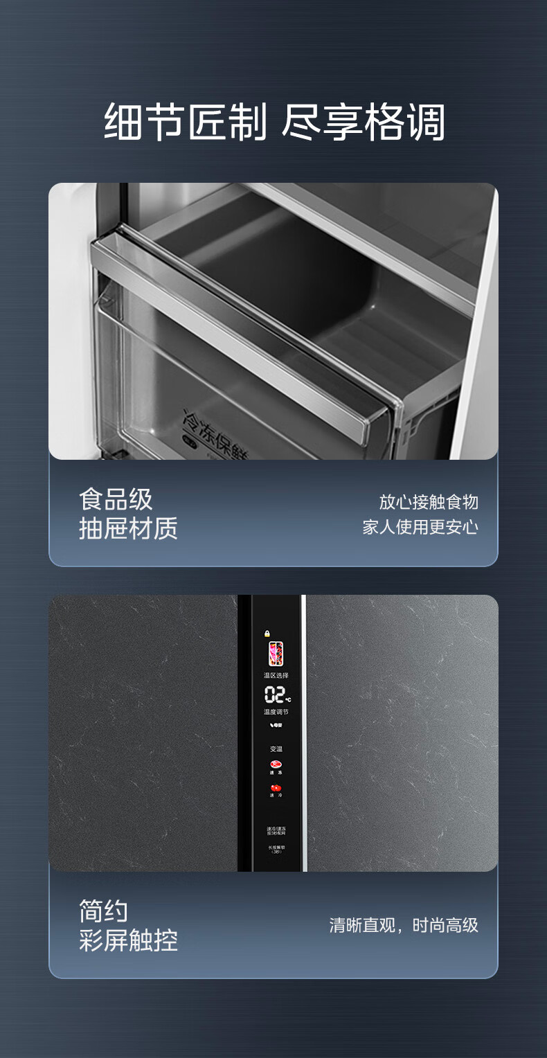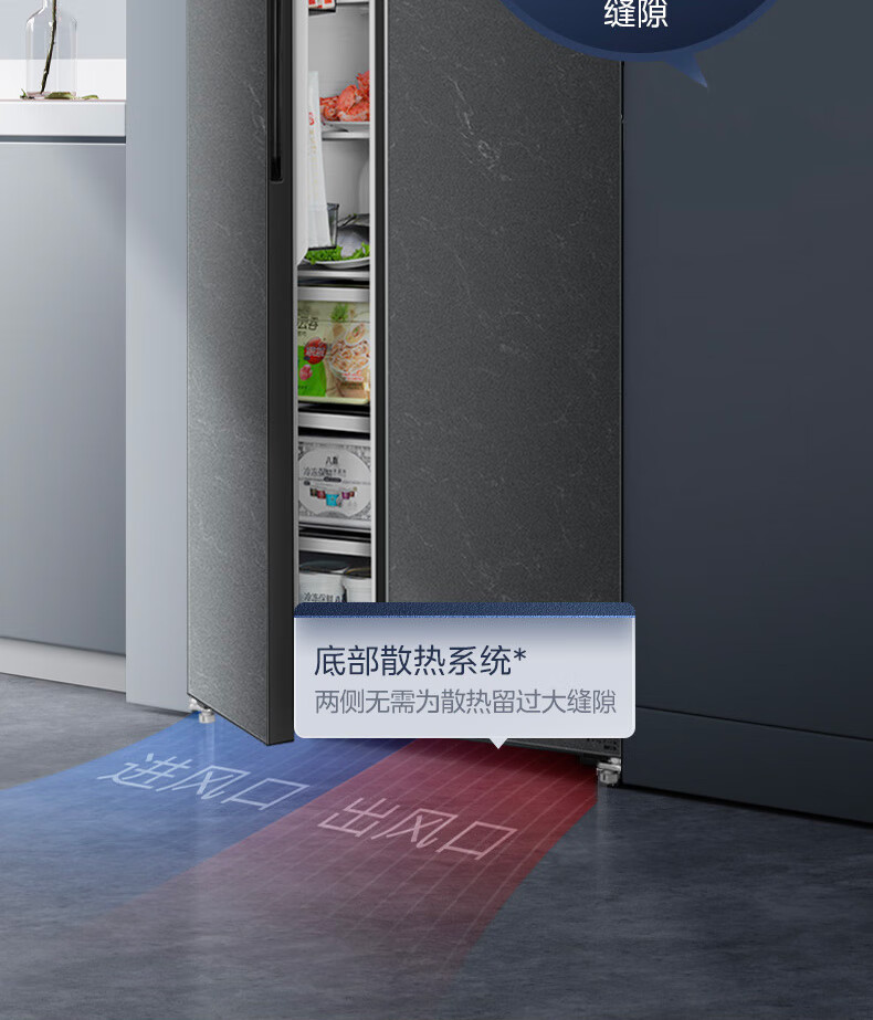 美的(Midea)521升对开门冰箱大容量家用一级变频净味除菌超薄风冷智能家电BCD-521WUKGPZM(E) 墨兰灰-观澜