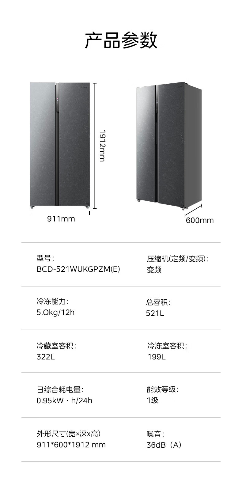 美的(Midea)521升对开...