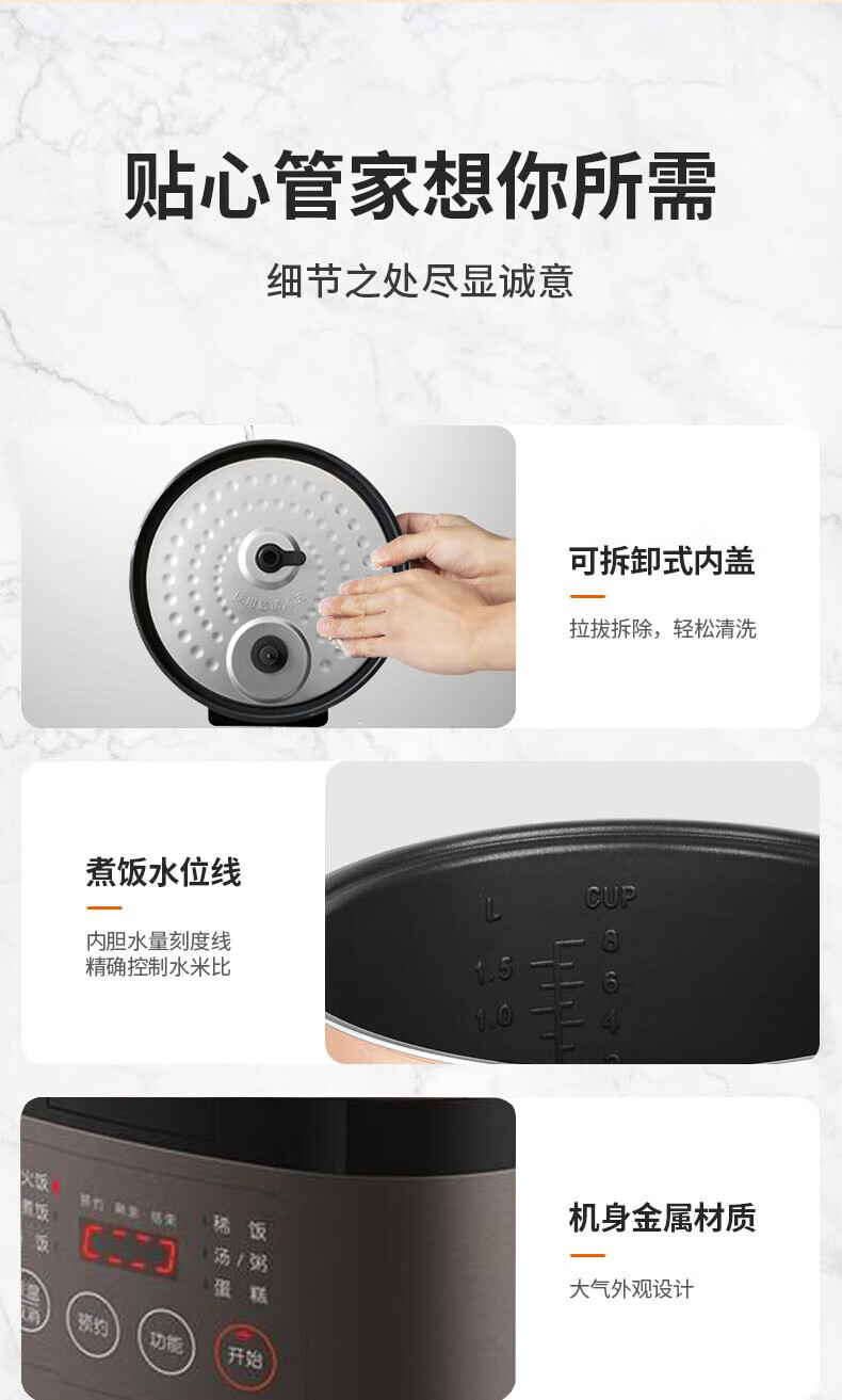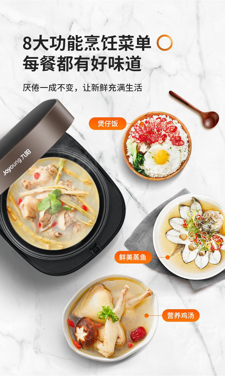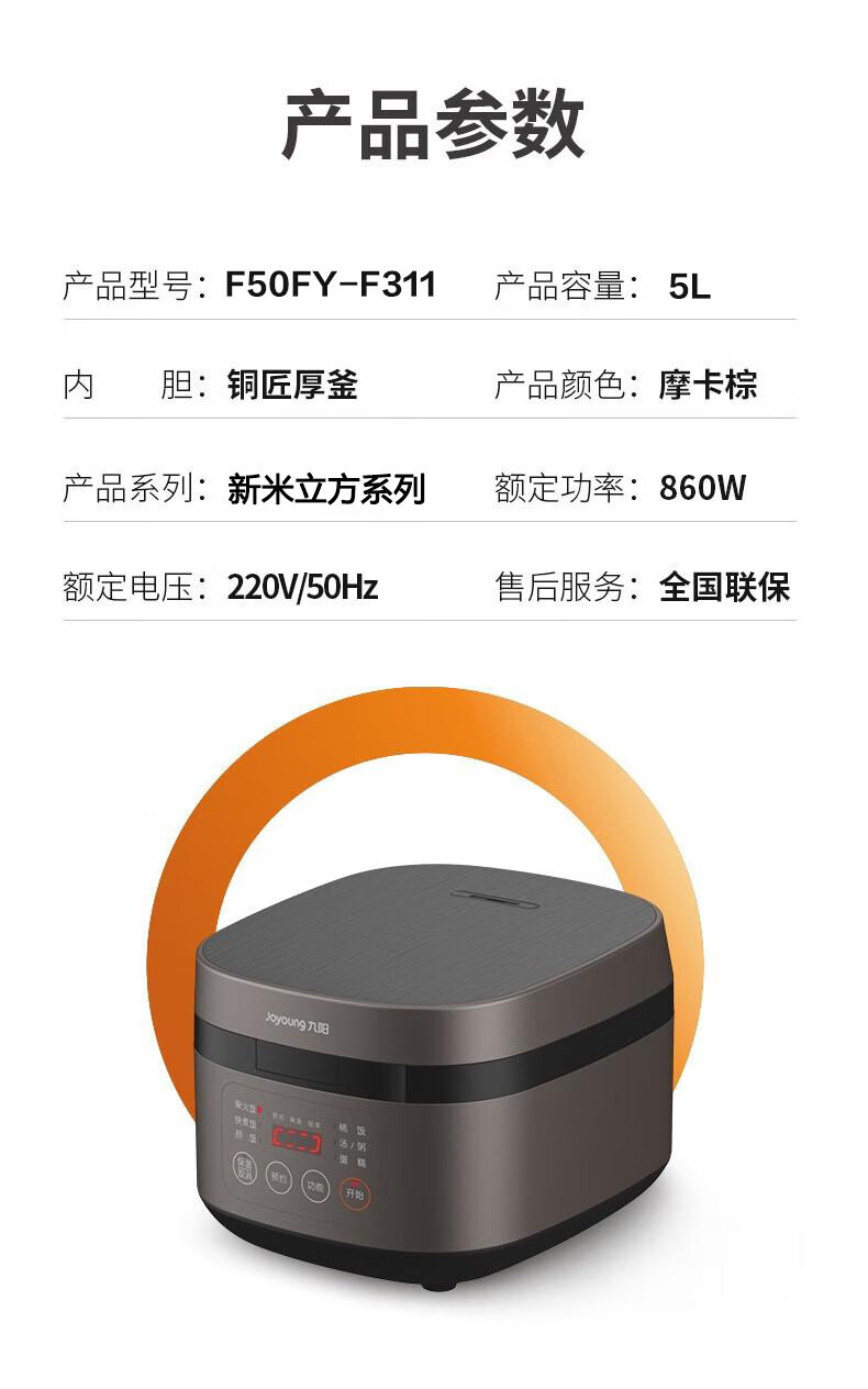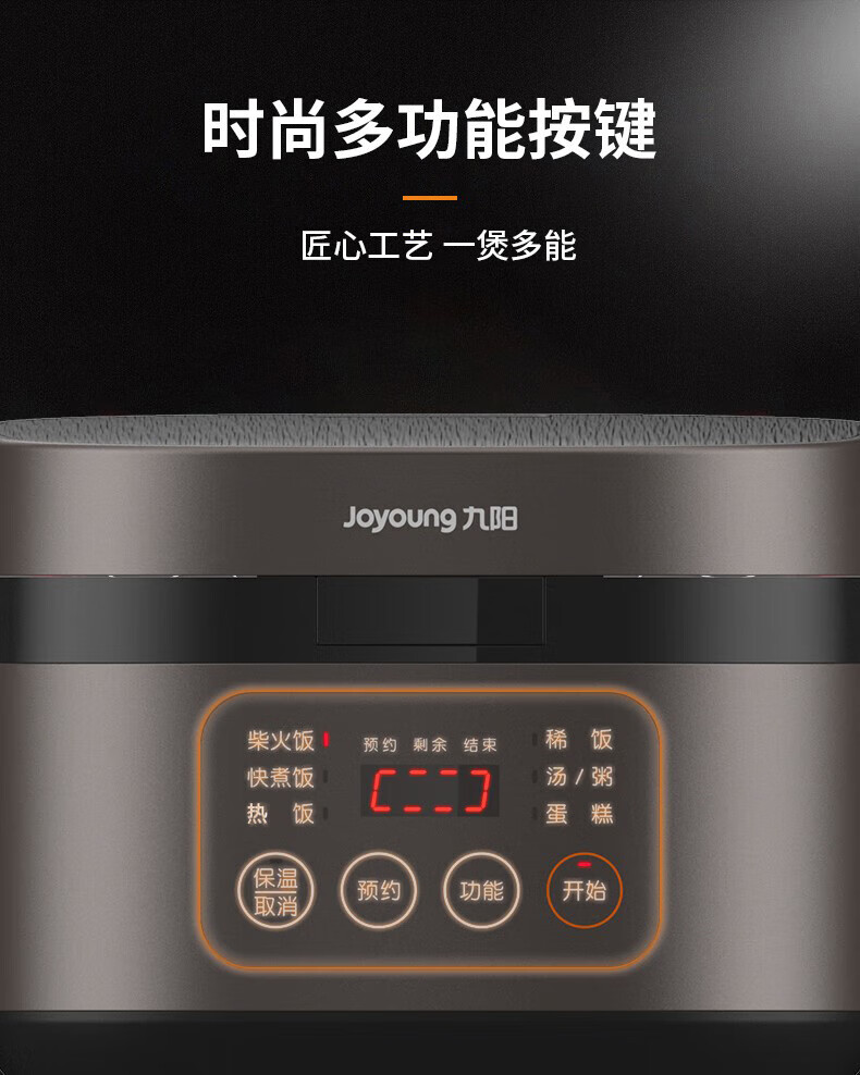 九阳Joyoung 电饭煲 智能预约多功能大火力柴火饭 5L大容量适3-7人 焖煮防溢家用 电饭煲F50FY-F311