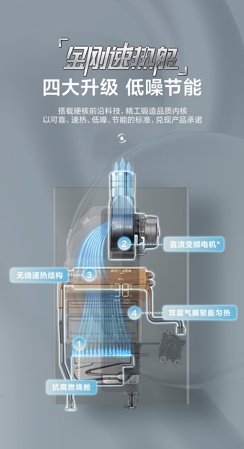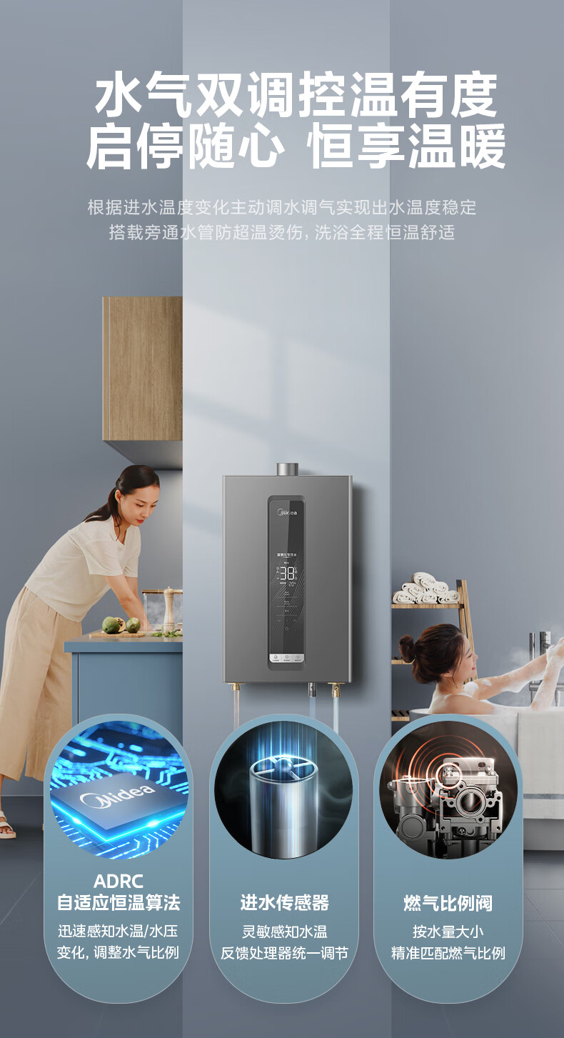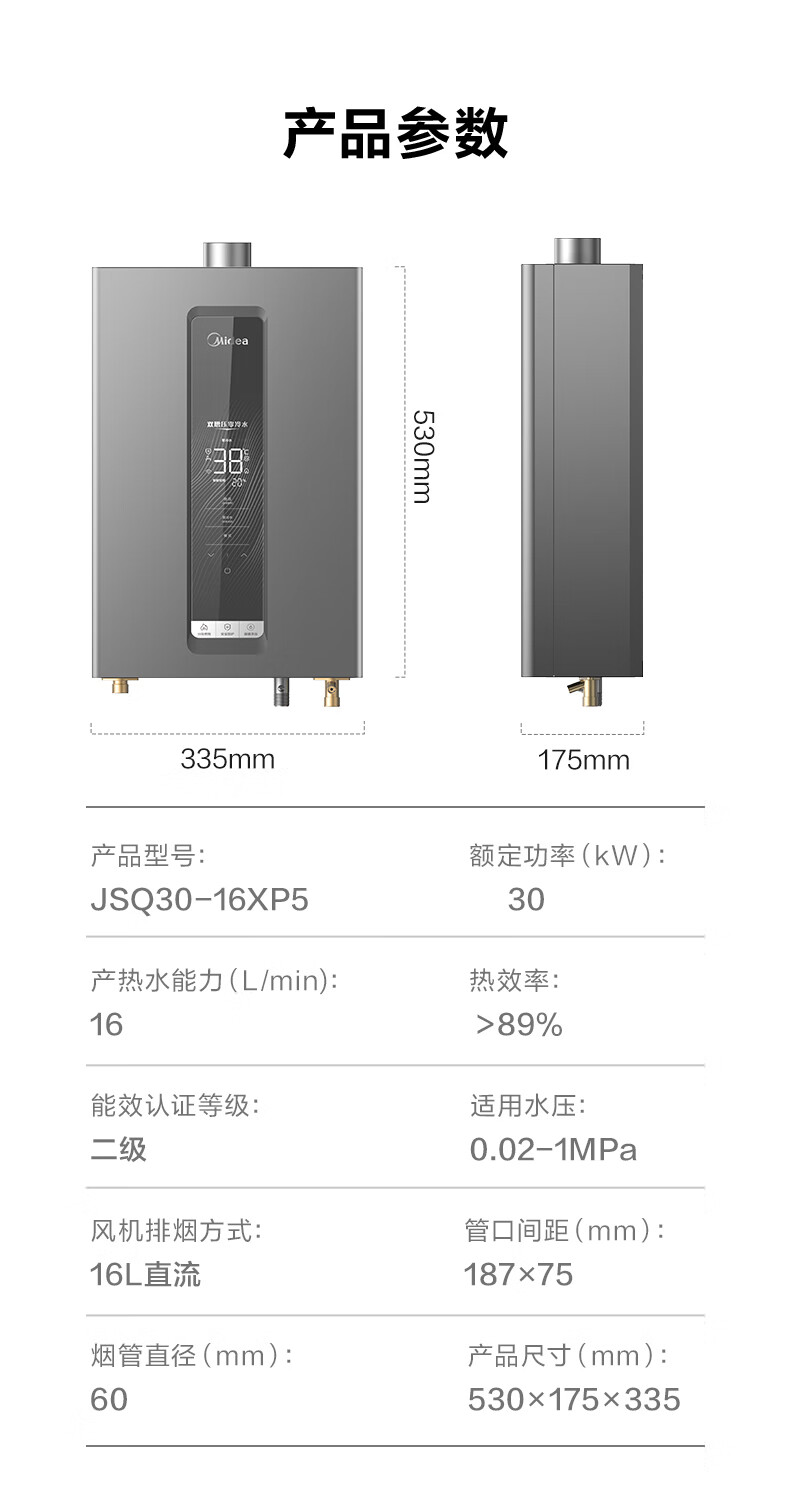 美的(Midea)双增压 零冷水 水汽双调 家用燃气热水器 天然气 金刚速热 密闭稳燃仓JSQ30-16XP5*