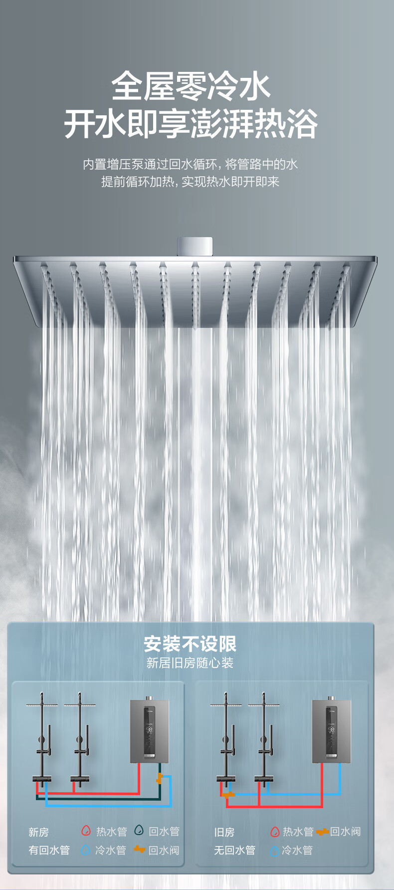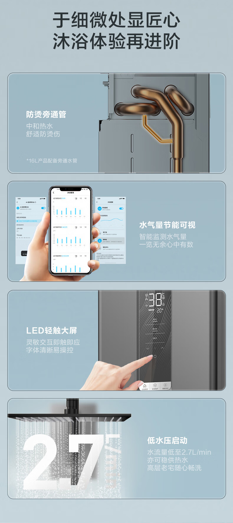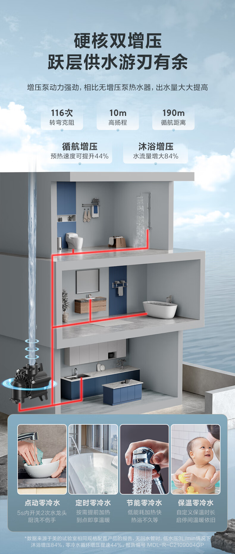美的(Midea)双增压 零冷水 水汽双调 家用燃气热水器 天然气 金刚速热 密闭稳燃仓JSQ30-16XP5*