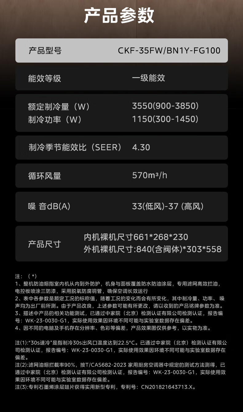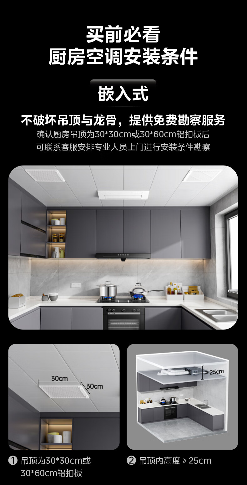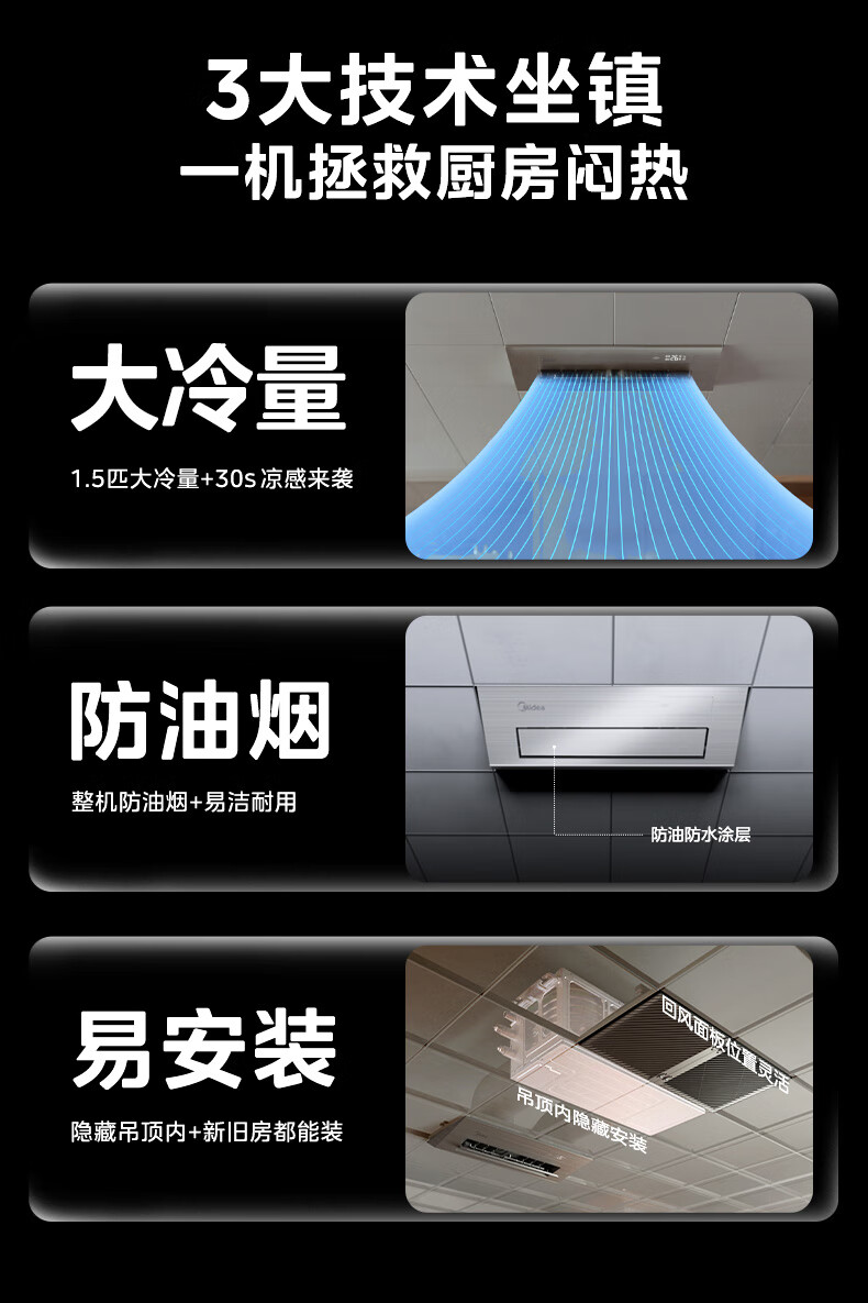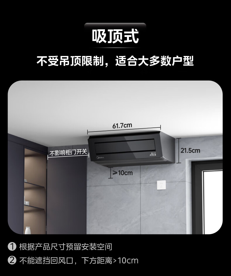 美的(Midea)厨清凉厨房空调专用嵌入式一级能效变频1.5匹家用集成吊顶制冷CKF-35FW/BN1Y-FG100【专卖店专属】