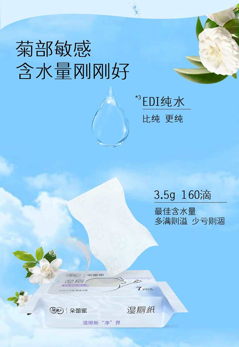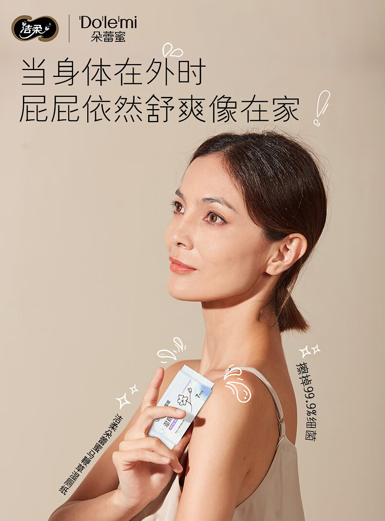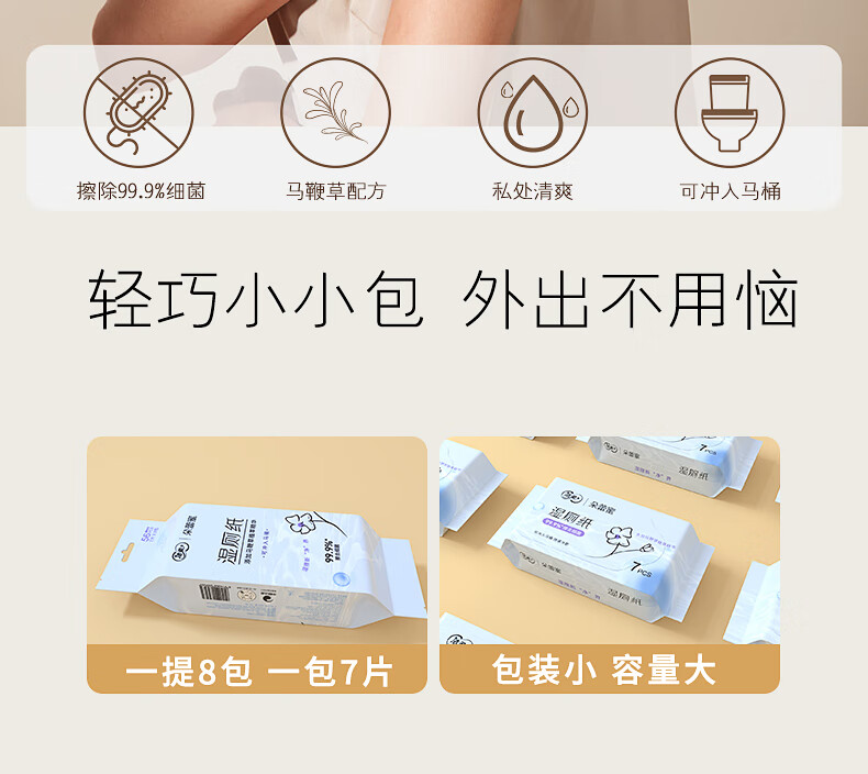 洁柔湿巾 亲肤7片*8包湿纸巾湿厕 超迷你 清爽不粘腻不含酒精朵蕾蜜