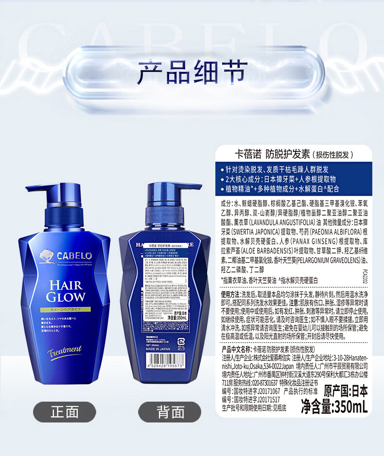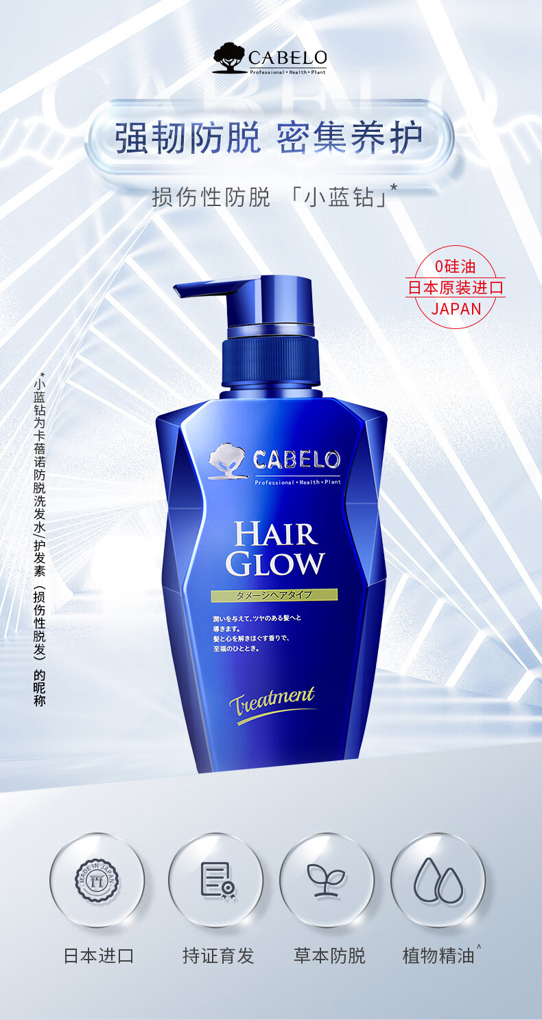卡蓓诺(CABELO)护发素防脱发育发350ml修护烫染损伤蛋白养发润发乳日本进口