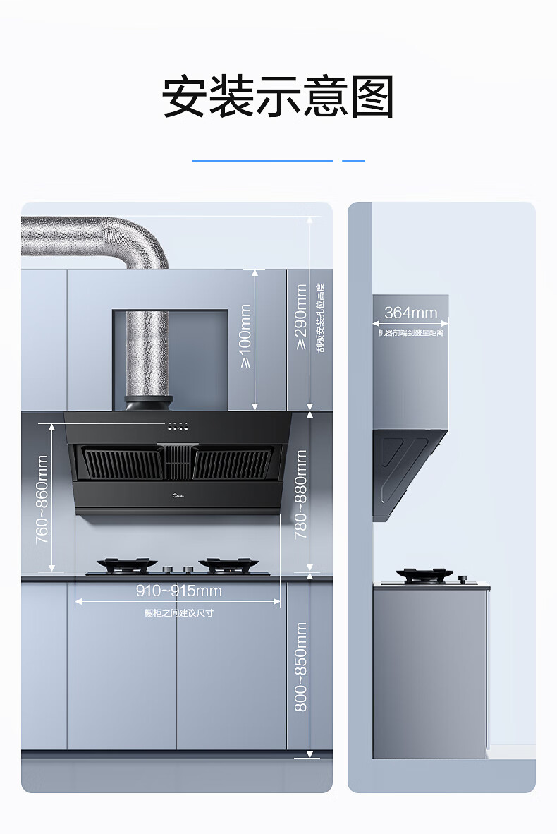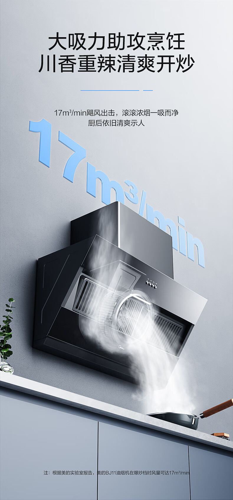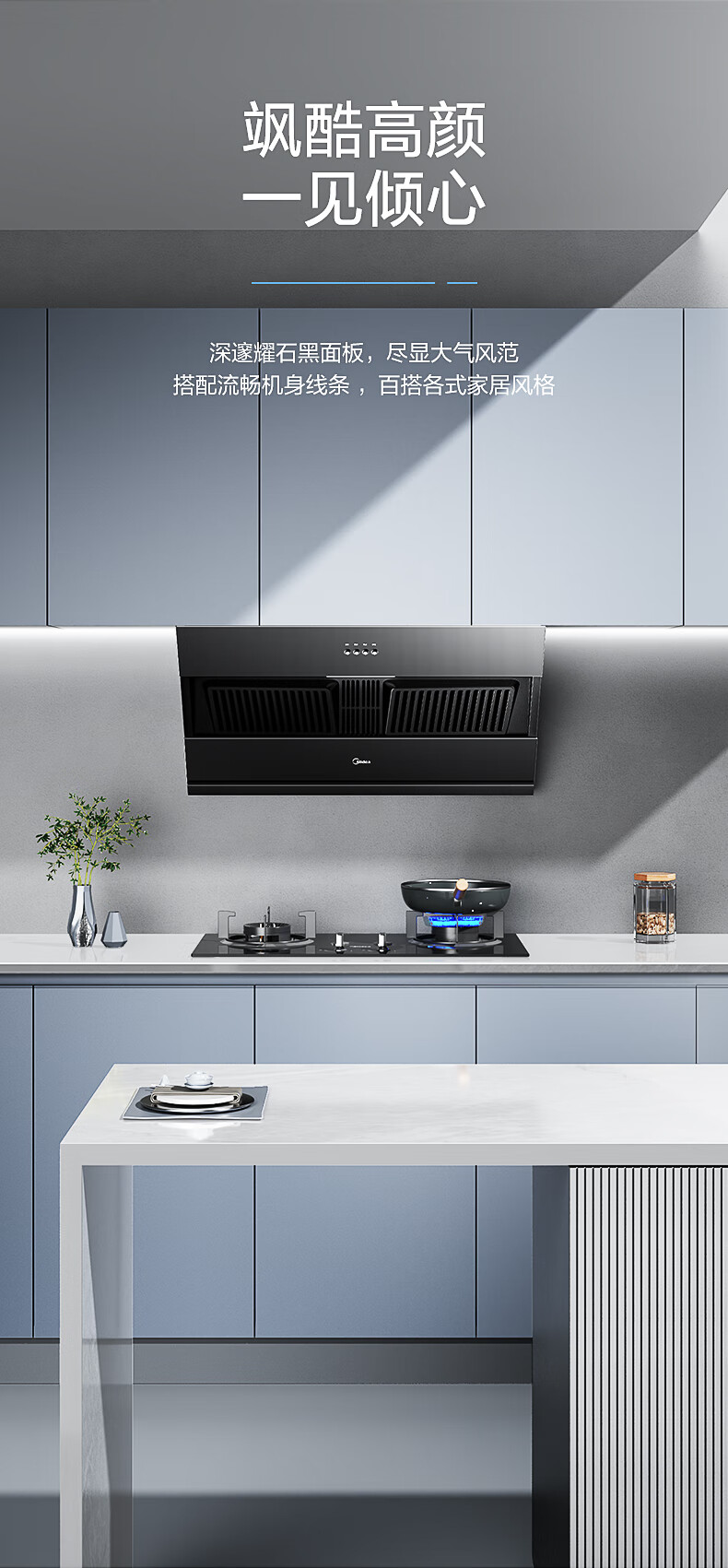 美的(Midea)家用烟灶套装 17立方爆炒大吸力 4.5KW大火力 家用厨房侧吸式烟灶套装 液化气 BJ11+QW08-Y*