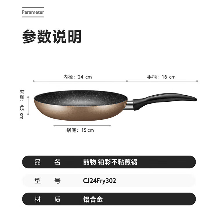 美的(Midea)煎锅不粘锅牛排锅平底锅煎蛋锅煎饼锅炒菜锅CJ24Fry302M金色