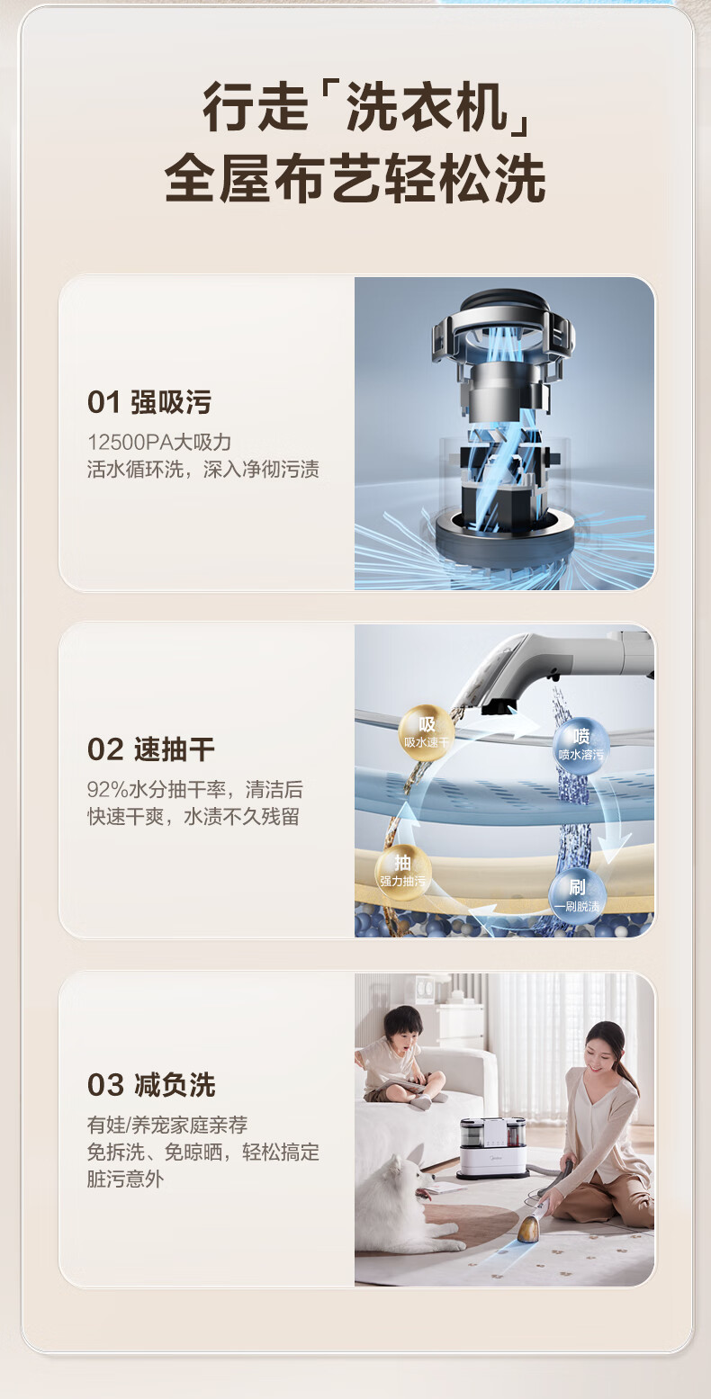 美的(Midea)布艺沙发清洗机Y2 家用沙发地毯床垫窗帘汽车清洁神器吸尘器