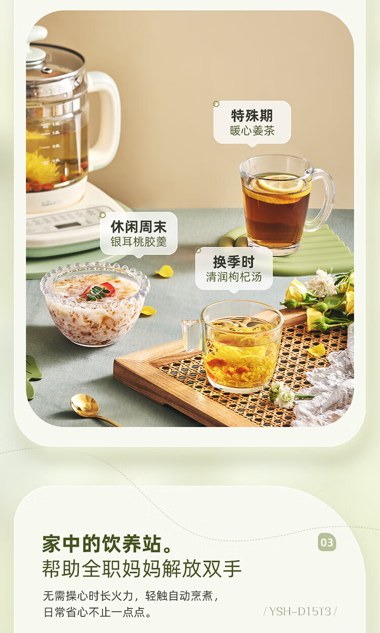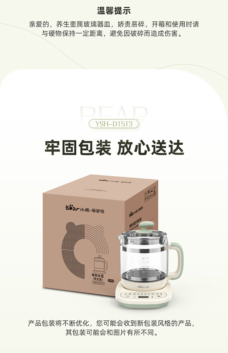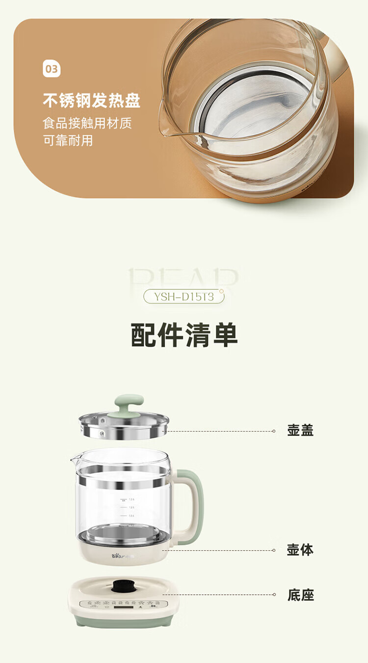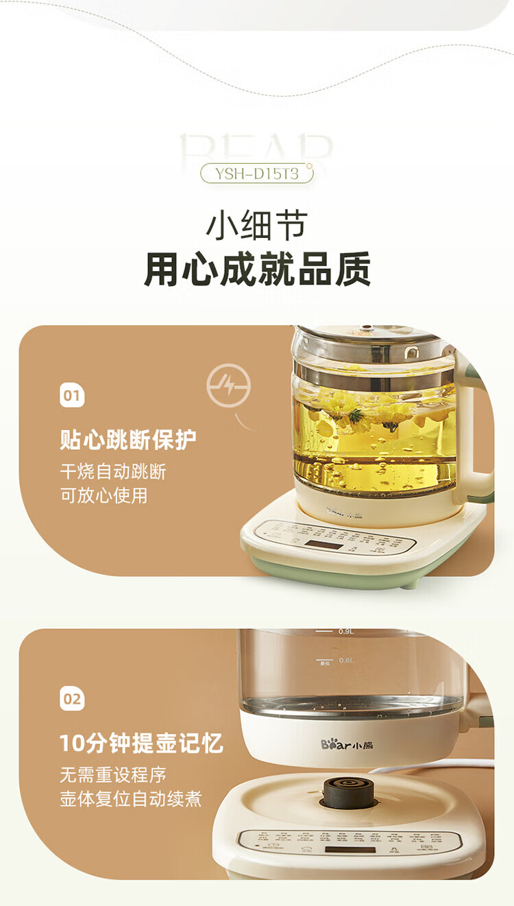 小熊养生壶电水壶烧水壶多功能煮茶器玻璃花茶壶 智能保温1.5L YSH-D15T3