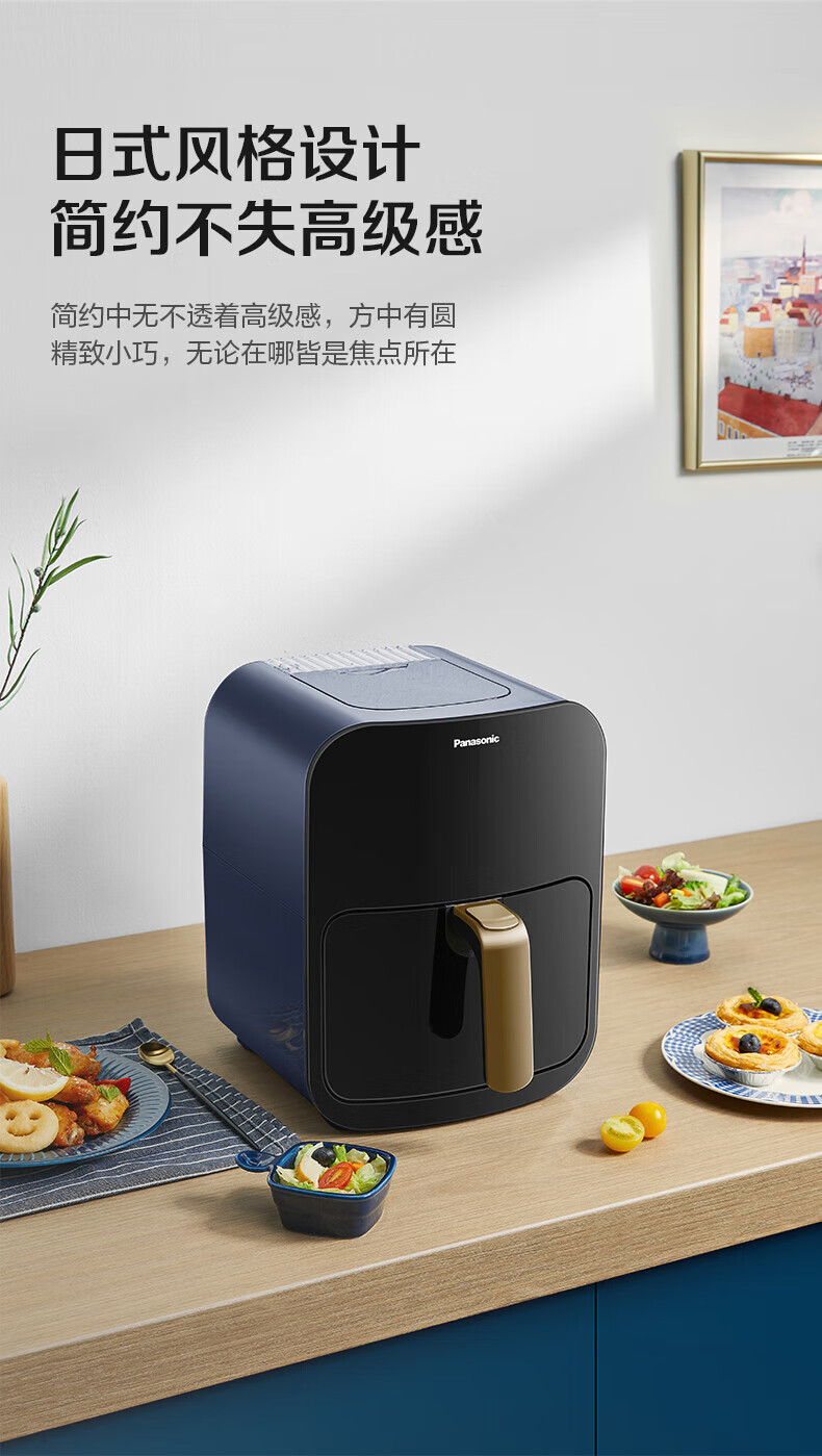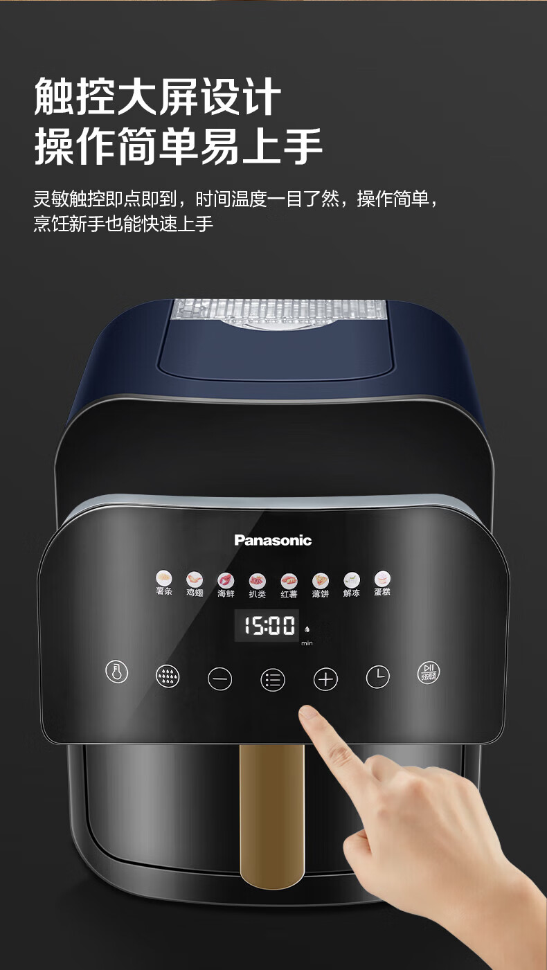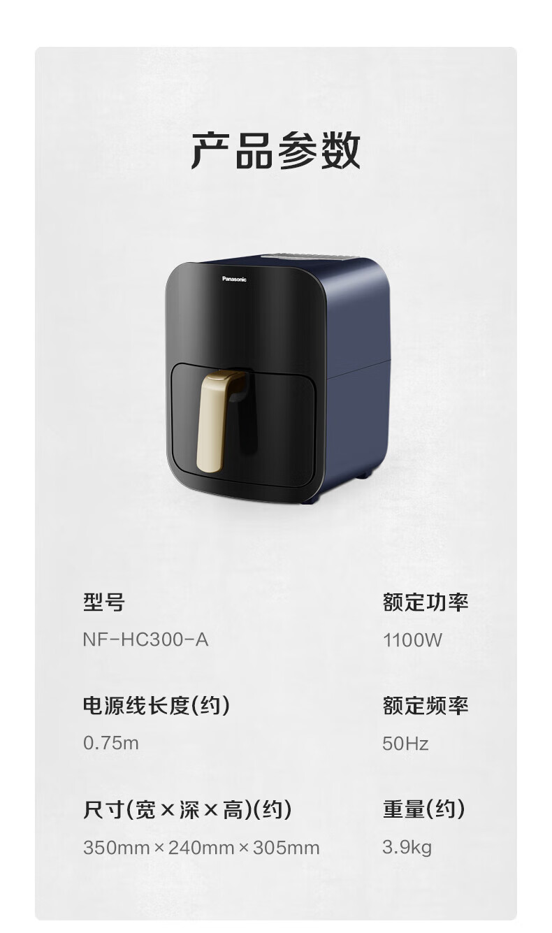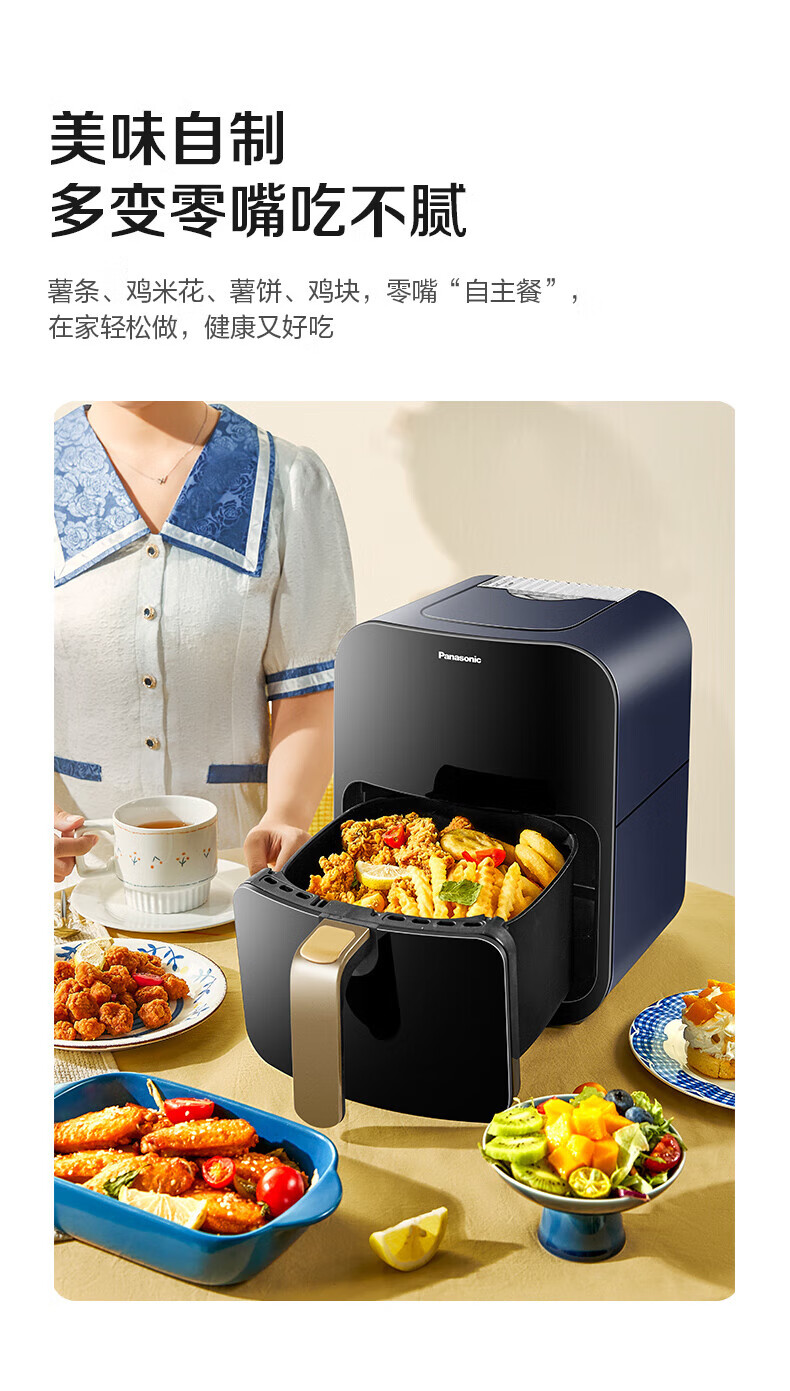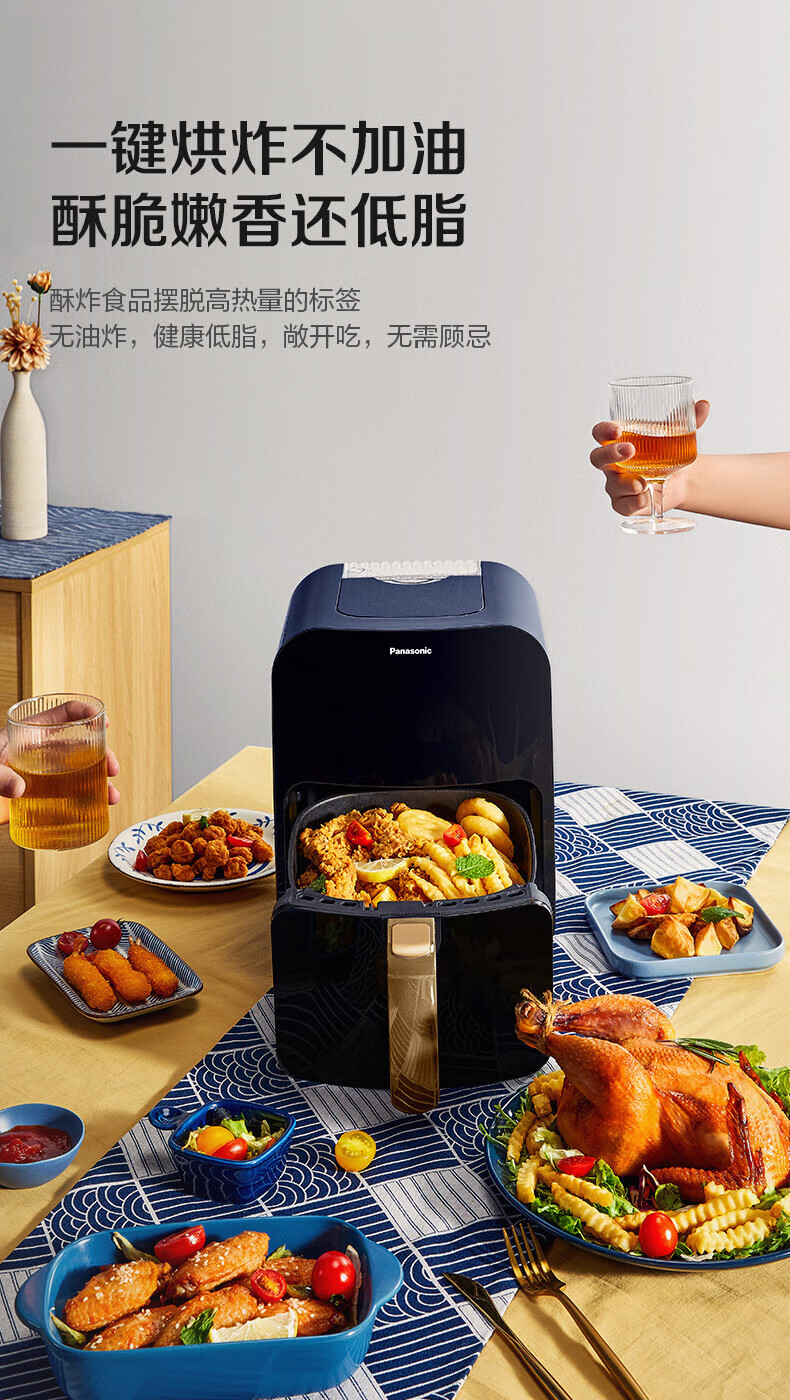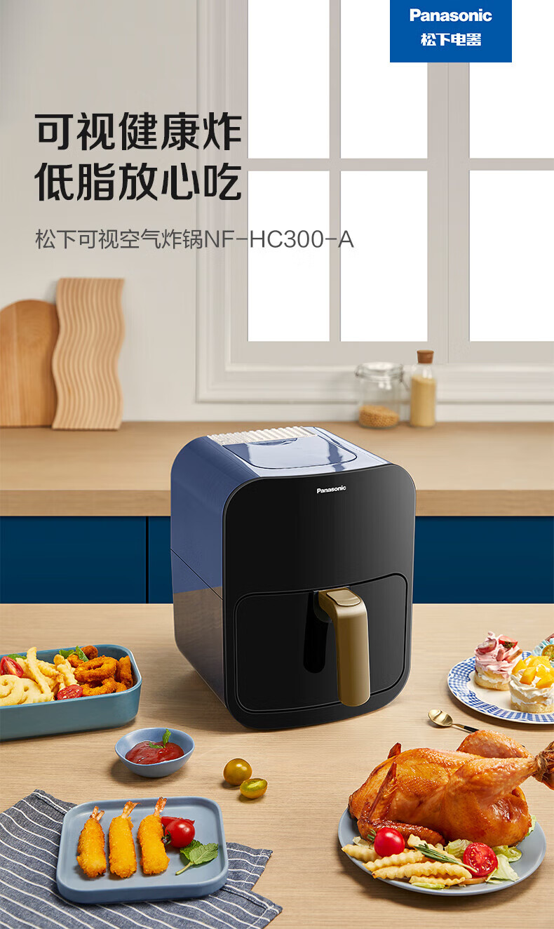 松下(Panasonic)空气炸锅 多功能家用透明可视全自动无油4L大容量电薯条机 360°均匀受热 NF-HC300-A 轻奢