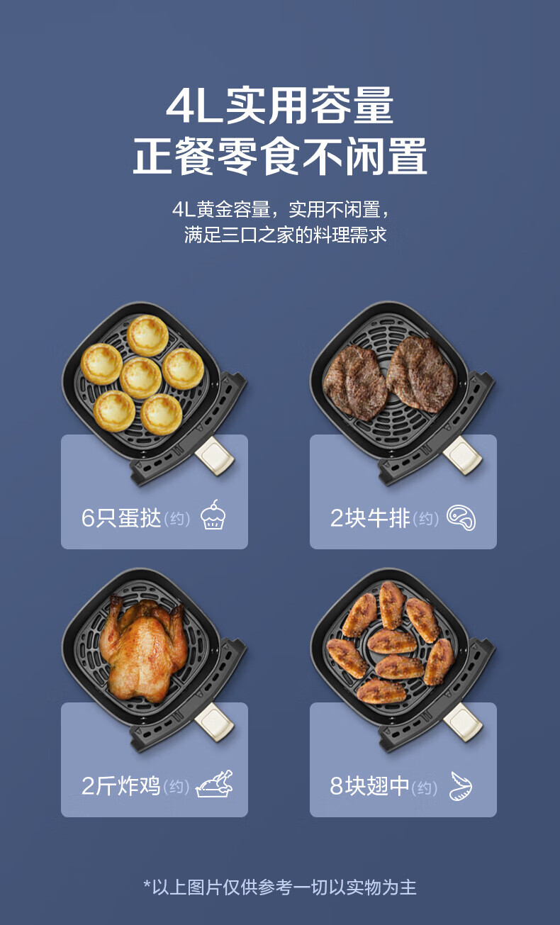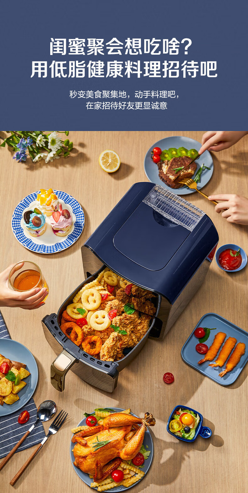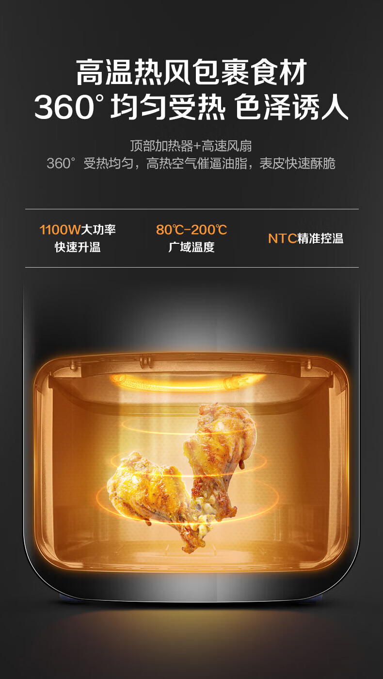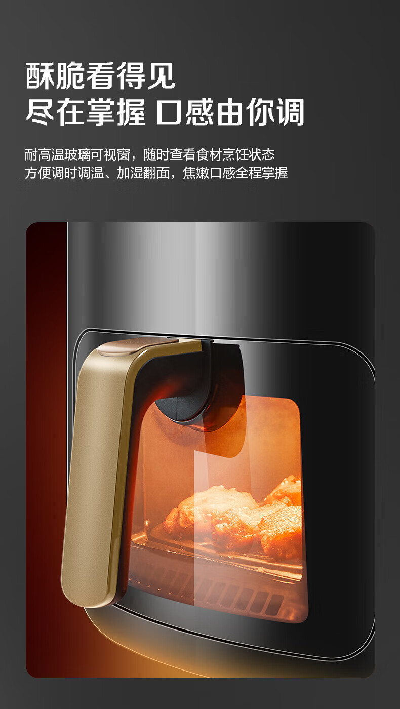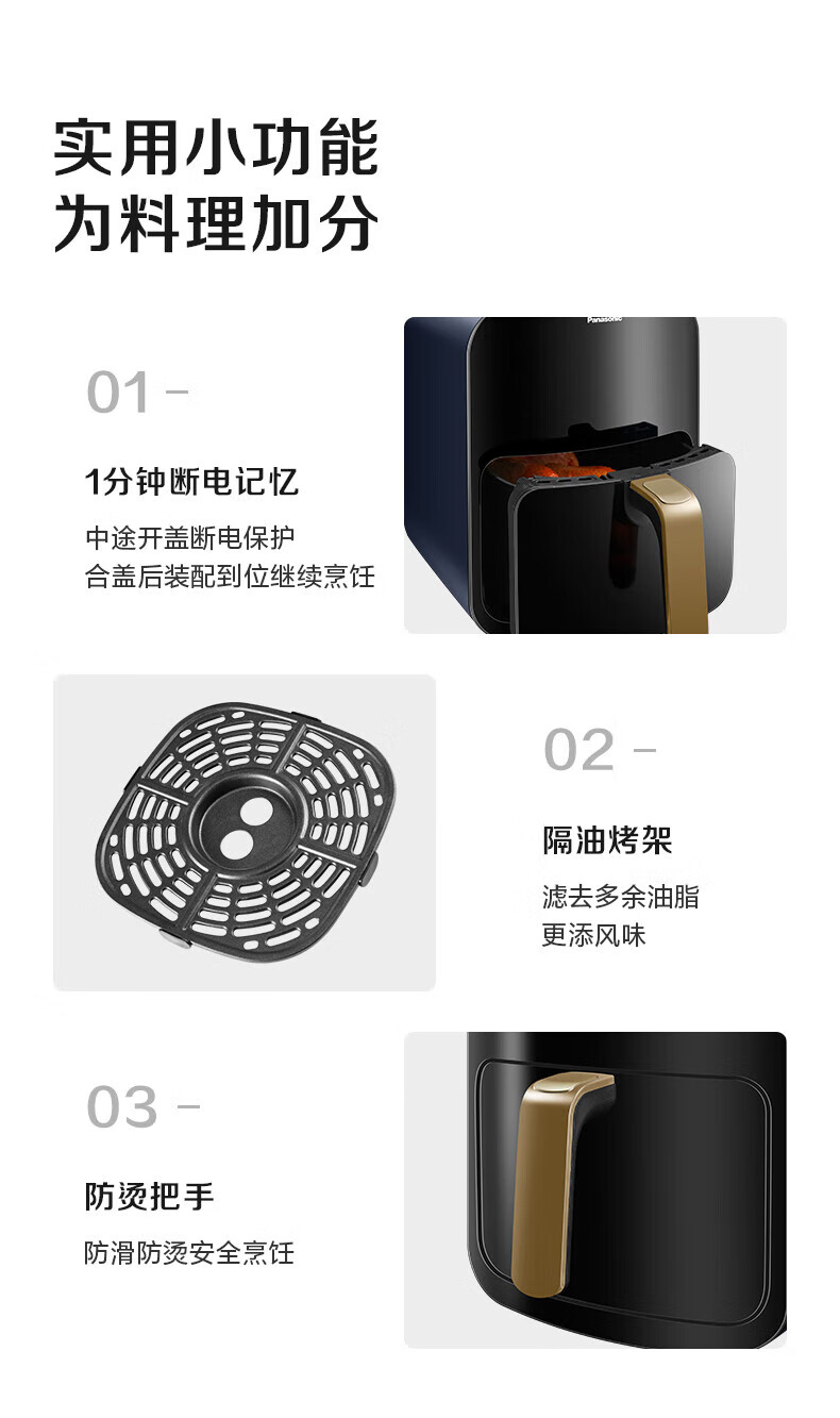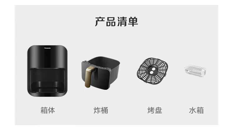 松下(Panasonic)空气炸锅 多功能家用透明可视全自动无油4L大容量电薯条机 360°均匀受热 NF-HC300-A 轻奢
