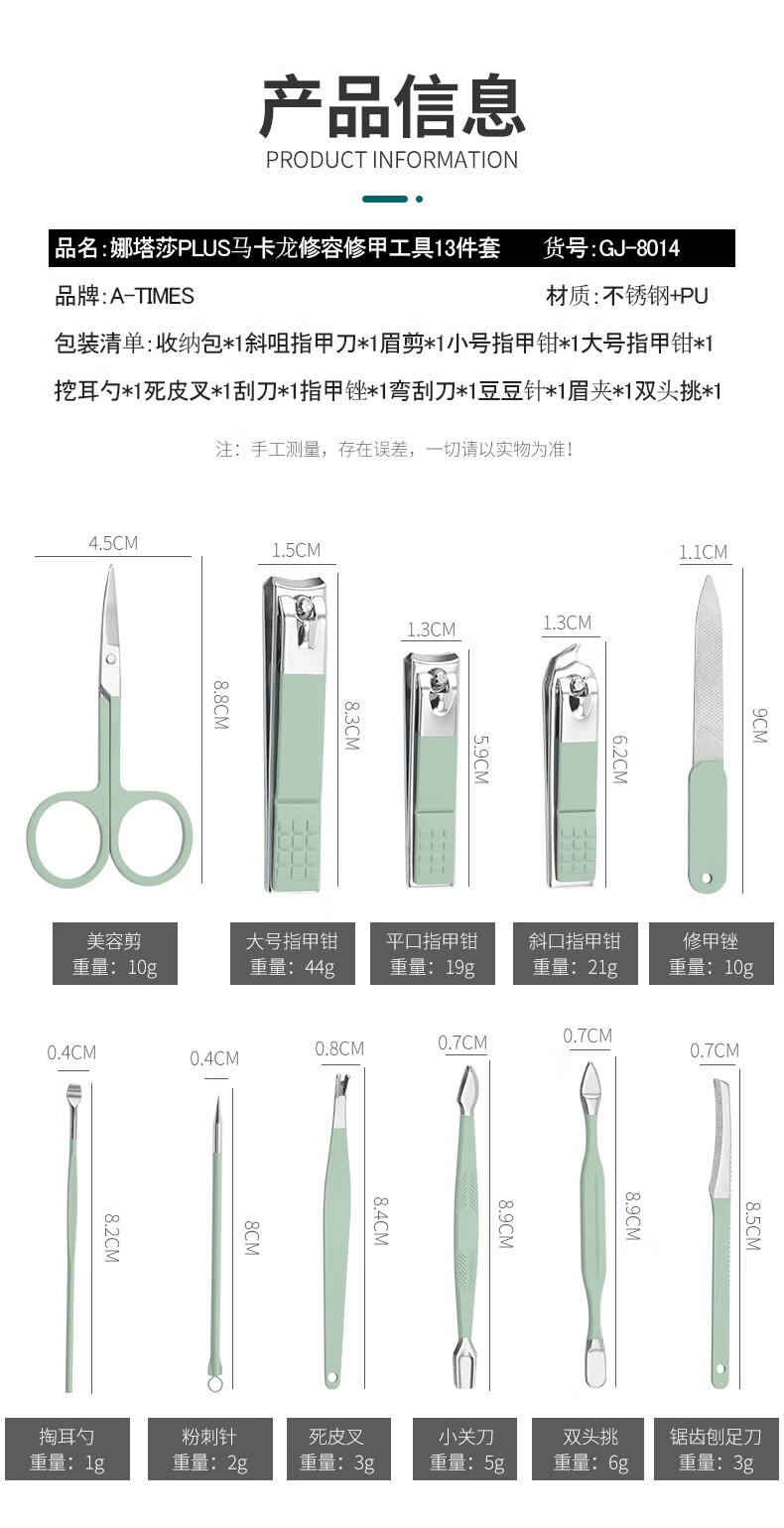 A-TIMES 娜塔莎PLUS马卡龙修容修甲工具13件套 GJ-8014