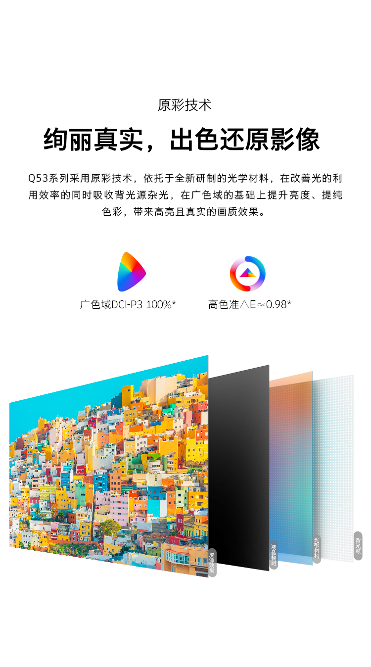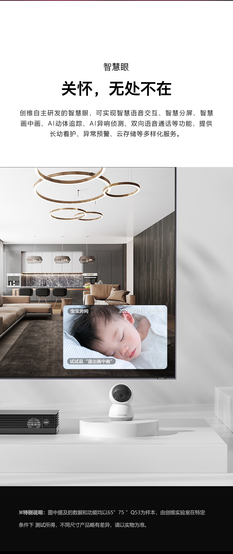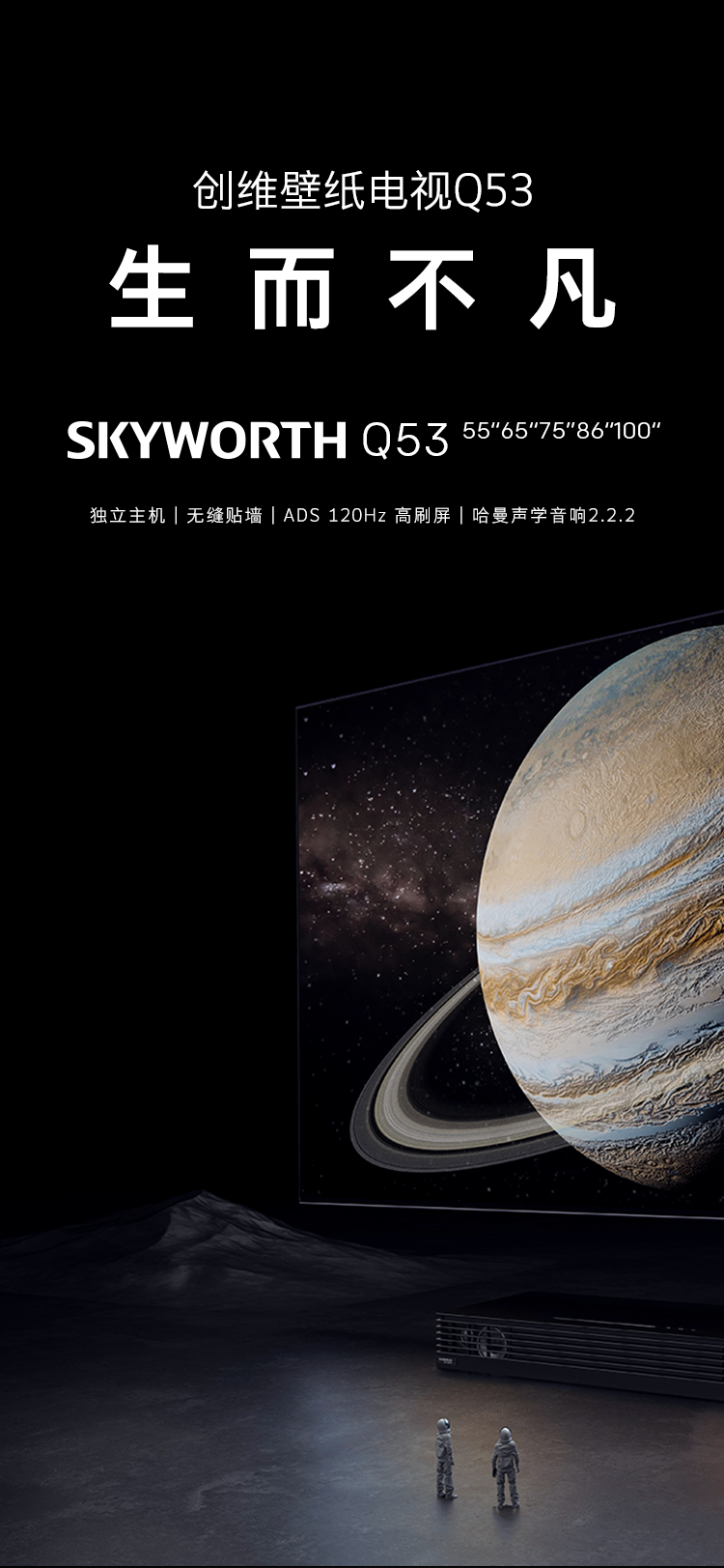 创维Skyworth 55Q53 55英寸 4K超高清 ADS 120Hz 无缝贴墙 独立主机 哈曼声学音响 3+32GB /壁纸电视