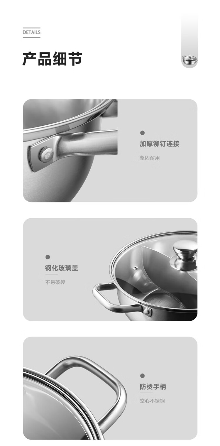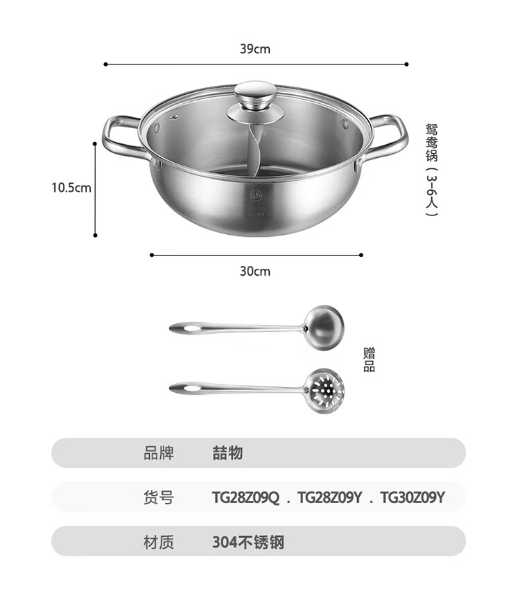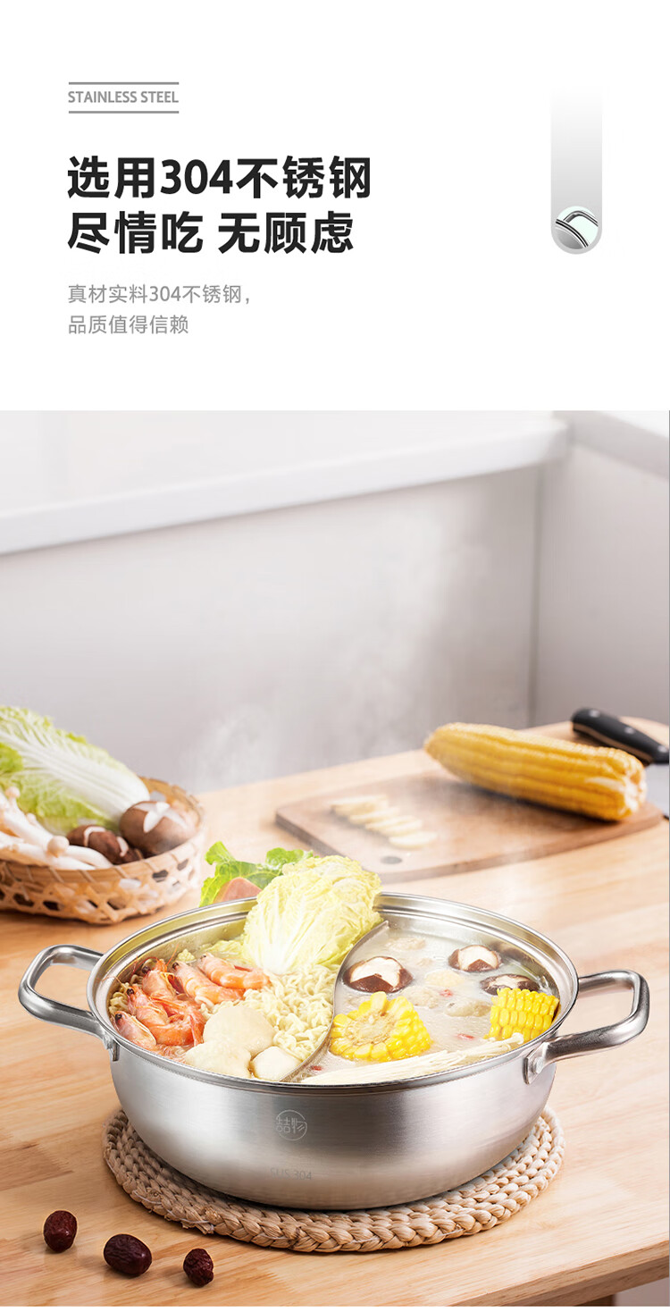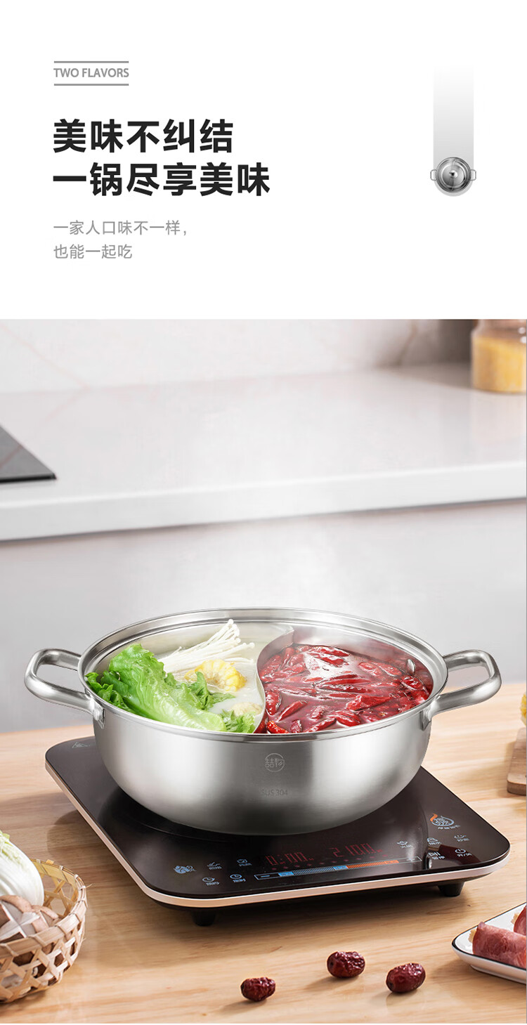 美的(Midea)火锅304不锈钢汤锅28CM火锅盆汤锅加厚锅具电磁炉通用TG28Z09Q