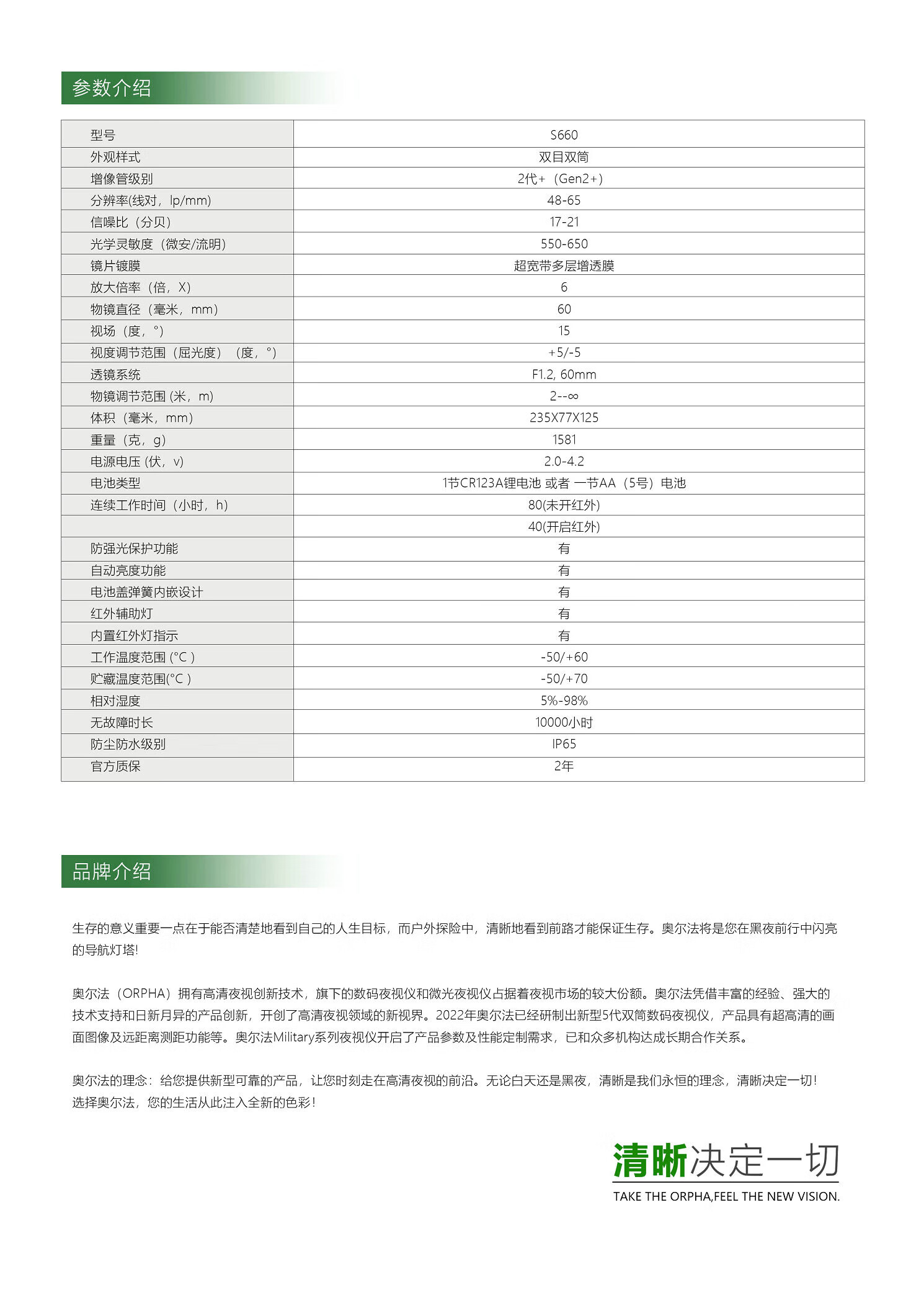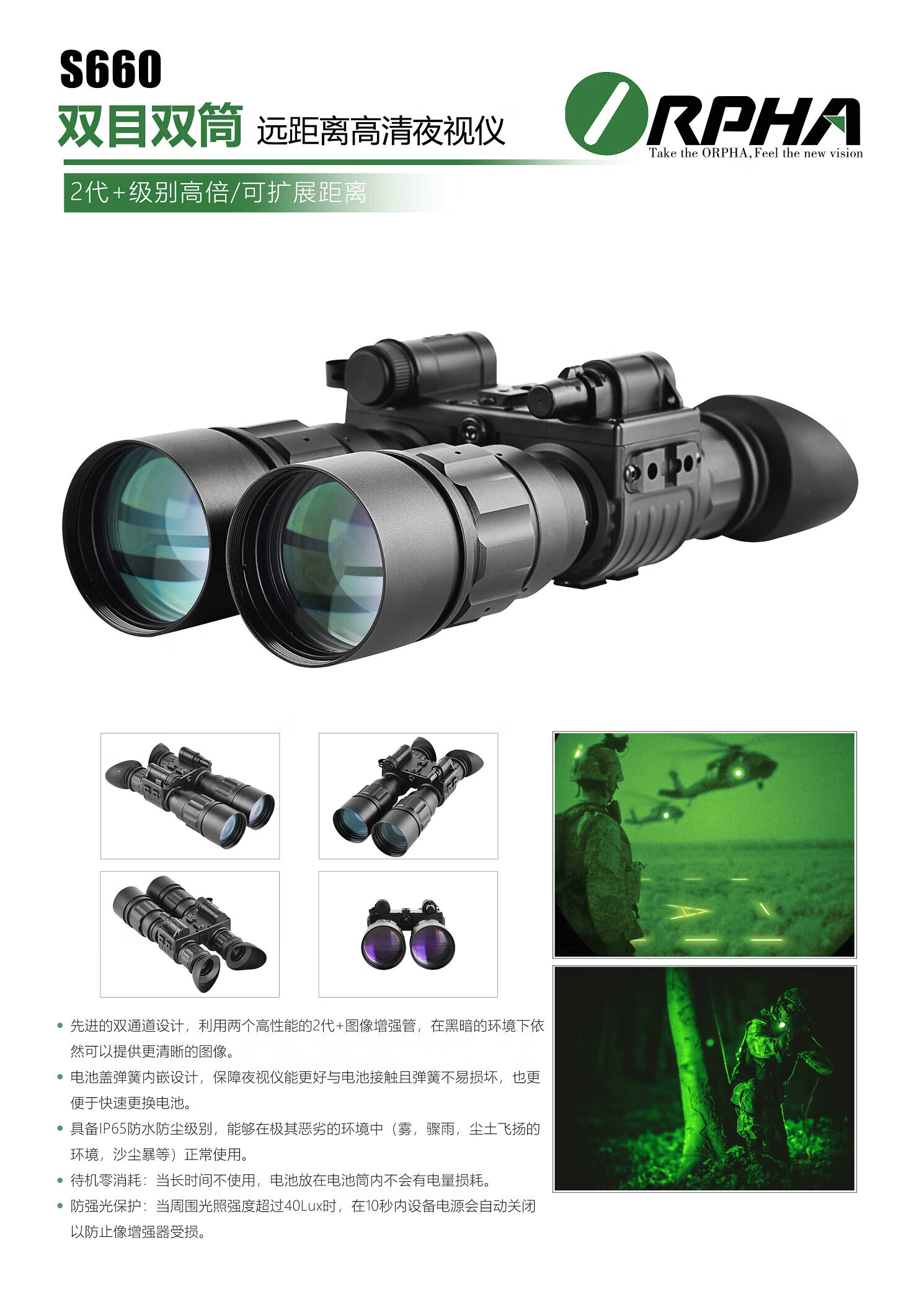 奥尔法(ORPHA)双目双筒夜视仪望远镜 S660系列高倍高清 夜间观察巡视 S660 2代+