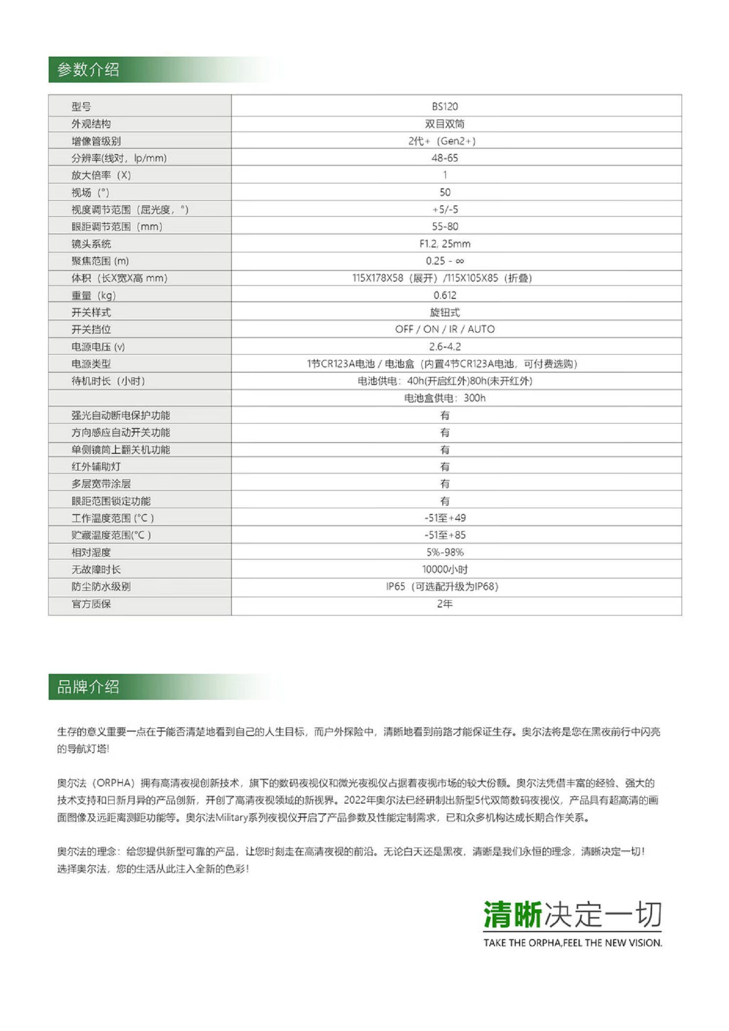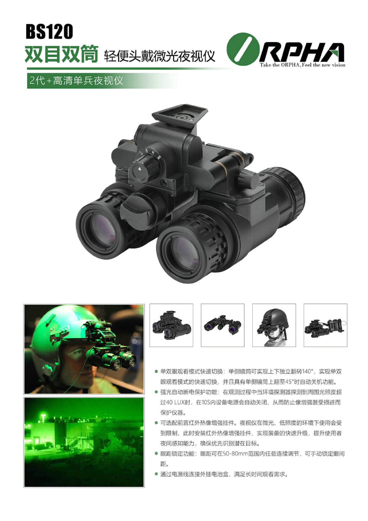 奥尔法(ORPHA)BS120 2代+ 双目双筒头戴式微光夜视仪连接战术头盔手持观察