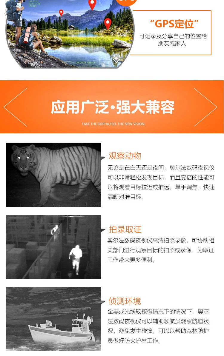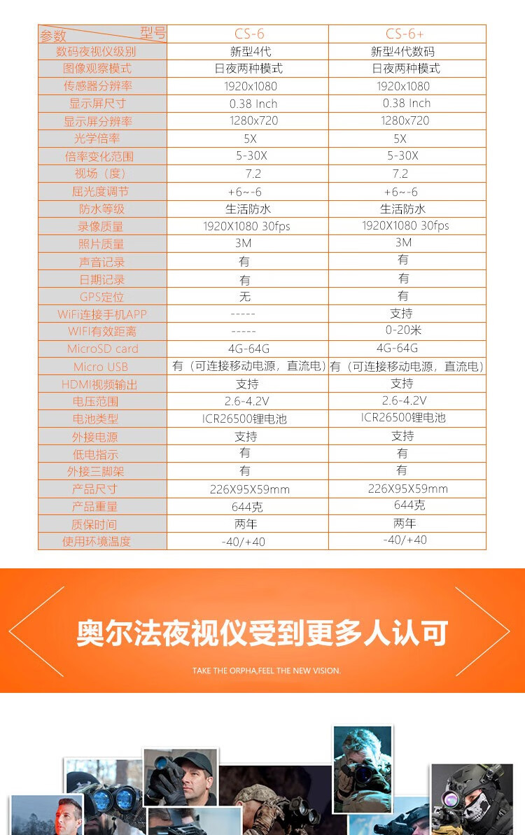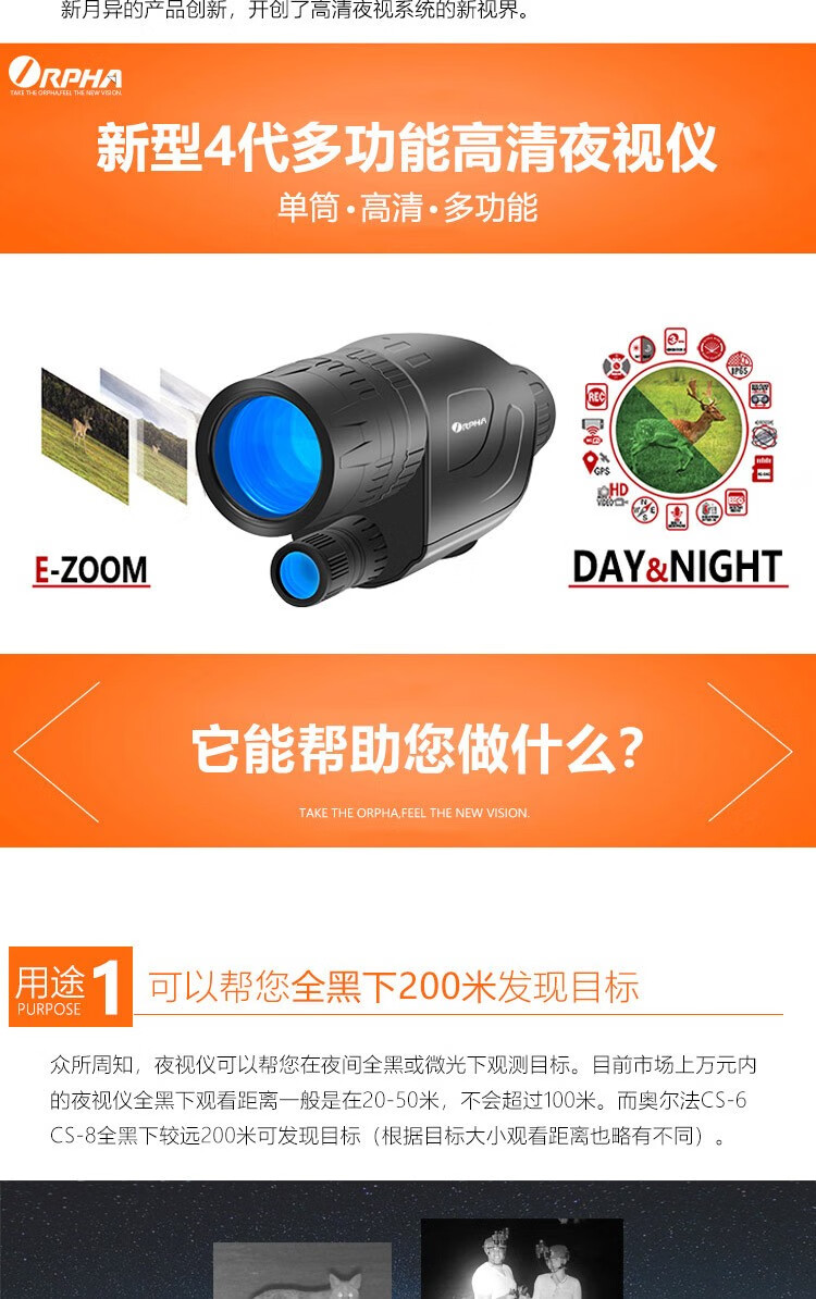 奥尔法(ORPHA)单筒数码微光红外夜视仪安防高清视频输出拍录像GPS定位 CS-6+