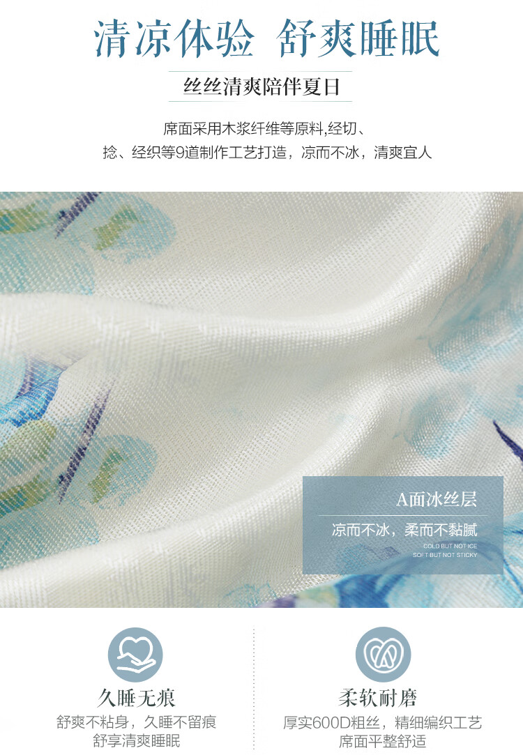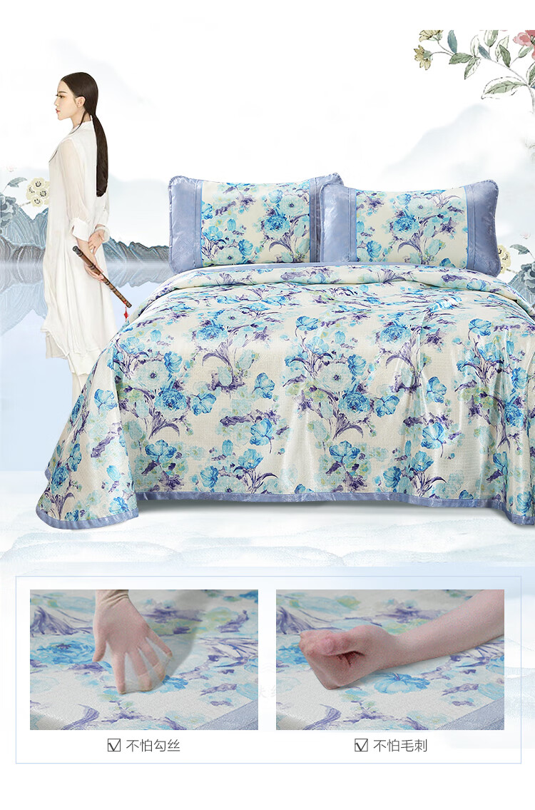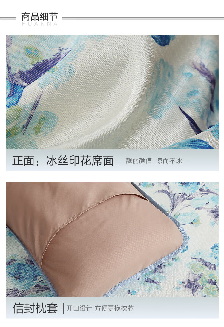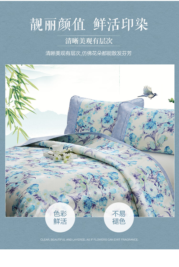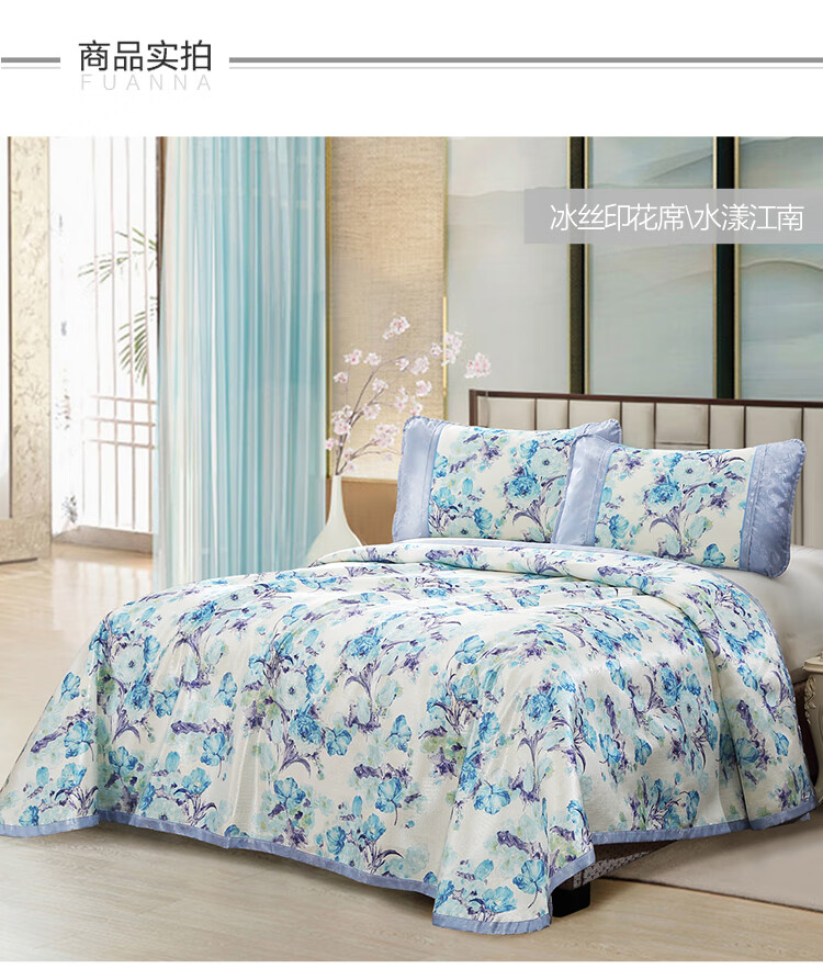 富安娜高档凉席600D冰丝席床单软席子夏凉席提花席三件套 2.5*2.5米