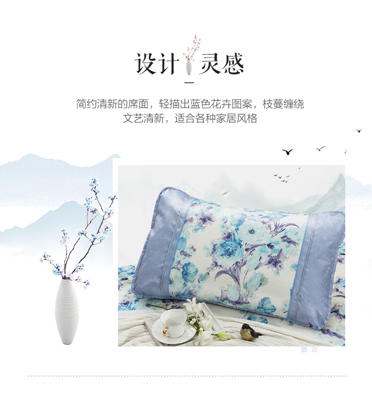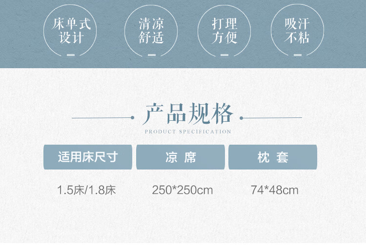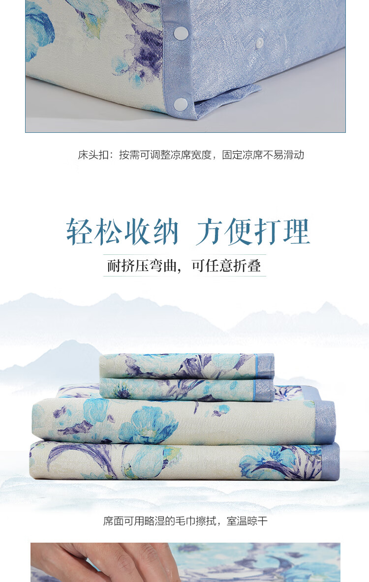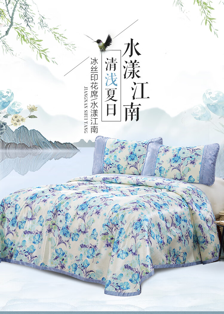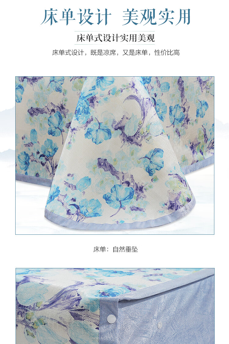 富安娜高档凉席600D冰丝席床单软席子夏凉席提花席三件套 2.5*2.5米