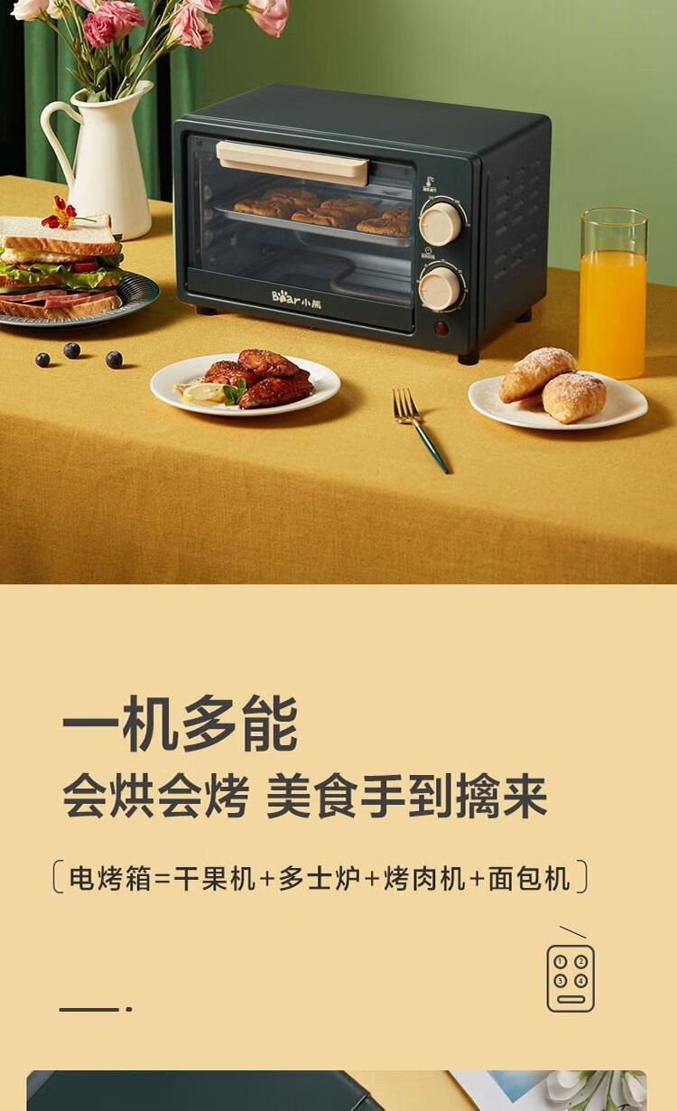 小熊(Bear) 电烤箱迷你烤箱多用10L家用容量独立控温控时烘烤 DKX-F10H2