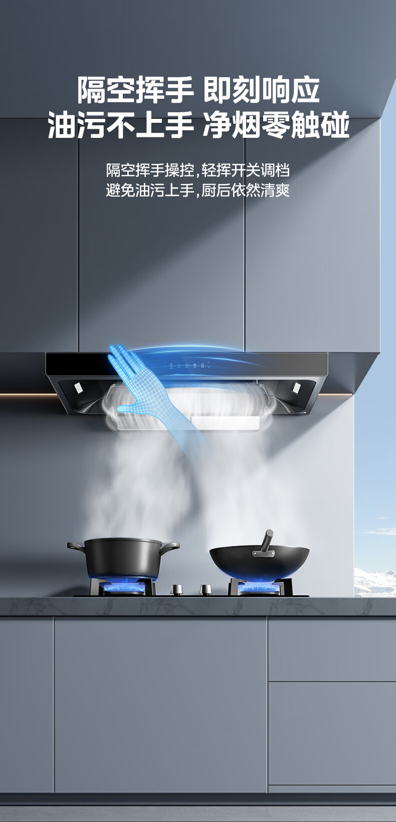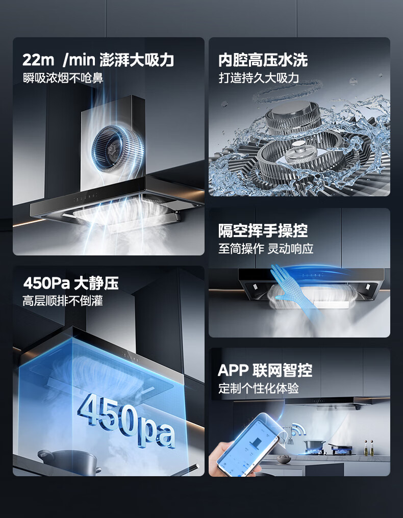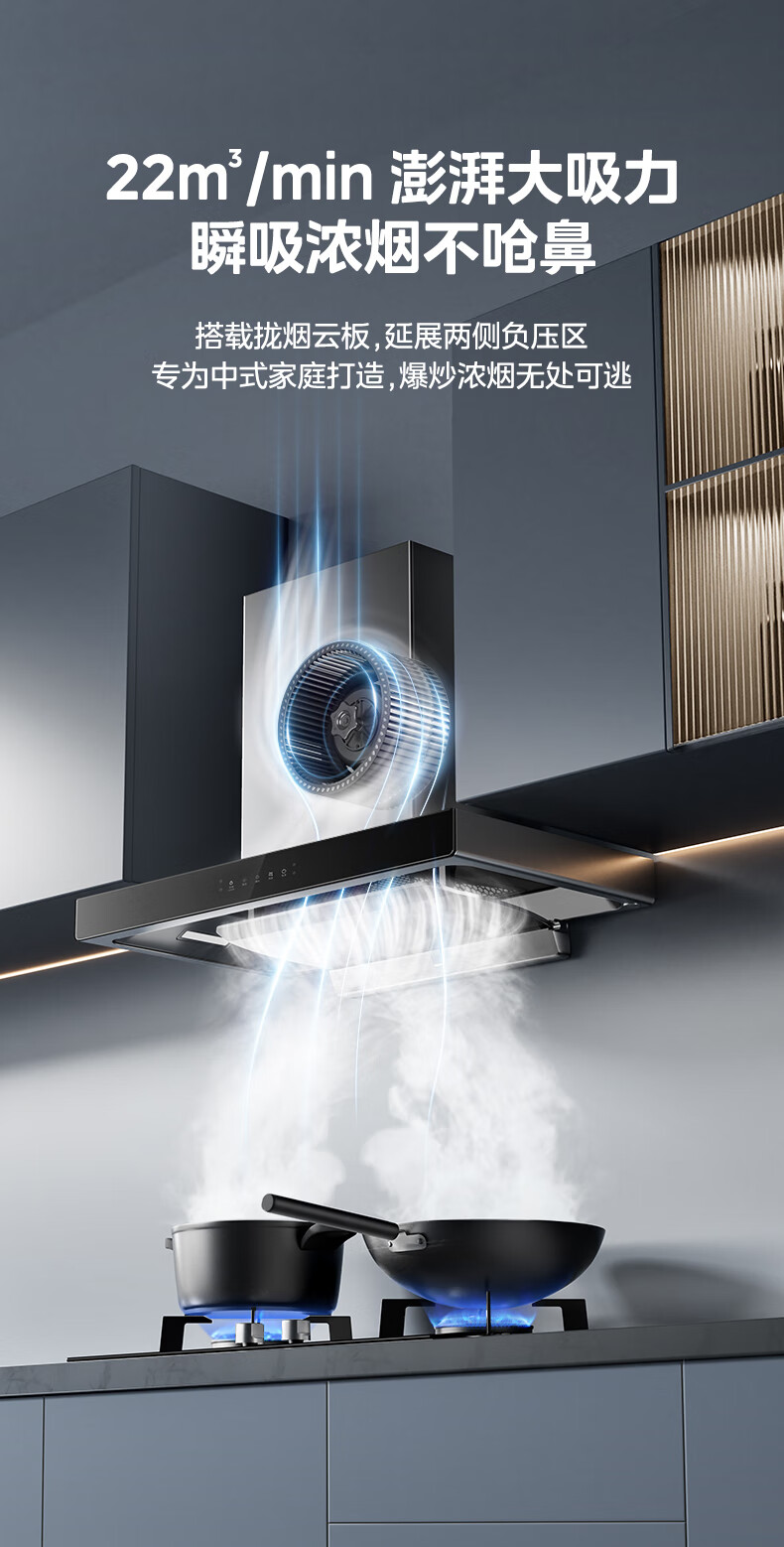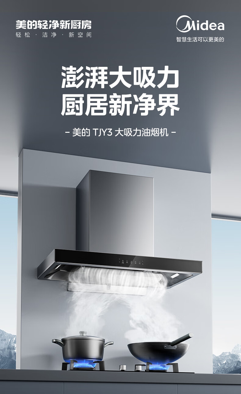 美的(Midea)抽油烟机欧式家用厨房油烟机22立方爆炒大吸力 高压直喷洗 挥手控制 WiFi智控CXW-260-TJY3*