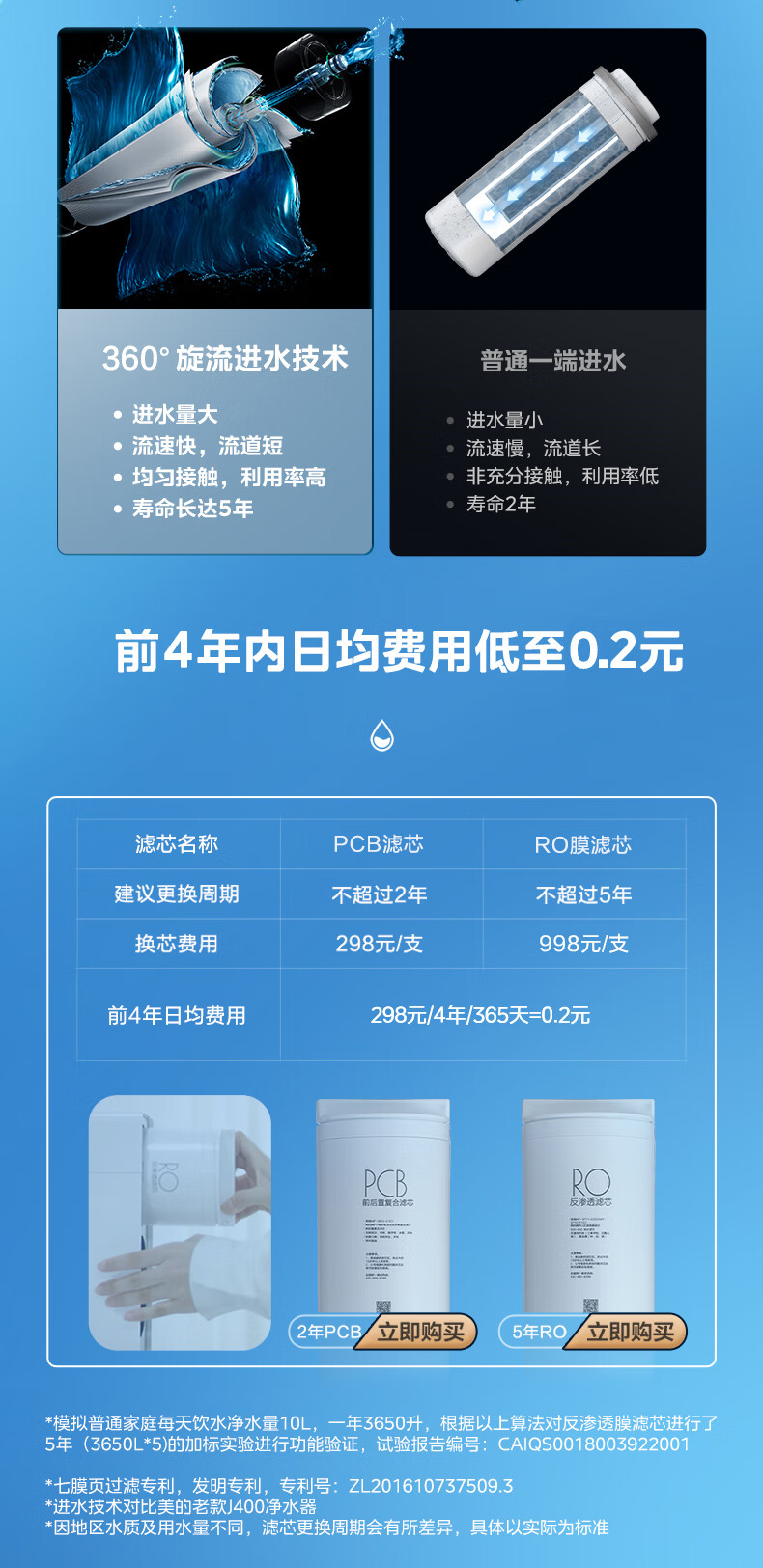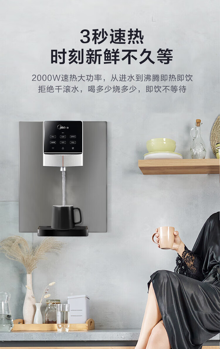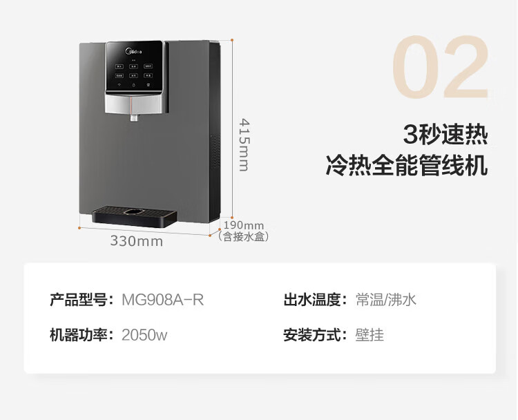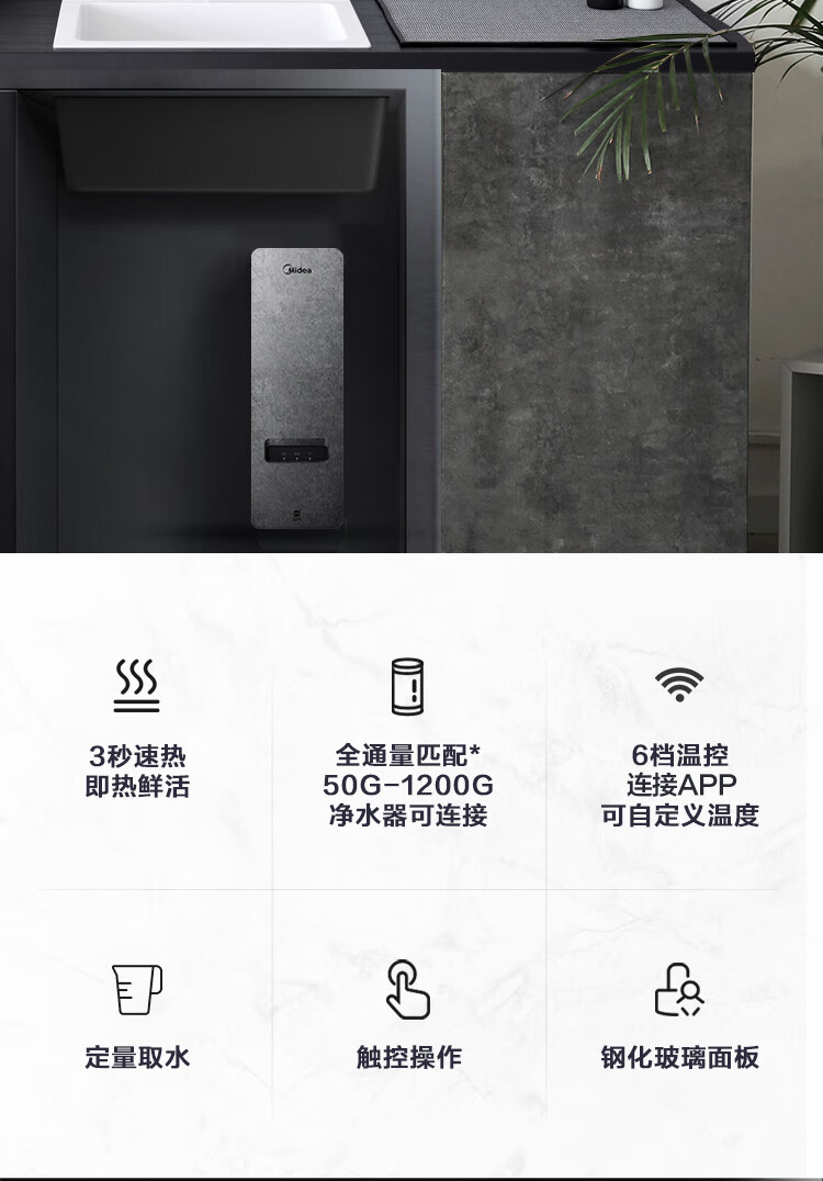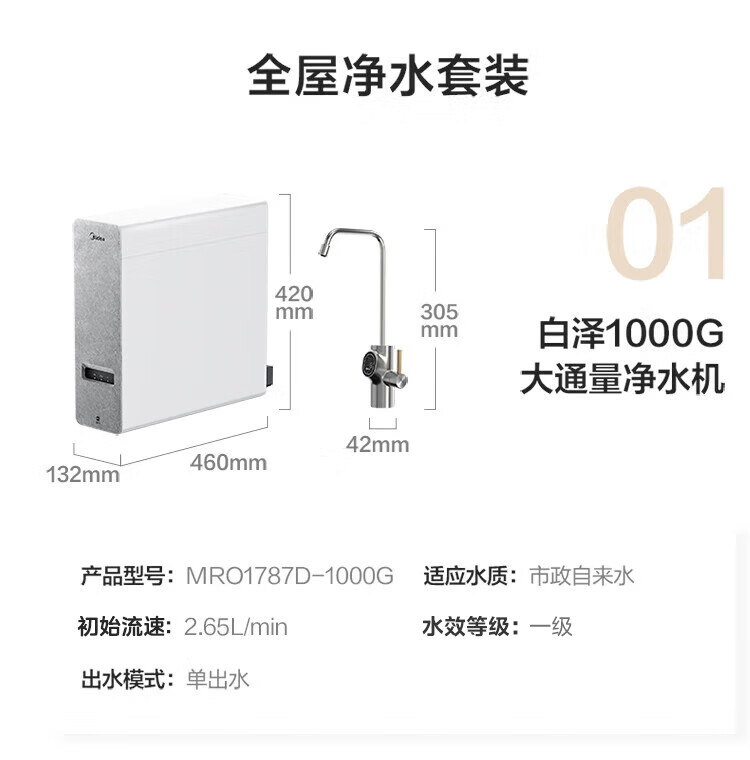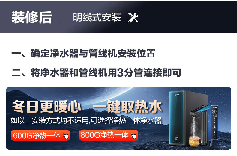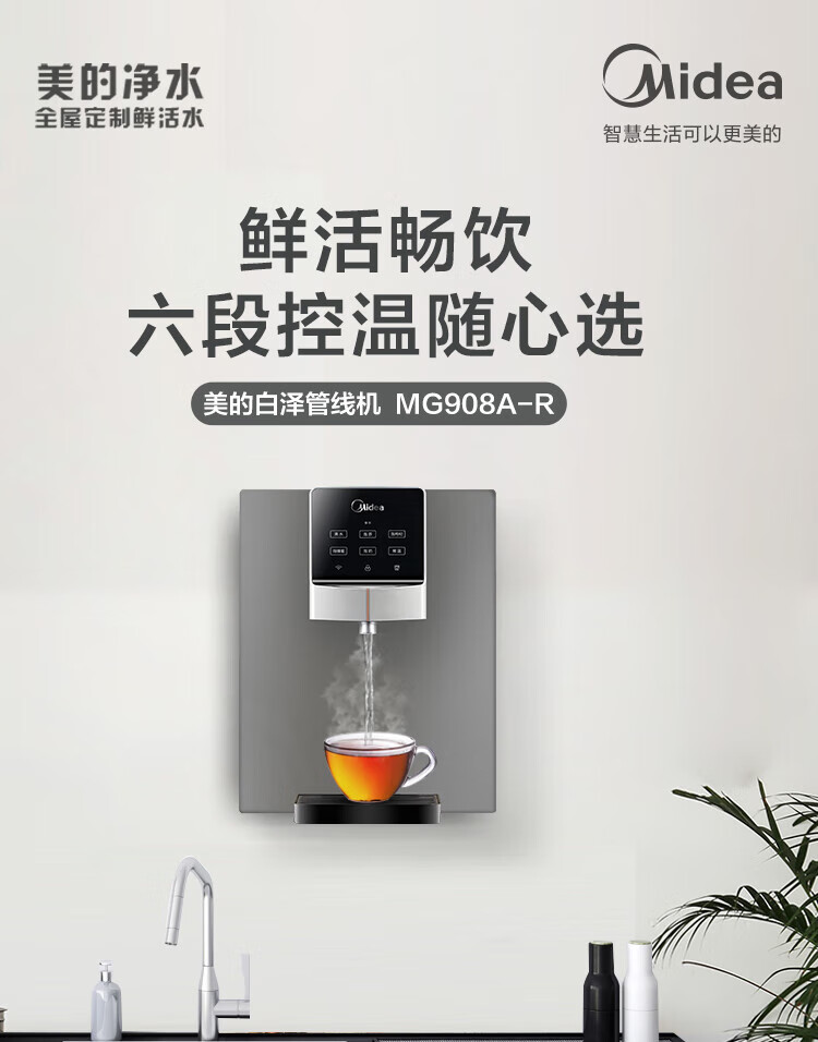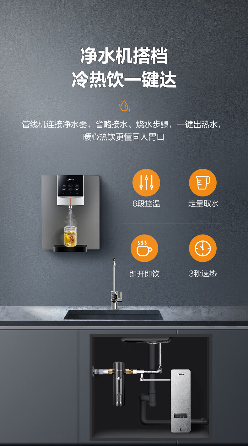 美的(Midea)直饮加热净水器套装【白泽1000G+管线机908A】厨下RO反渗透 家用壁挂式即热一体净饮机