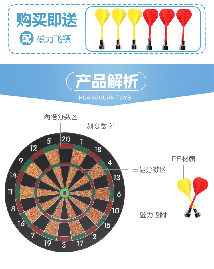 普才玩具儿童飞镖盘套装家用磁性双面飞镖靶安全磁铁儿童飞镖盘套装