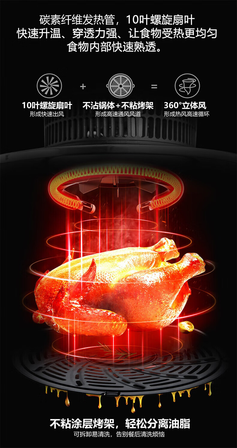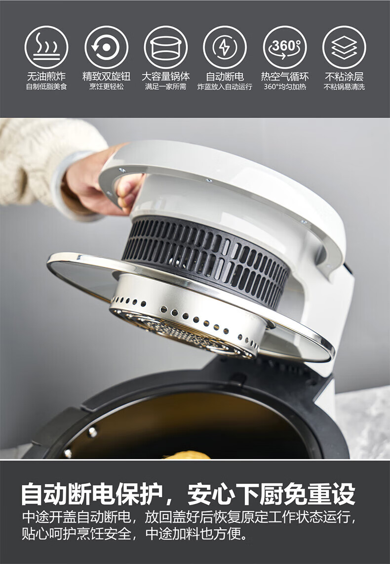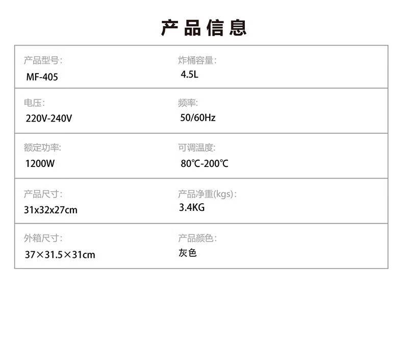 摩飞电器(MFHZPOK)空气炸锅 家用4.5L大容量多功能空气炸烤箱 炸薯条鸡翅机MF-405灰