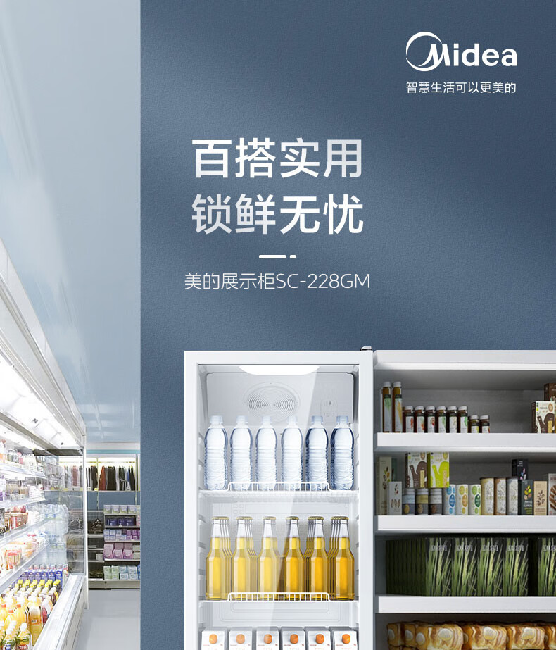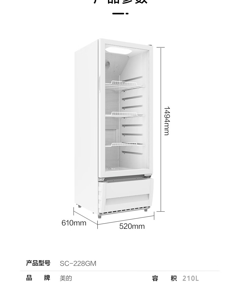 美的(Midea)210升立式单门家用商用展示柜 冷藏饮料茶叶保鲜柜 啤酒冷饮玻璃门冰柜 SC-228GM