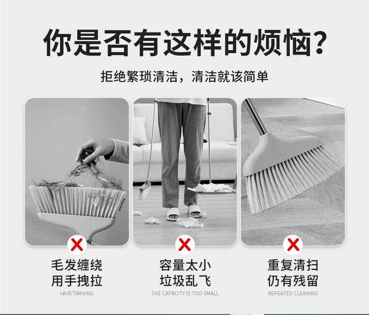 亮晶晶扫把防风梳齿型白色簸箕笤帚梳齿型扫地搓斗
