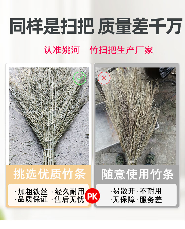 KEERNY环卫大扫把竹扫把扫帚马路扫把扫水扫雪工地厂房竹竿把无叶大扫把一把装