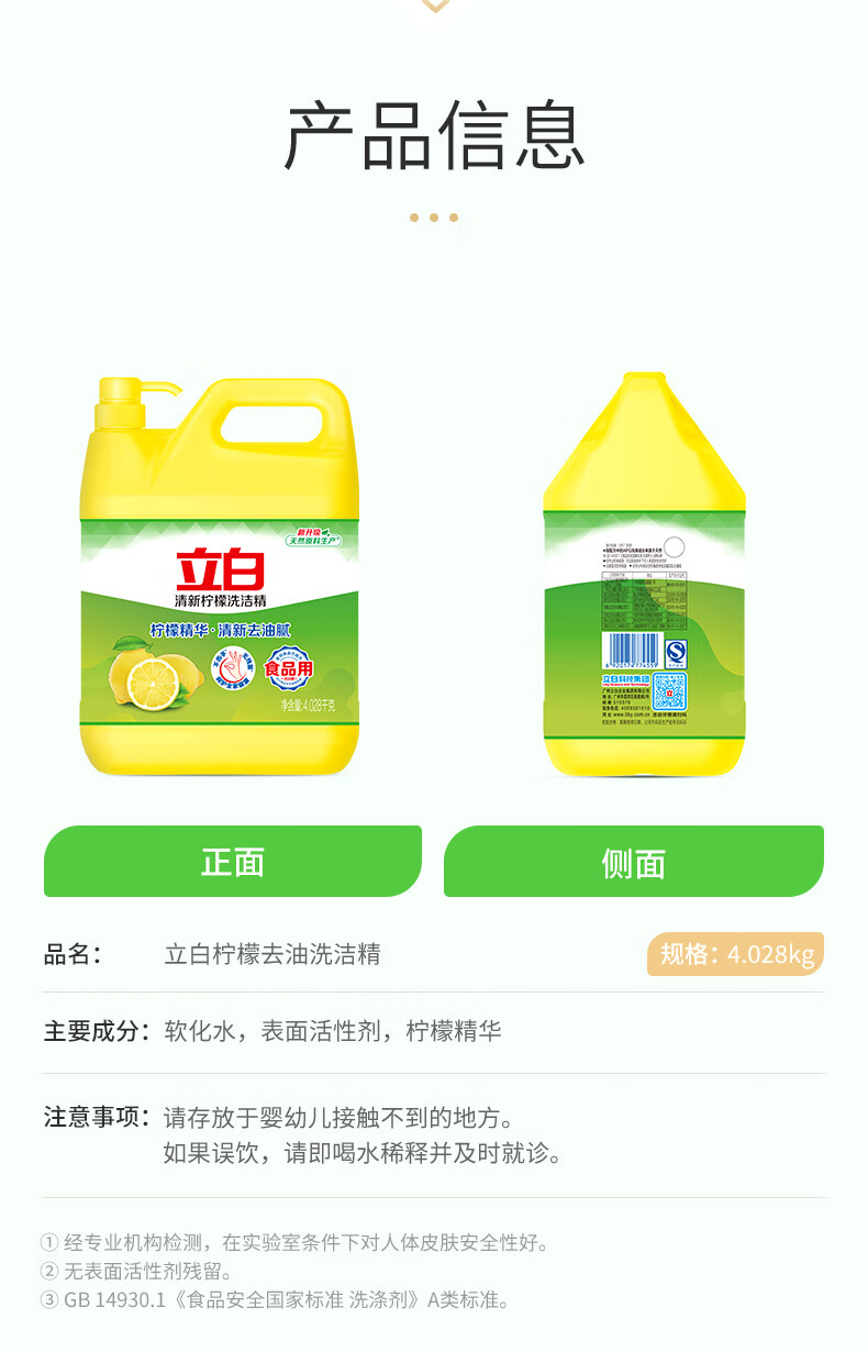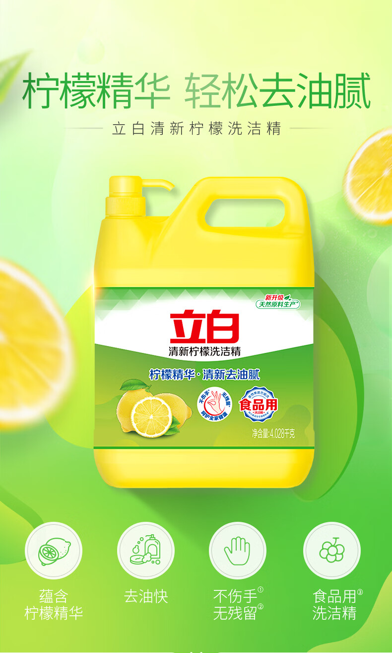 立白洗洁精清新柠檬 强效去油不伤手 食品用 餐馆酒店大桶装4.028kg