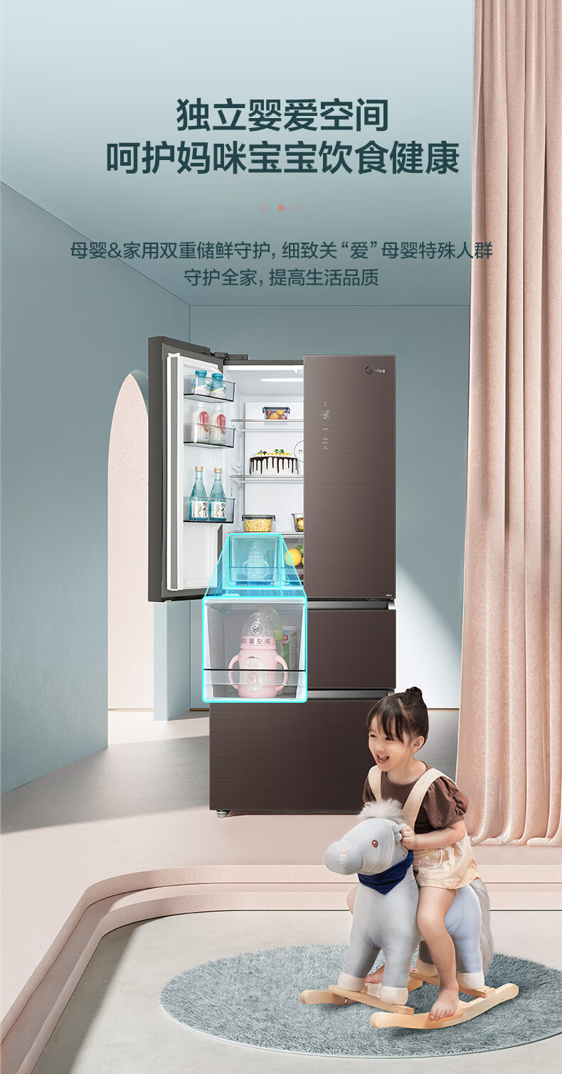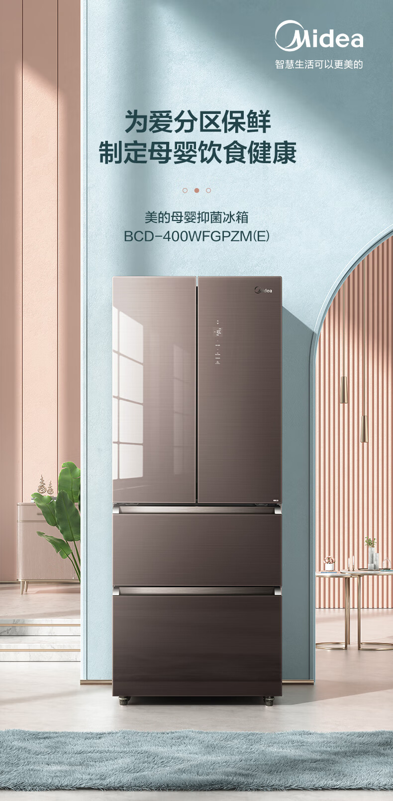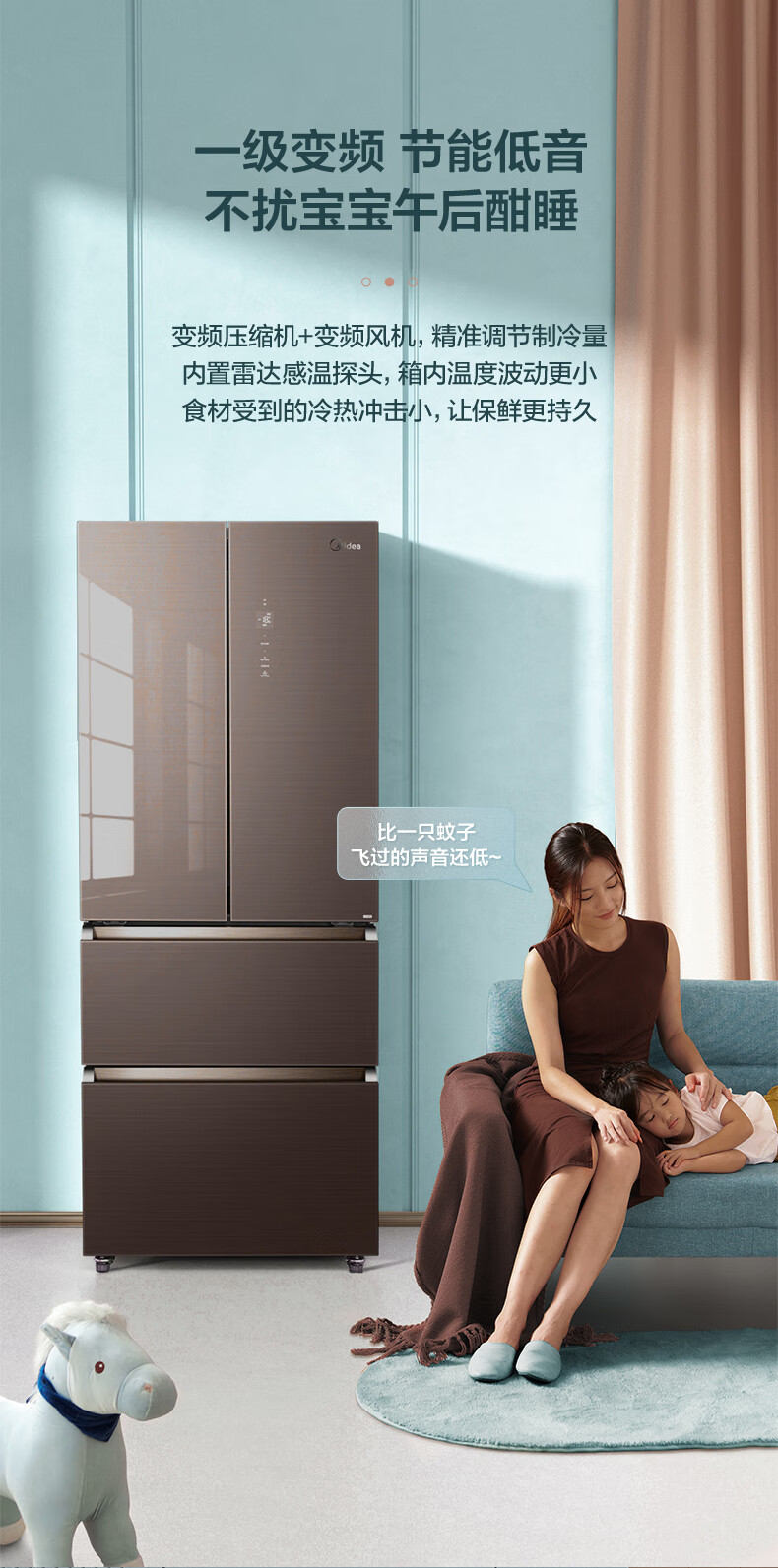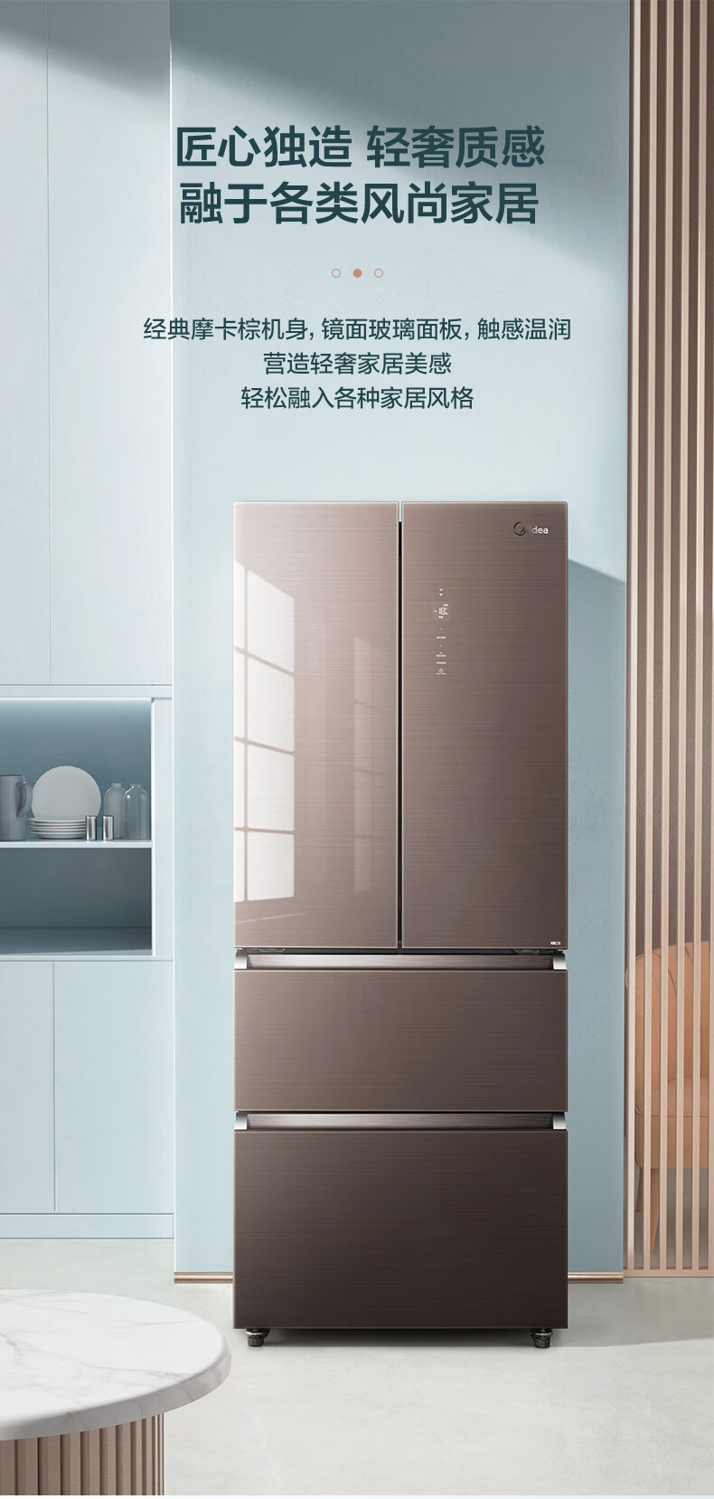 美的(Midea)玻璃门400升变频法式多门双开门家用冰箱风冷无霜持久BCD-400WFGPZM(E)摩卡棕