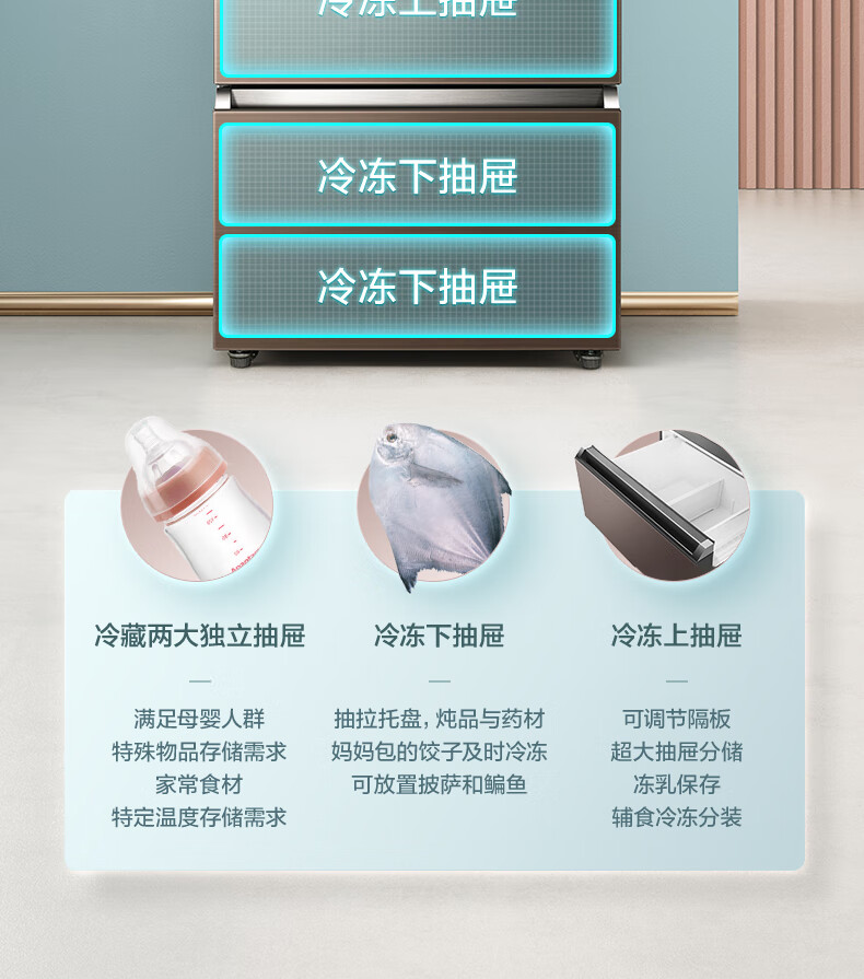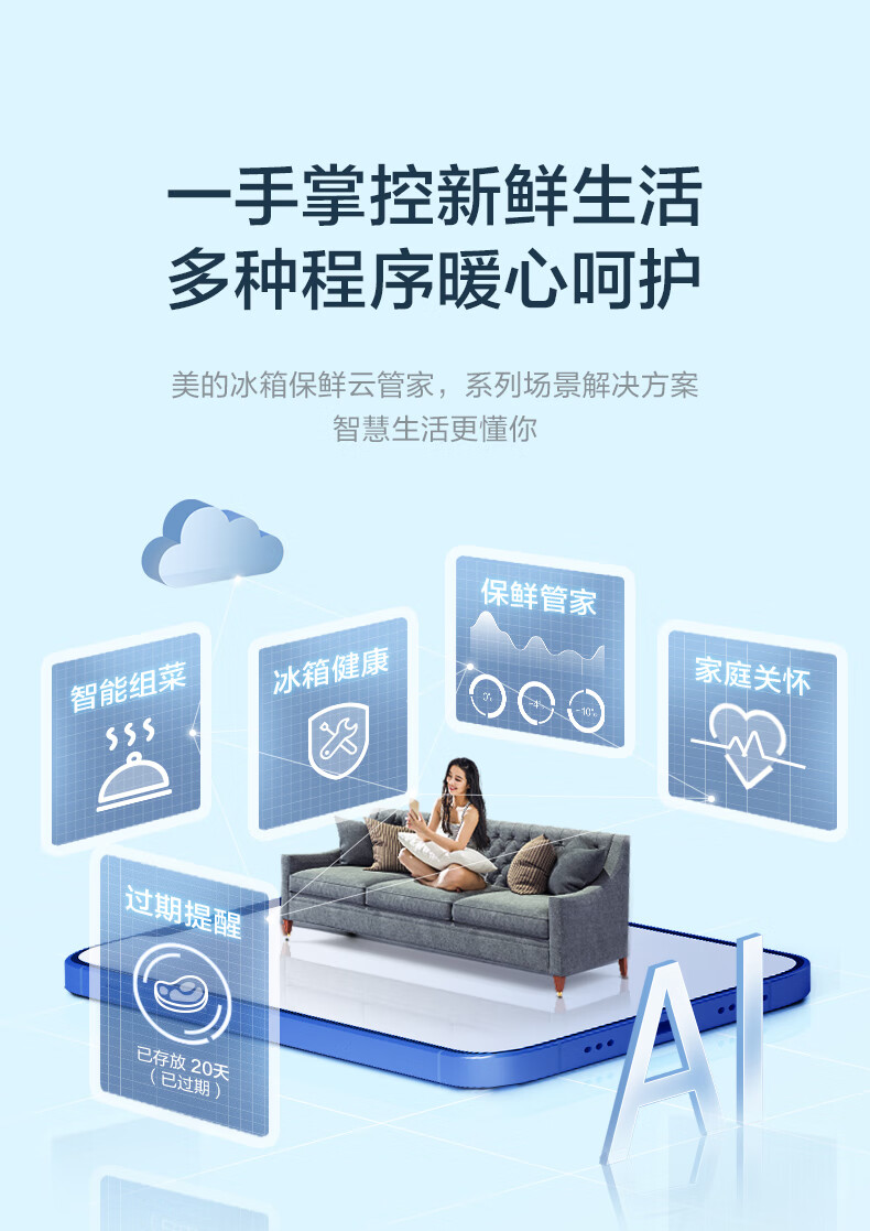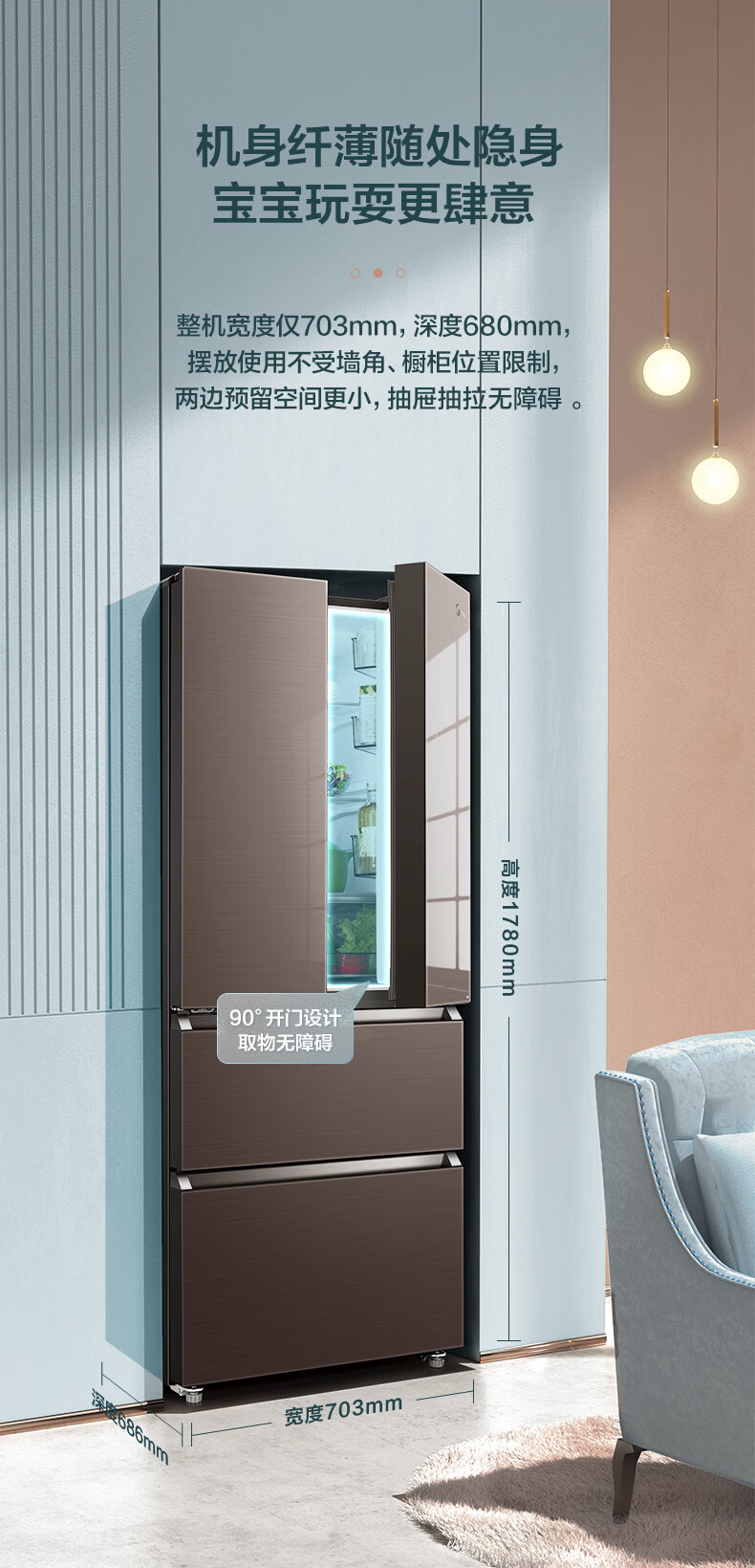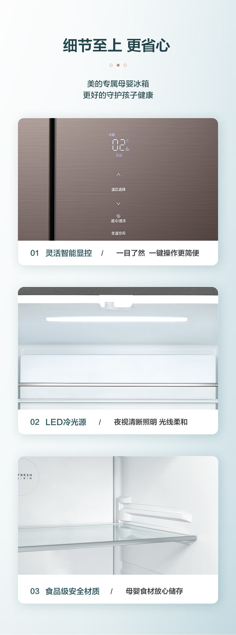 美的(Midea)玻璃门400升变频法式多门双开门家用冰箱风冷无霜持久BCD-400WFGPZM(E)摩卡棕