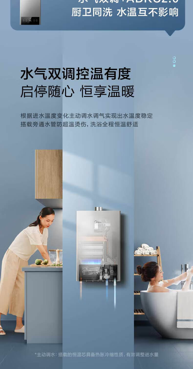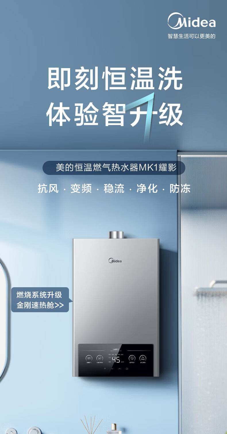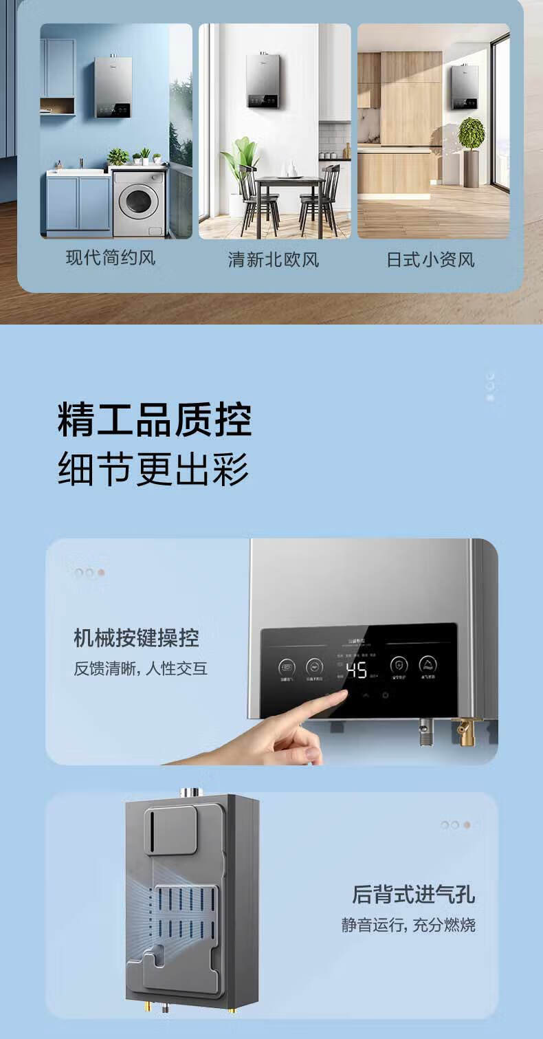 美的(Midea)烟灶套装21风量天然气多件套T201+Q230B节能恒温12升热水器MK1厨房三件套