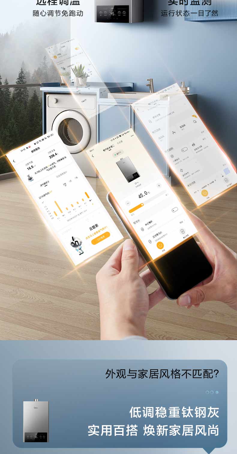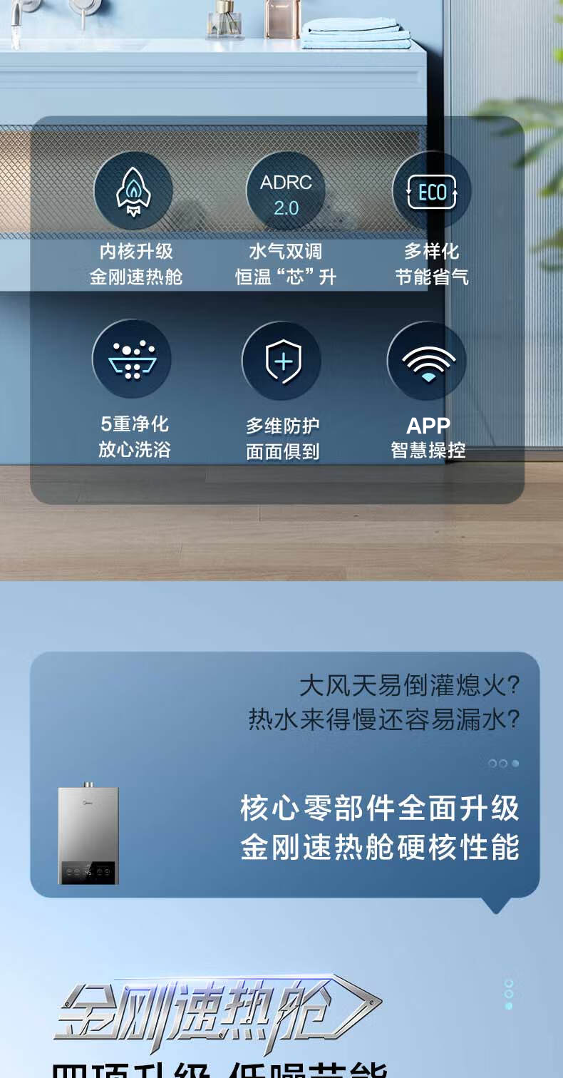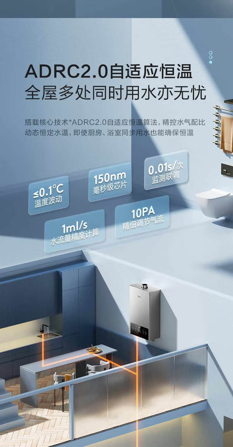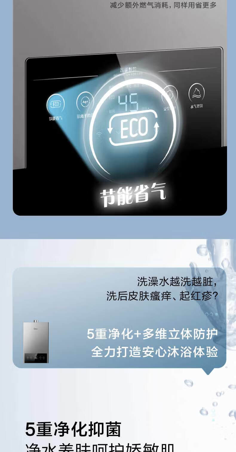 美的(Midea)烟灶套装21风量天然气多件套T201+Q230B节能恒温12升热水器MK1厨房三件套