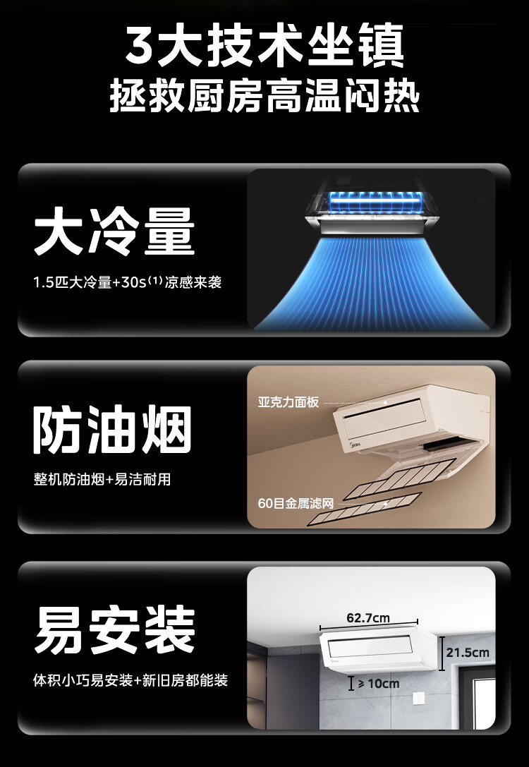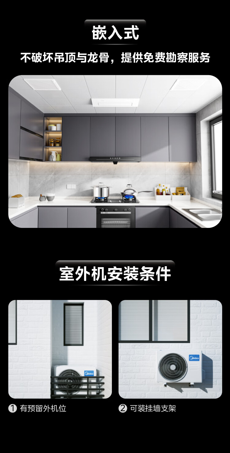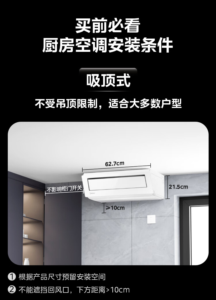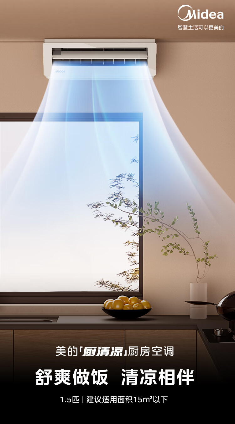 美的(Midea)厨清凉 厨房空调 专用吸顶式 1.5匹变频 防油烟 大冷量 易安装CKF-35XW/BN8Y-XD200【包安装】