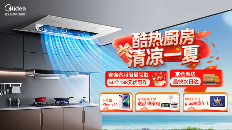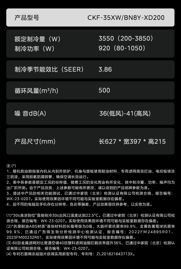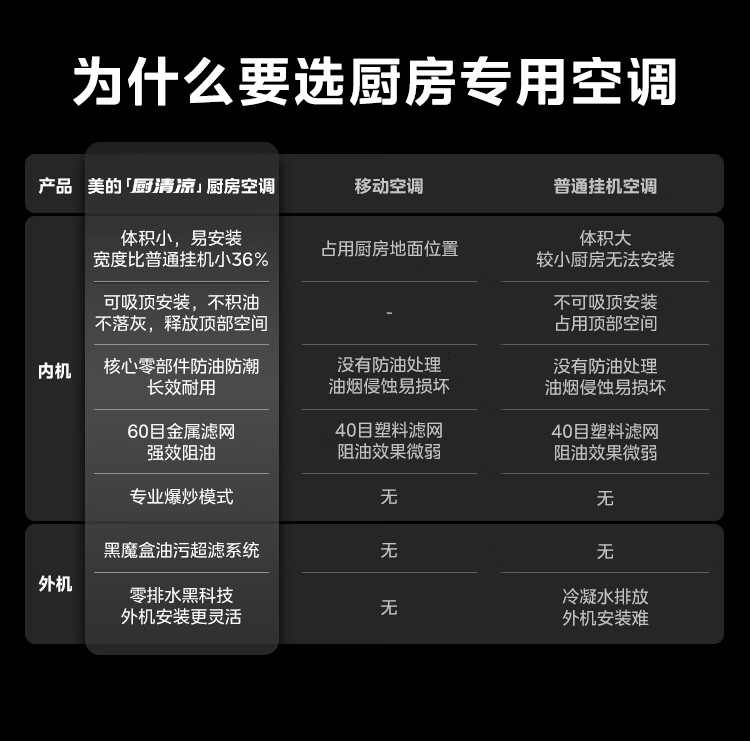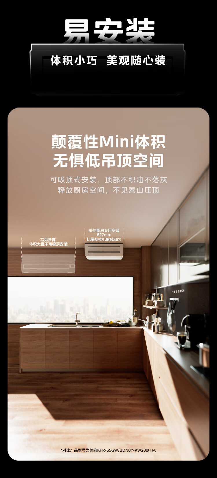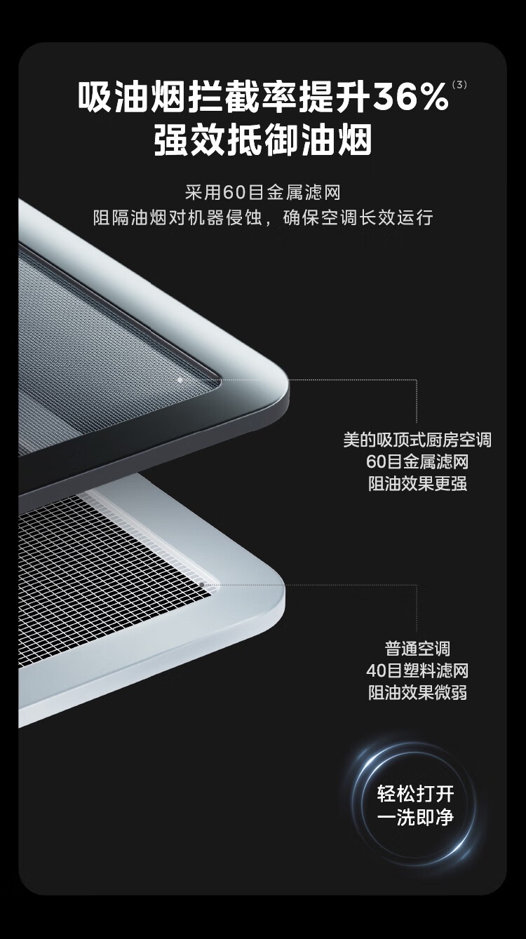 美的(Midea)厨清凉 厨房空调 专用吸顶式 1.5匹变频 防油烟 大冷量 易安装CKF-35XW/BN8Y-XD200【包安装】