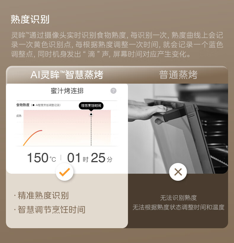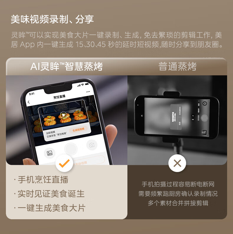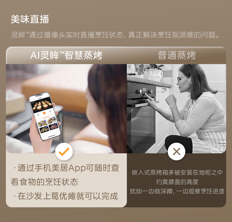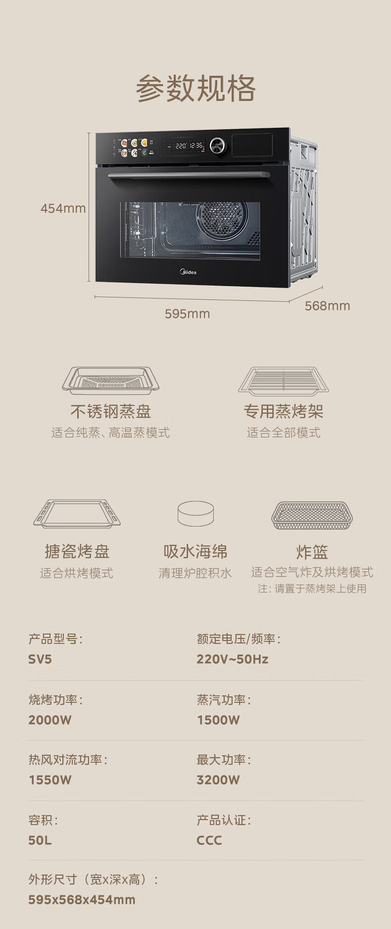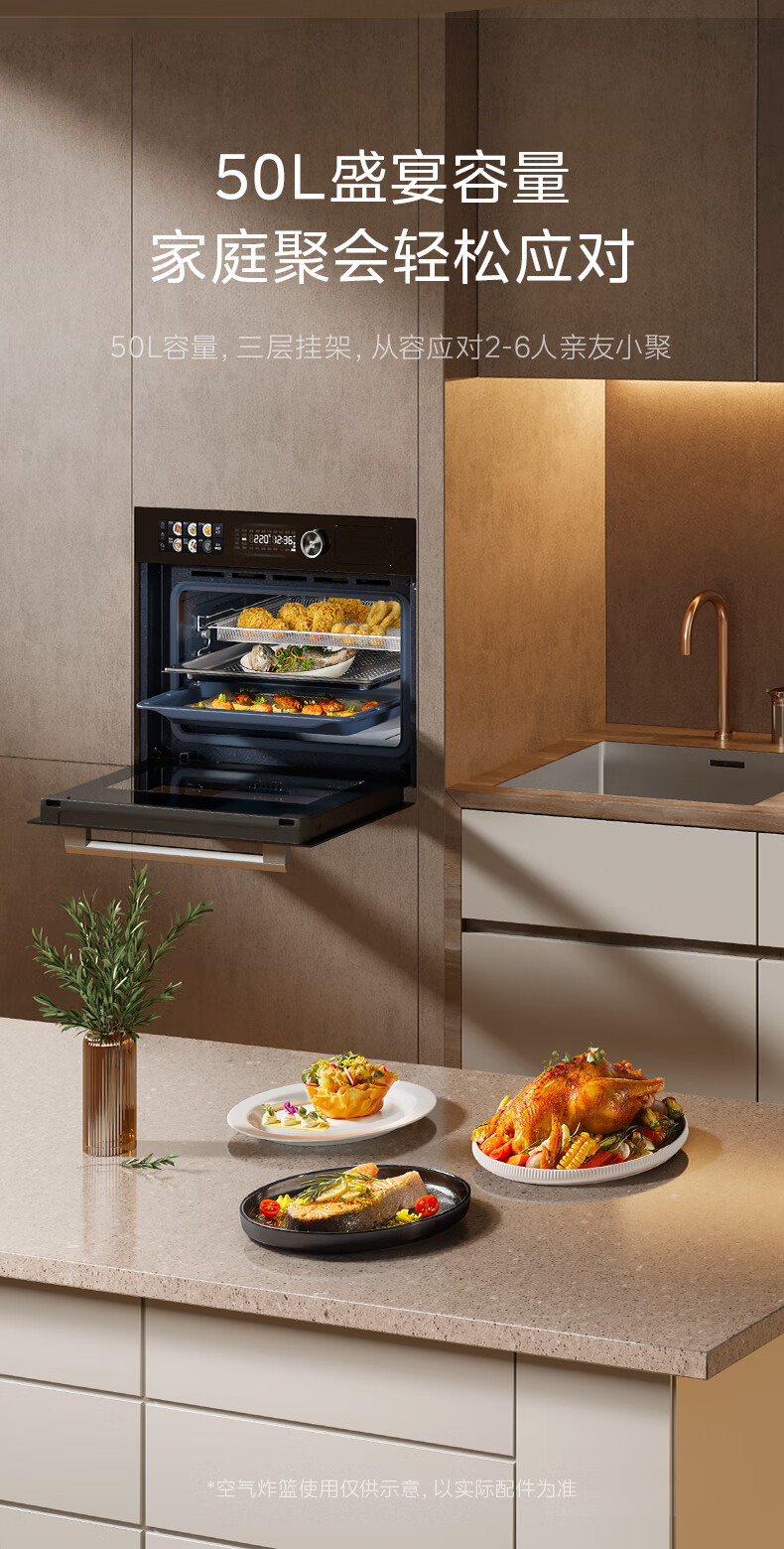 美的(Midea)嵌入式 蒸烤箱一体机 50L蒸箱烤箱家用 AI灵眸智能摄像识材视频分享 蒸烤炸炖四合一体机SV5
